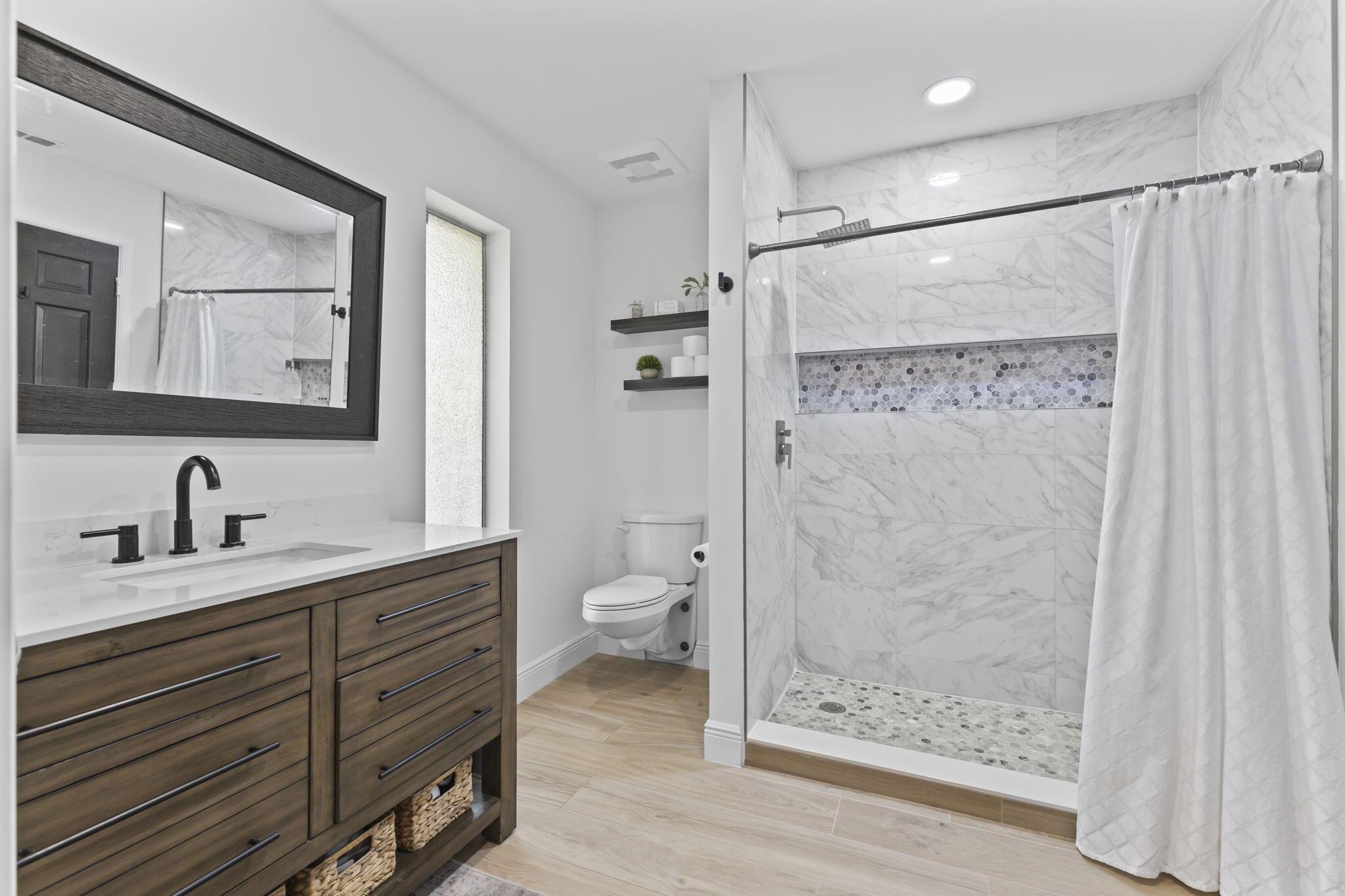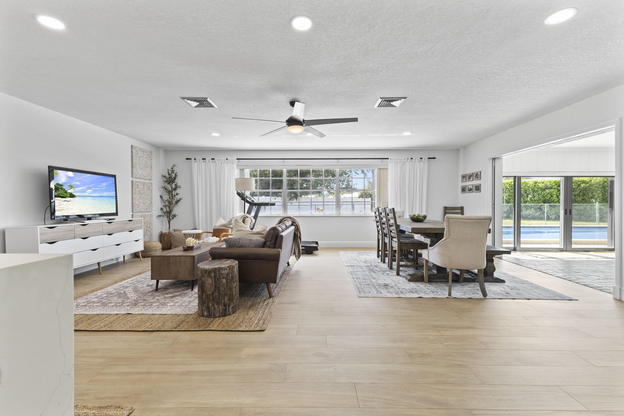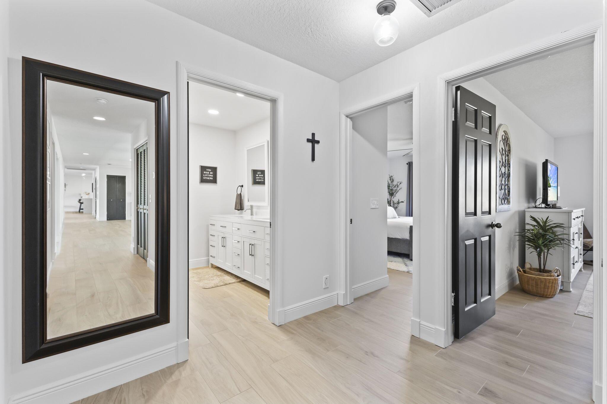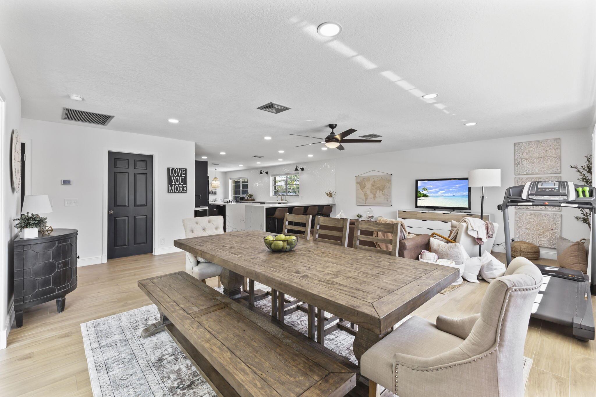 Welcome to 2196 SE Flanders Road, a meticulously maintained estate in the heart of Port Saint Lucie. This expansive 3,660 sq ft single-story ranch style home offers 3 bedrooms, 2.5 bathrooms, and a versatile layout that includes an optional 4th bedroom or office space. Situated on a generous 0.55-acre corner lot, the property boasts a private oversized in-ground pool (8' deep, 20 x 40), making it an ideal retreat for both relaxation and entertaining. Step inside to discover a host of modern upgrades: a brand-new luxury gourmet kitchen, wood plank tile flooring, renovated bathrooms, and updated lighting throughout. Additional features include a 2021 washer and dryer, a 2022 water heater, and two zoned AC units, ensuring year-round comfort.