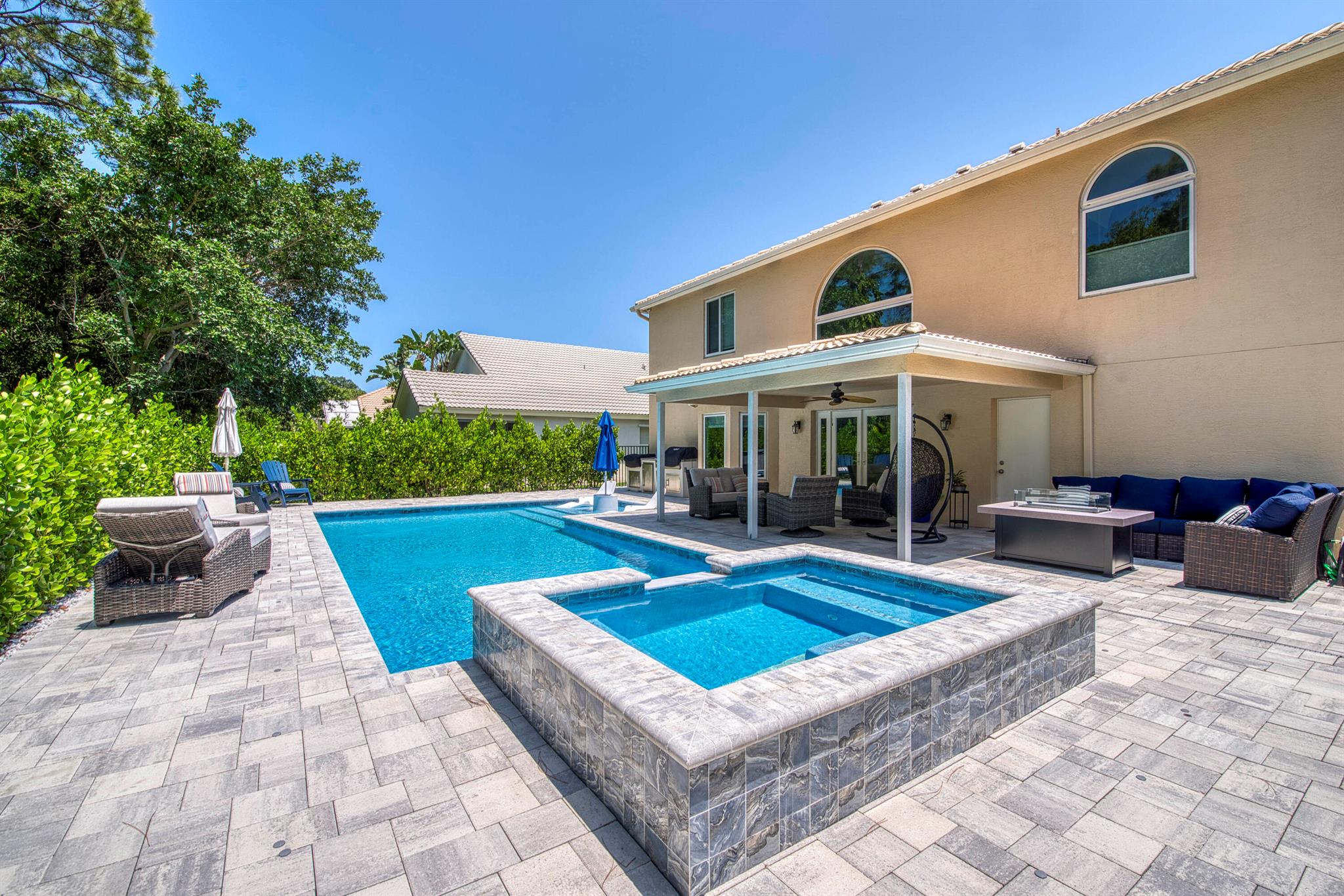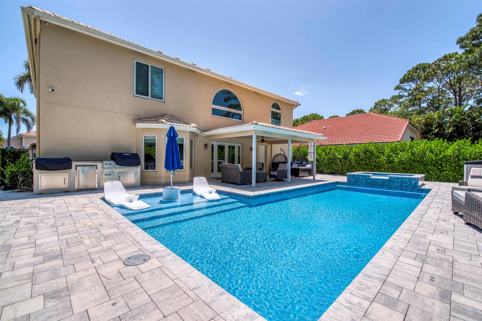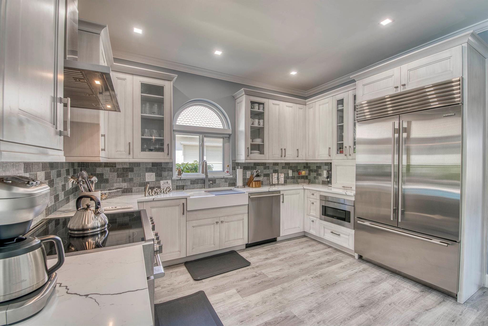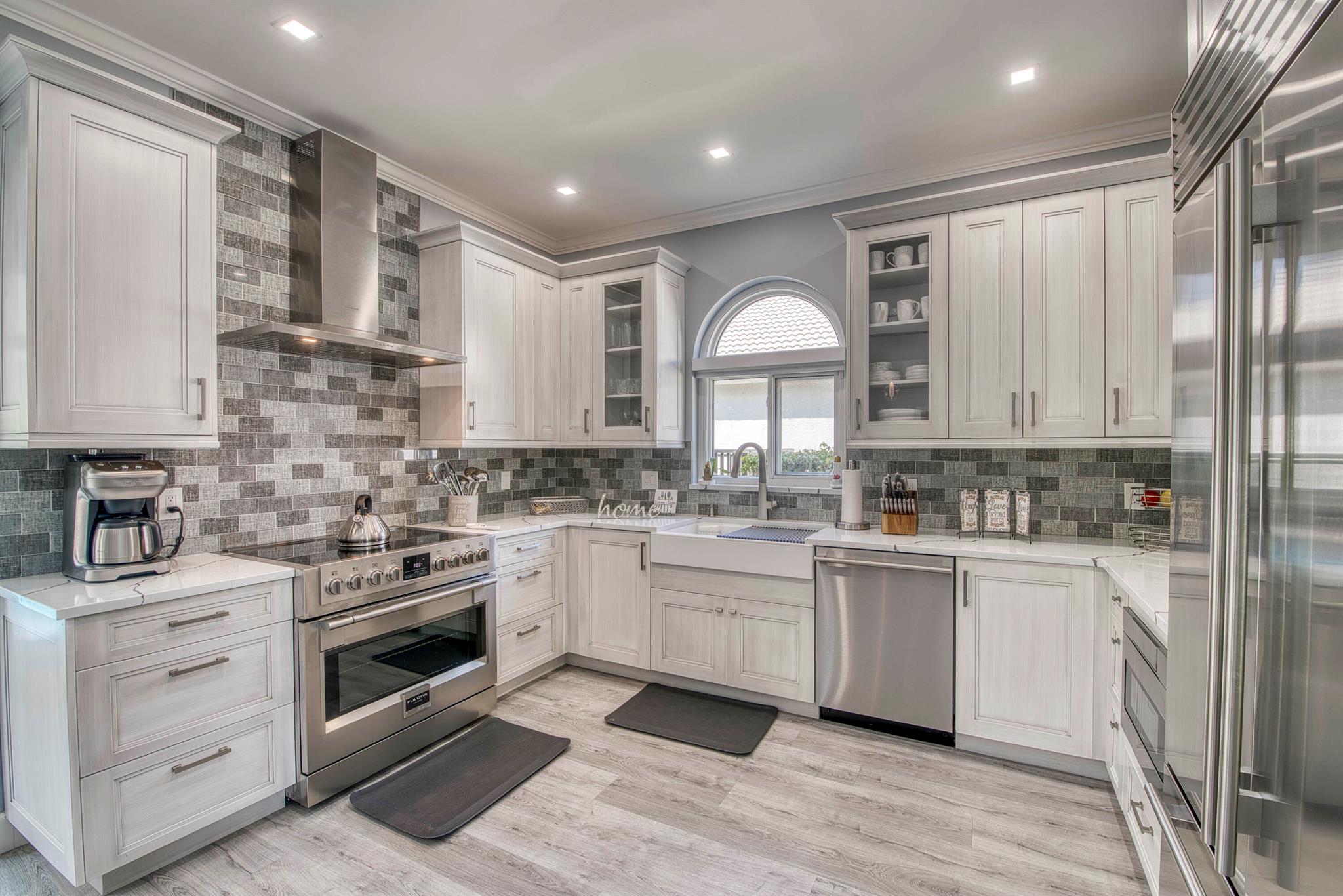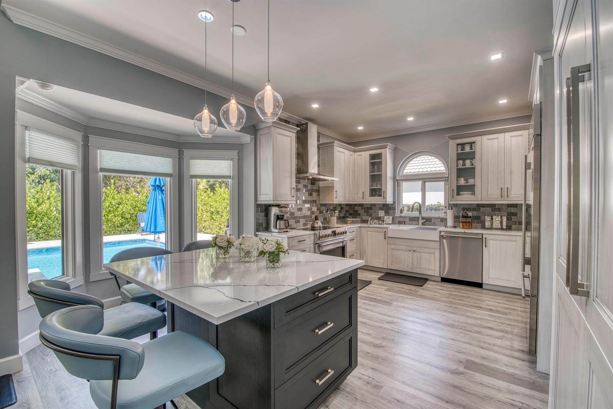 Ever wonder what over $400,000 in upgrades looks like? This beautifully updated 5 bedroom, 3 bath home that offers nearly 2,900 sq ft of living space has it all. Everything in this property has been updated, new custom pool, two newer AC's, whole house water filtration system, full impact glass windows and doors, top of the line kitchen appliances, not to mention exterior updates including the roof being replaced prior to closing, extended driveway, and custom exterior lighting. The expansive open floor plan features soaring ceilings, wood-look flooring, crown molding, and custom light fixtures throughout. The heart of the home is the gourmet kitchen, complete with natural gas, a large center island, sleek quartz countertops, white shaker cabinetry, and high-end Italian appliances,