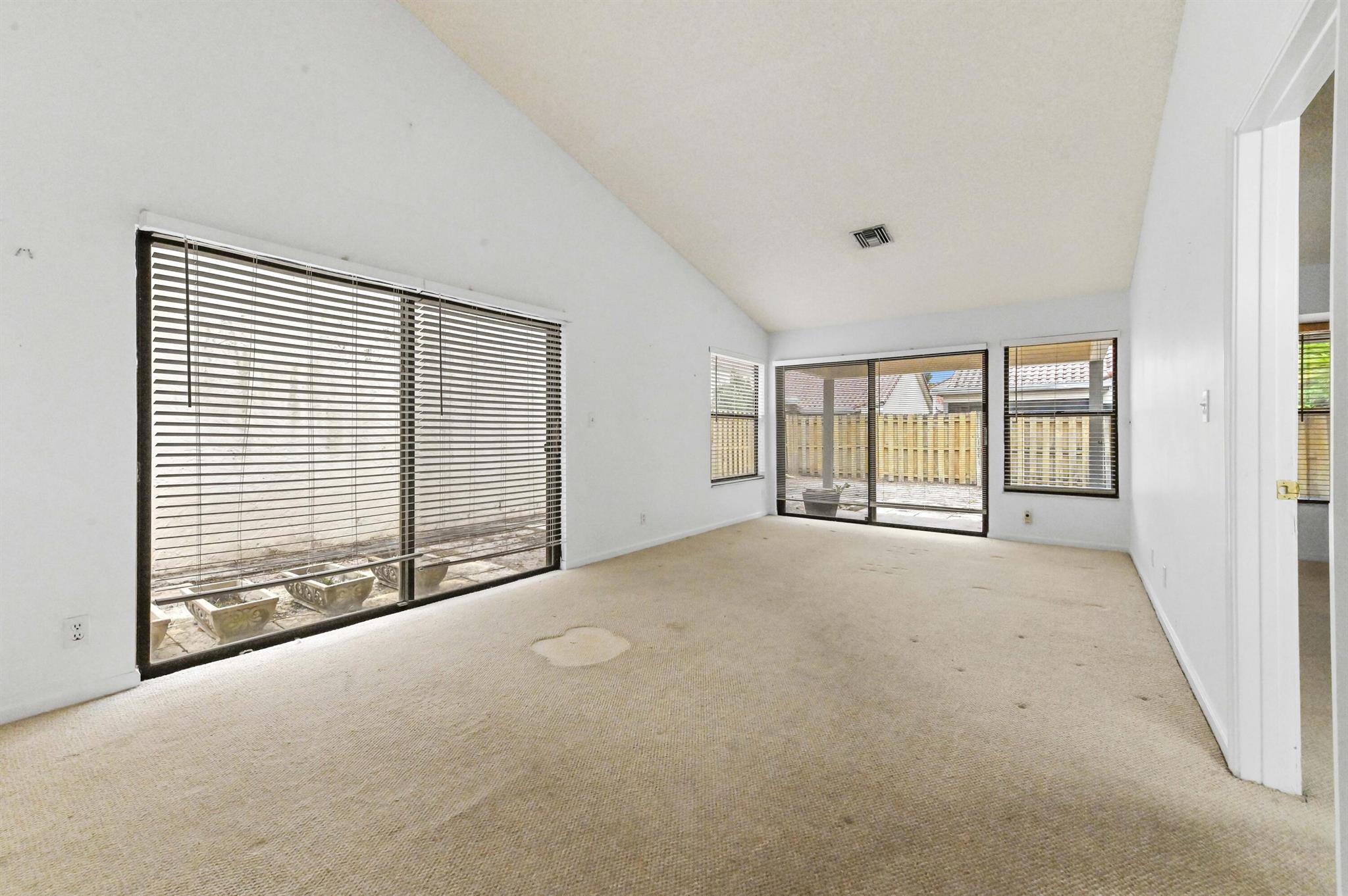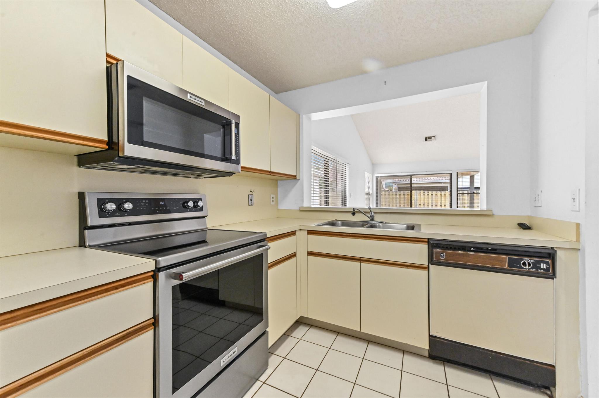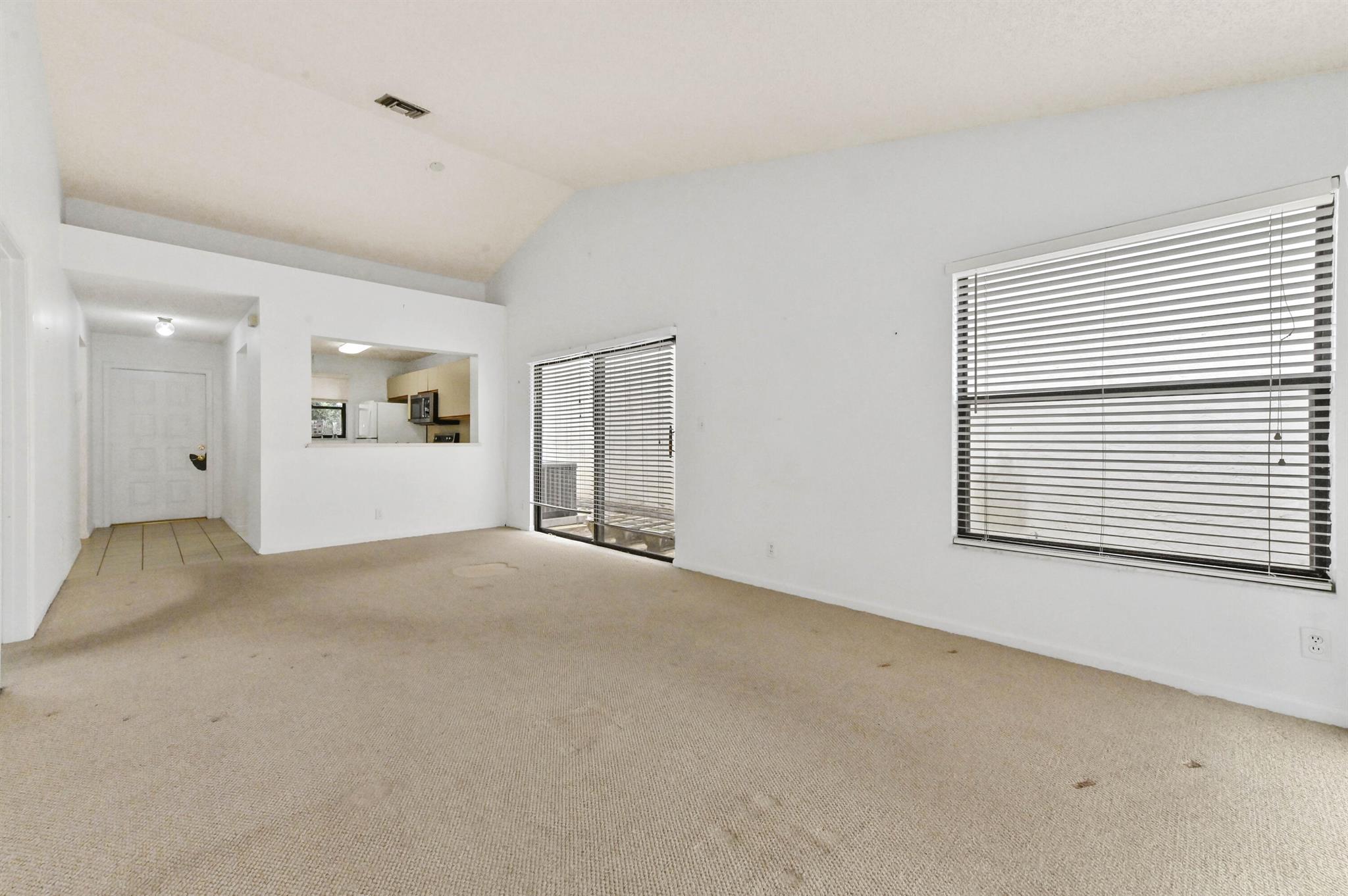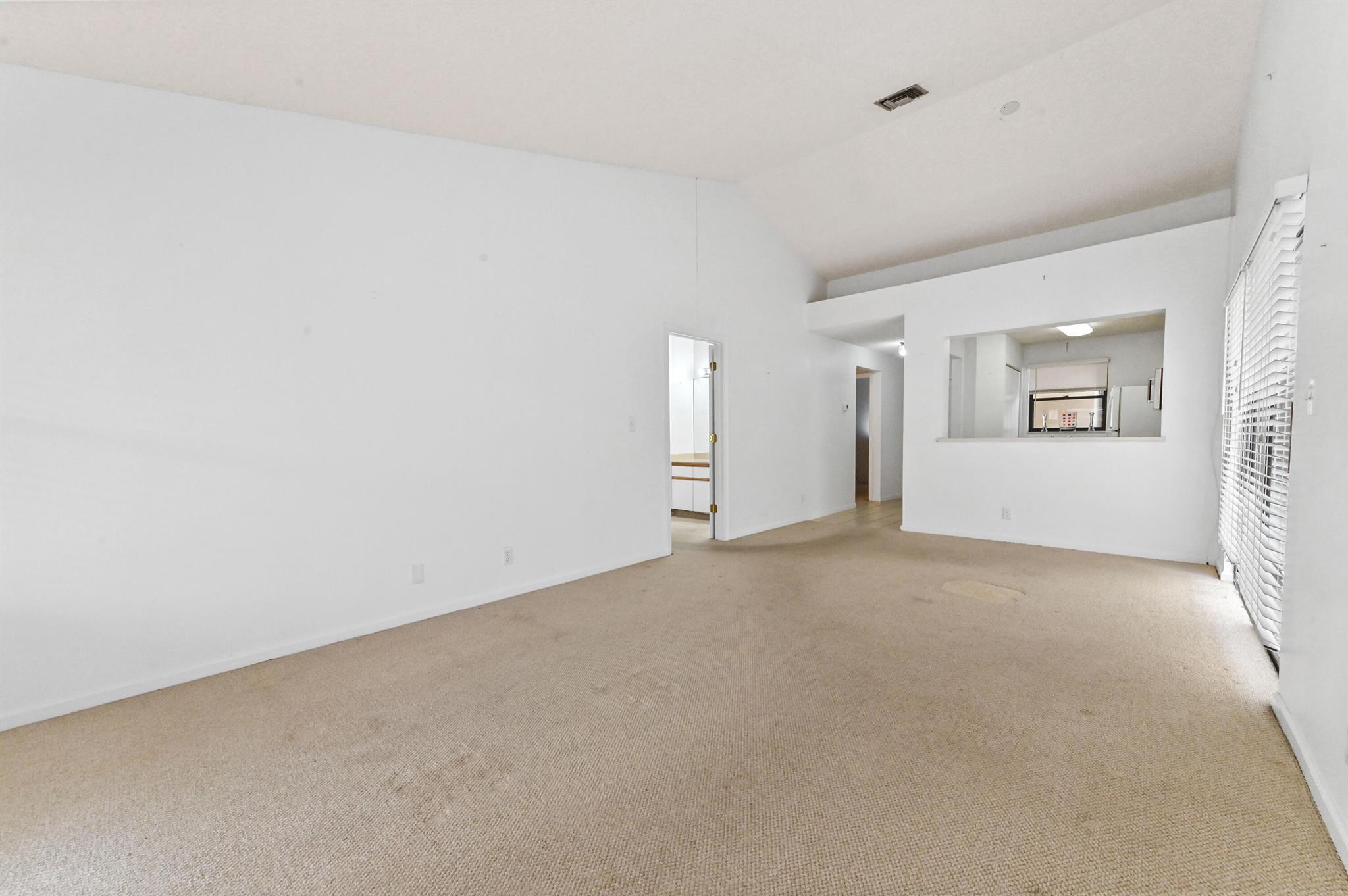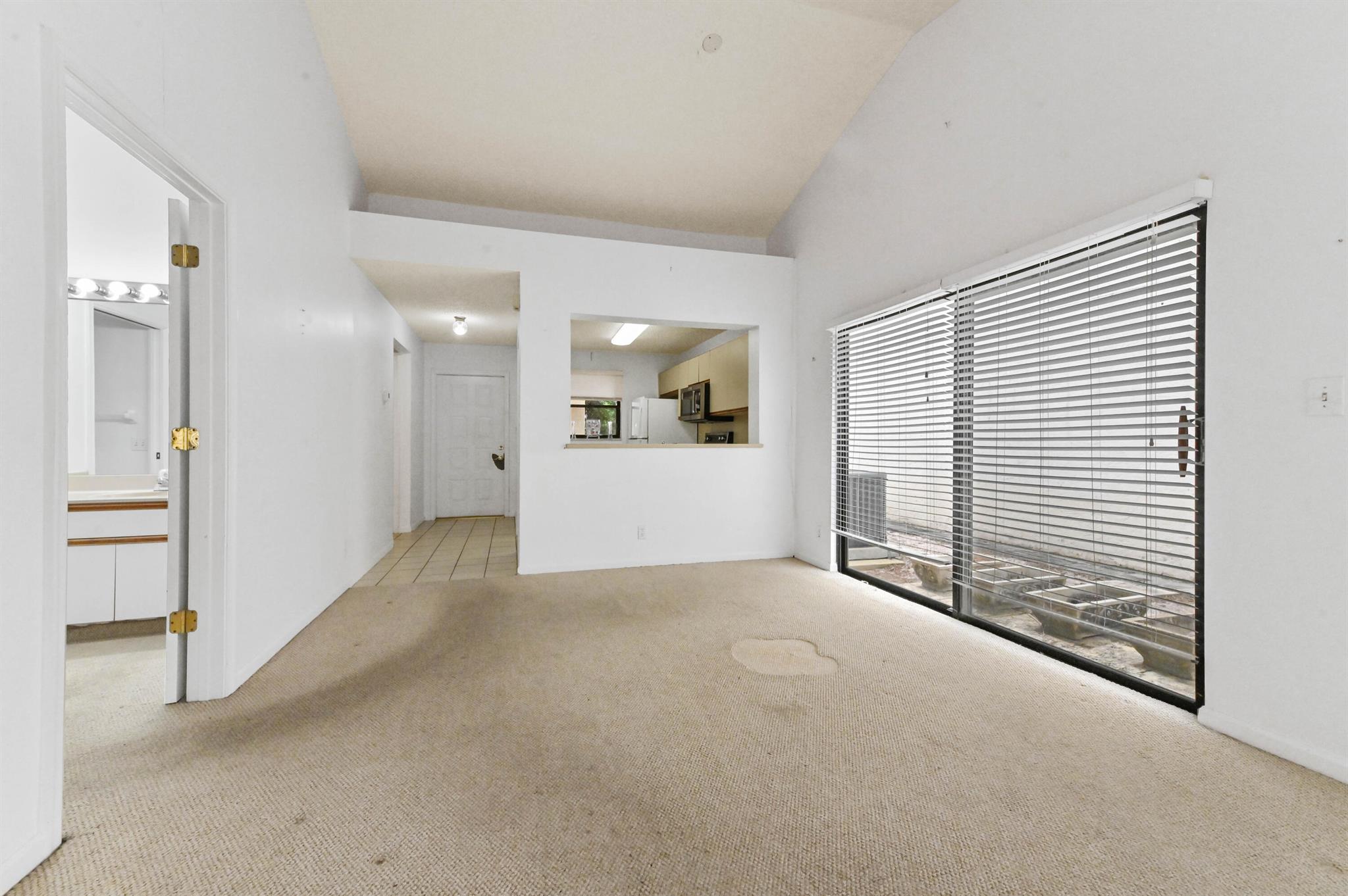 Tucked away on a quiet interior lot, this terrific home offers both privacy and charm in a beautifully maintained community. Step inside to discover vaulted ceilings and large windows that fill the living space with natural light. The cozy living room flows effortlessly into the kitchen, which features a convenient pass-through window--perfect for entertaining. The stack bedroom design ensures a functional layout, while carpet runs throughout the living areas, creating a cozy and comfortable feel.
