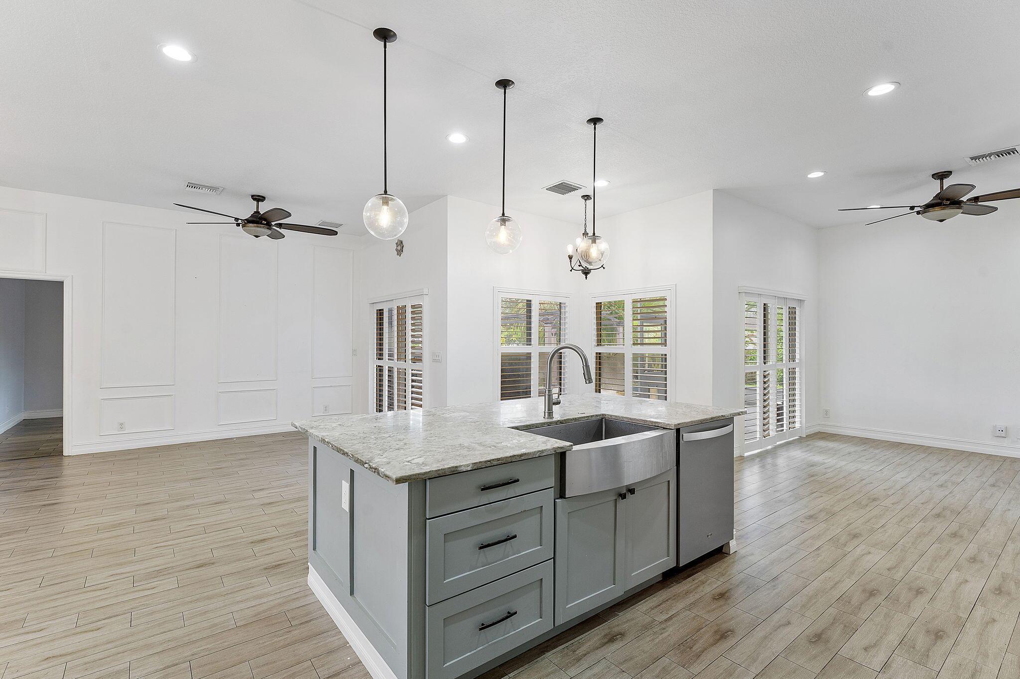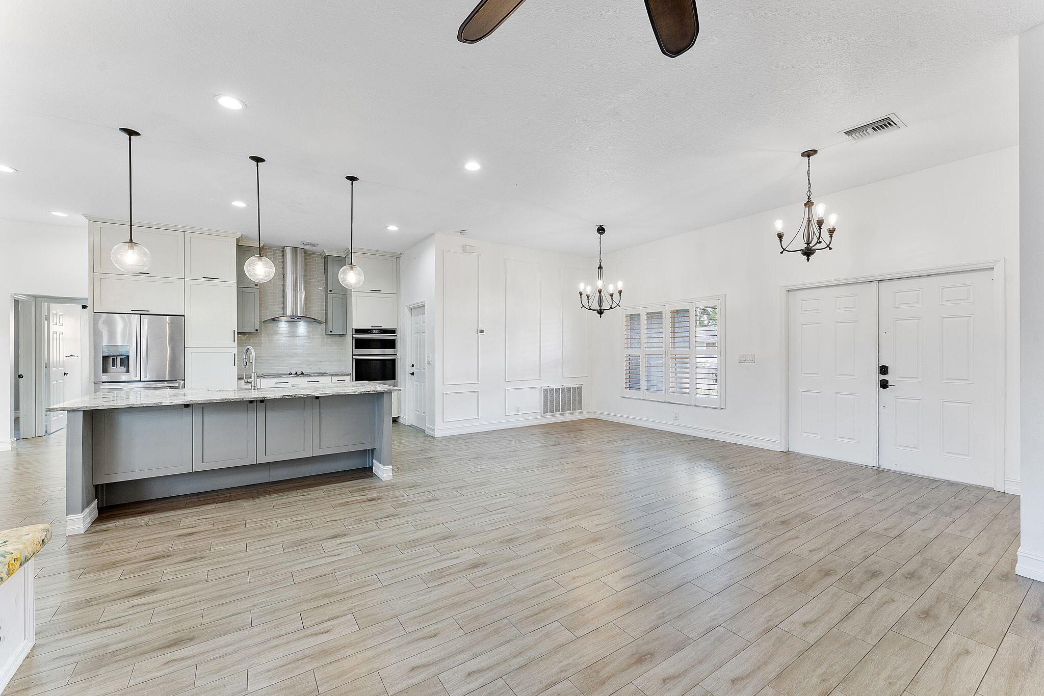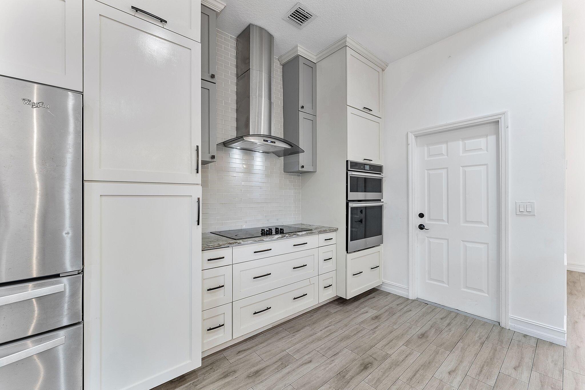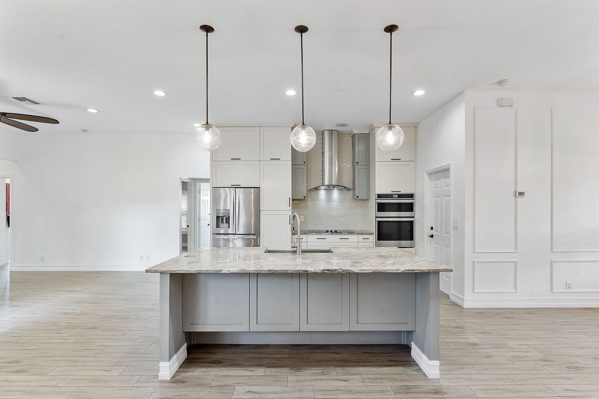 Fall in Love with This Stunning 4-Bedroom Beauty with Designer Kitchen, Lush Yard with a Bonus Shed! From the moment you arrive, the charming curb appeal sets the tone. Inside, the expansive open-concept living space dazzles with soaring ceilings, elegant wood-look tile flooring, custom millwork, and an abundance of natural light. The chef's kitchen is a total showstopper--boasting sleek stainless steel appliances, double ovens, a massive granite island, and floor-to-ceiling cabinetry that's as functional as it is beautiful.