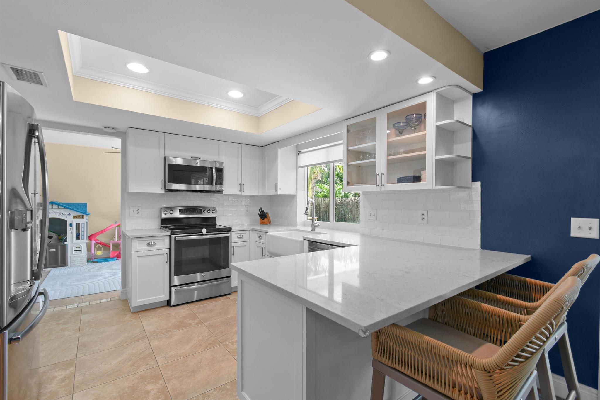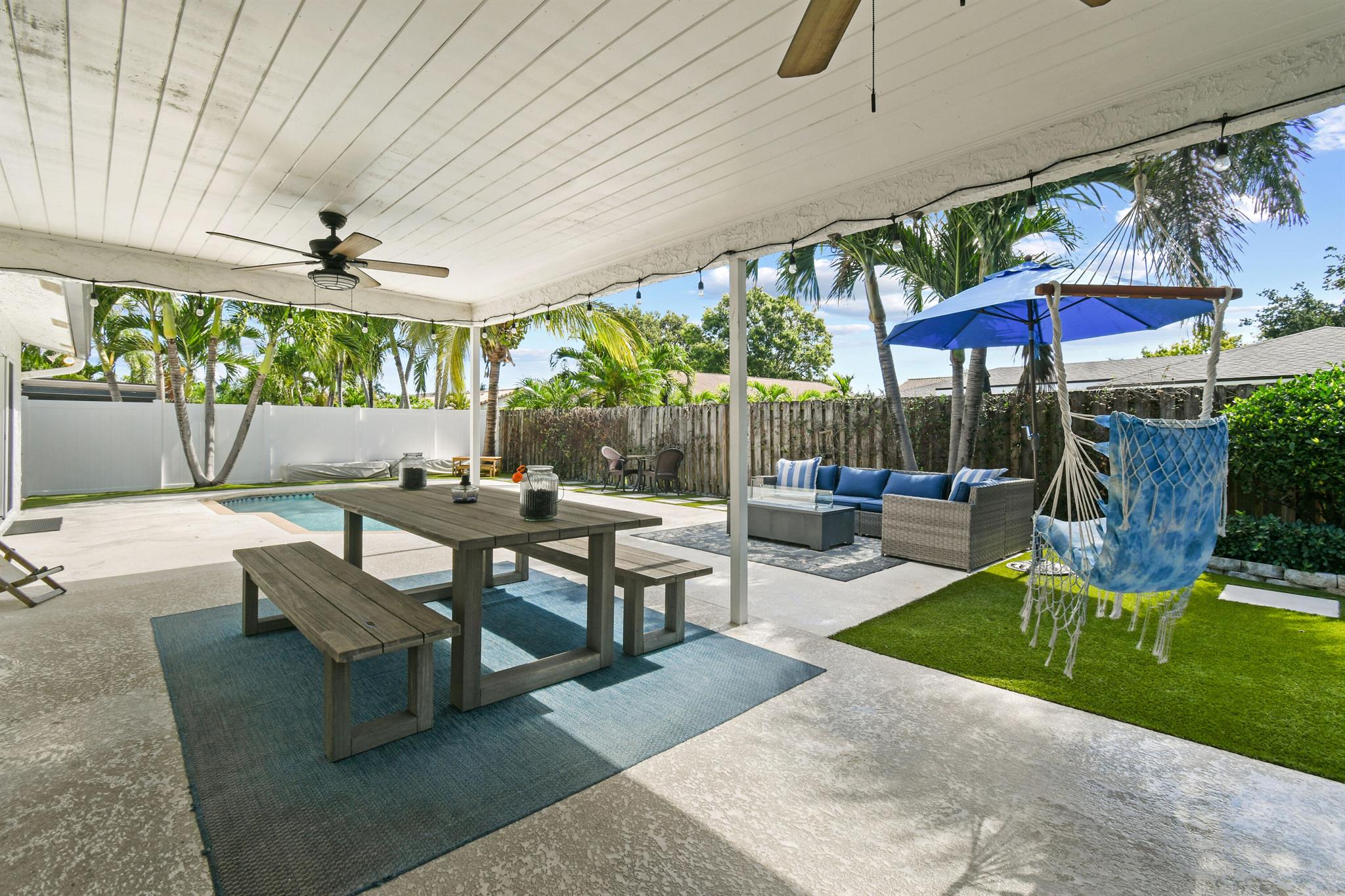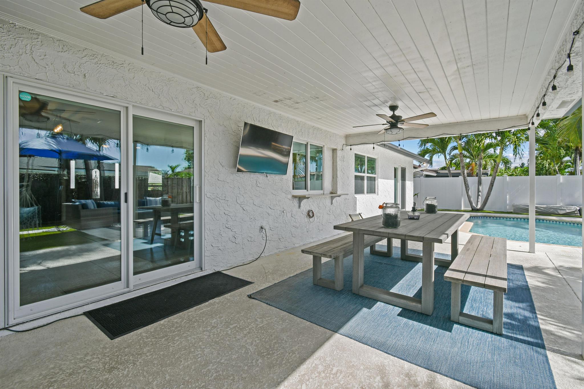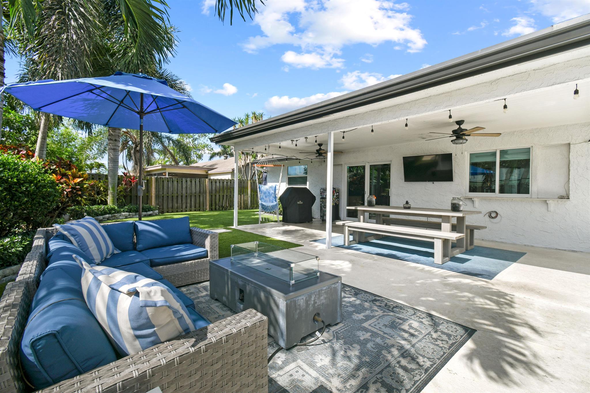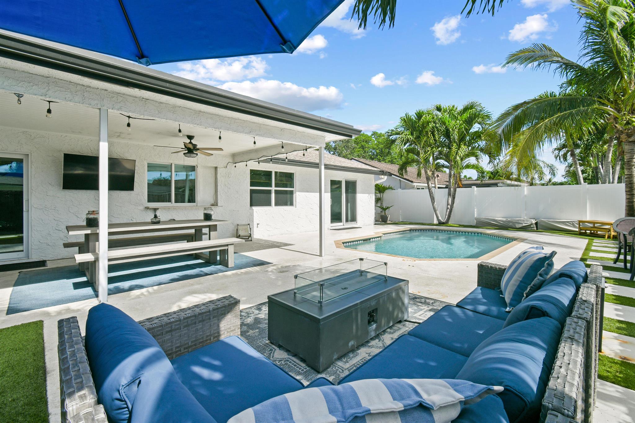 Beautifully updated home in an incredibly central location. This move in ready home features full impact glass, updated kitchen and primary bathroom, an inviting backyard that's primed to entertain you and your guests, and a driveway big enough to host them! (+2 car garage!) Abundant natural light throughout. Primary bedroom recently outfitted with a brand new bathroom and custom closet buildout. Elegant backyard features ample covered and uncovered patio space, pool, and pet friendly turf throughout. Garden Woods is a lovely non-HOA neighborhood that is at the absolute center of all that Palm Beach Gardens has to offer. Don't miss out!