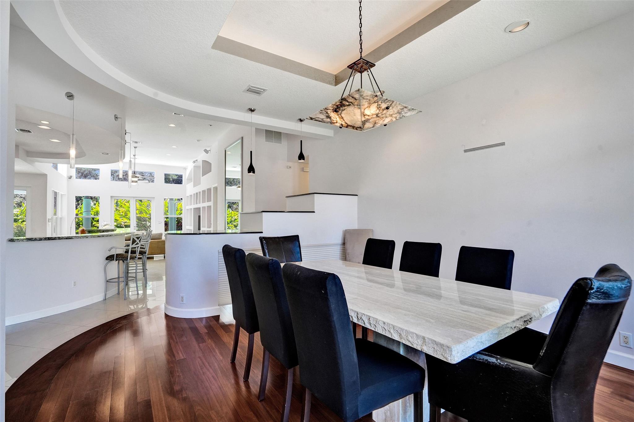 HUGE Price Reduction! Custom one-of-a-kind home on large corner lot in West Wilton. Built in 2008, this residence boasts striking 13’ ceilings & tons of natural light living areas. Spacious kitchen featuring ample counter space, premium cabinetry, granite countertops, bar seating, breakfast nook, kitchen island, & Bosch gas range. Separate raised dining room w/ tray ceiling & Brazilian Mahogany hardwood floors. Primary bedroom has newly installed luxury vinyl, crown molding, accent lighting, & walk in closet w/ built ins. On suite primary bath w/ dual sinks, water closet, & oversized walk in shower w/ dual heads. Split bedroom plan. Secluded tropical backyard oasis w/ mature landscaping, heated pool, covered patio, built in BBQ, & whole house generator. Easy access to Wilton Drive and I95.