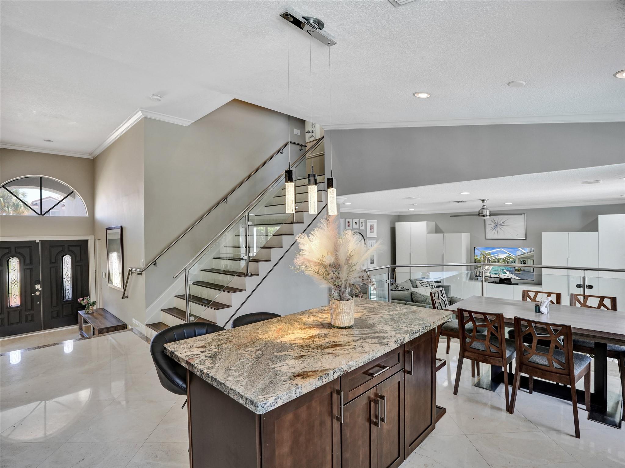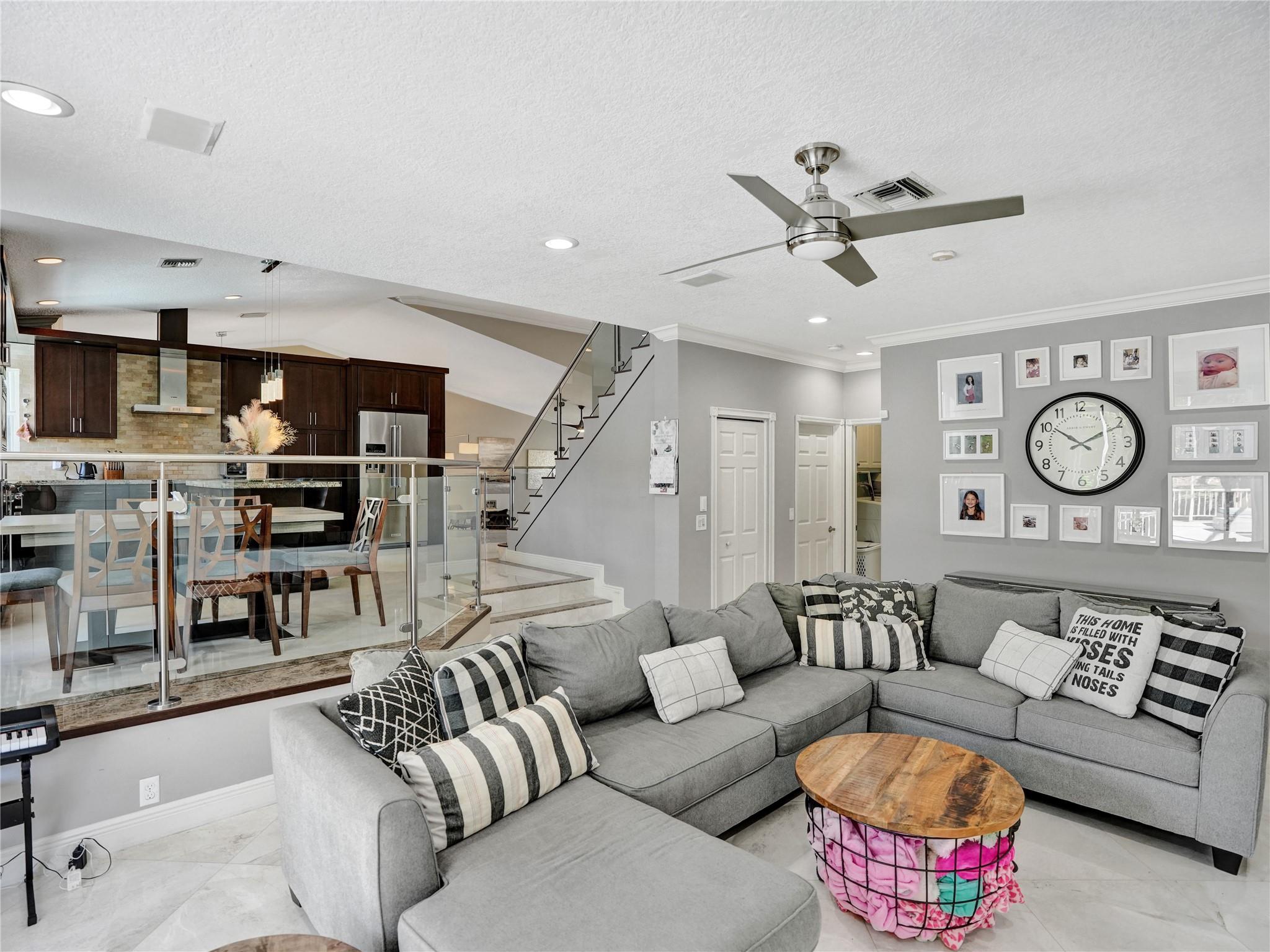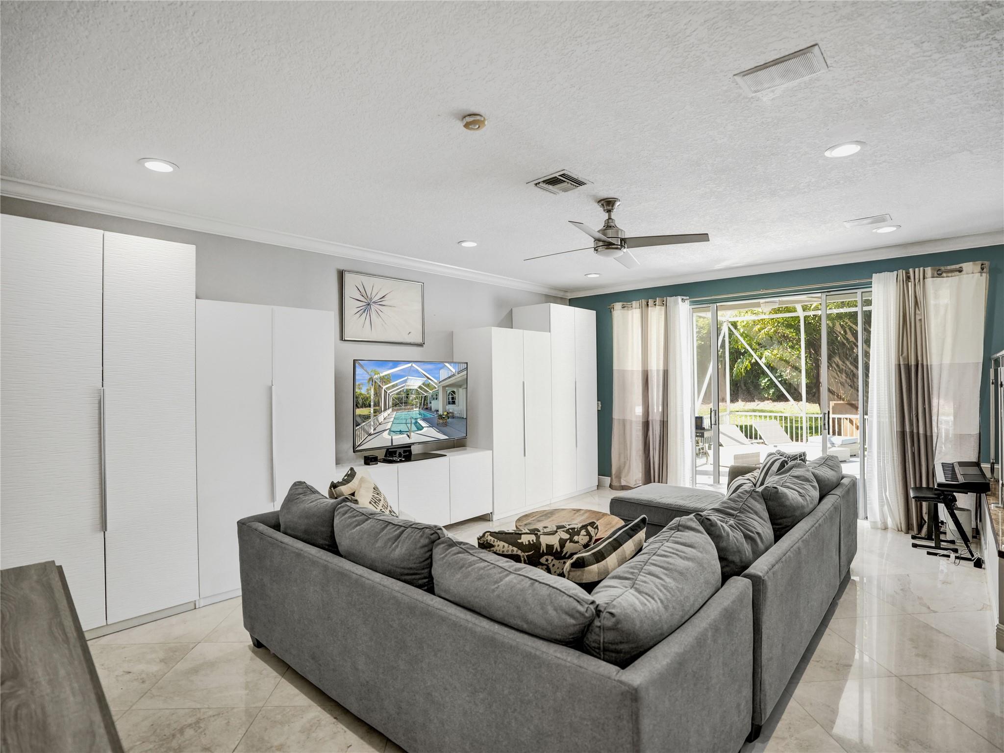 Experience luxury living in this beautiful and exceptionally spacious 4-bedroom, 3-bathroom home in the prestigious gated community of Boca Isles. First floor boasts elegant marble flooring, a gourmet open kitchen with granite countertops, stainless steel appliances, and soaring vaulted ceilings. Enjoy a large family room and a formal dining area perfect for entertaining. A guest bedroom with a full bathroom. Upstairs boasts rich laminate flooring and a bright, expansive master suite featuring a private balcony. Newer AC and WH. Accordion shutters all around. 3 car garage, Screened-in pool, fruit trees. Boca Isles offers a 24/7 guarded gate and offers top-tier amenities including a heated pool, tennis courts, a playground, a clubhouse, and a fully equipped fitness center. A+ school zone!