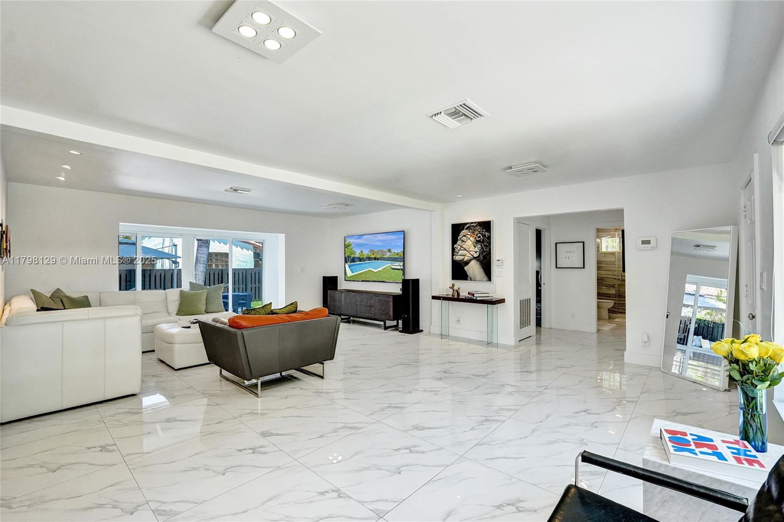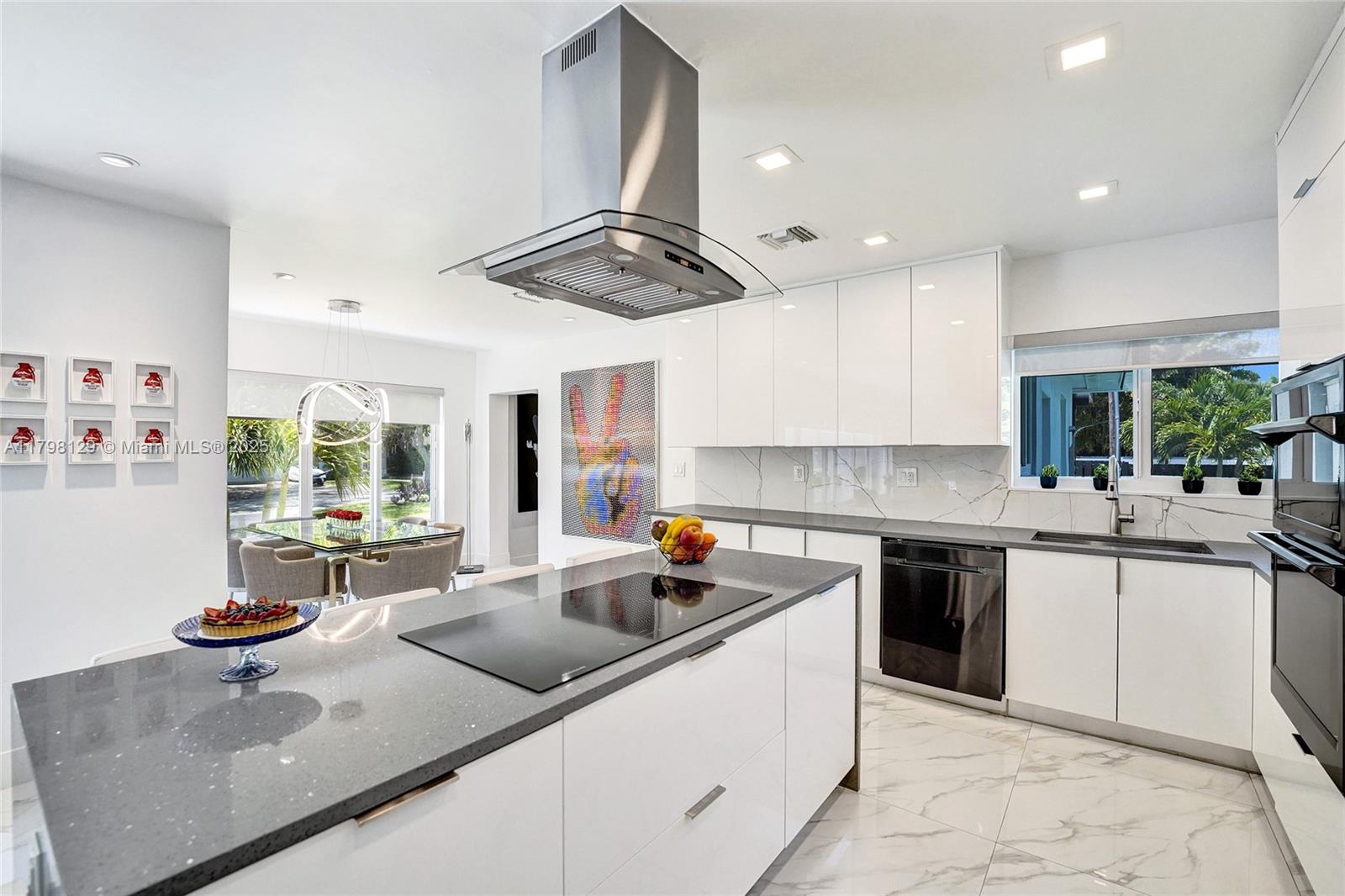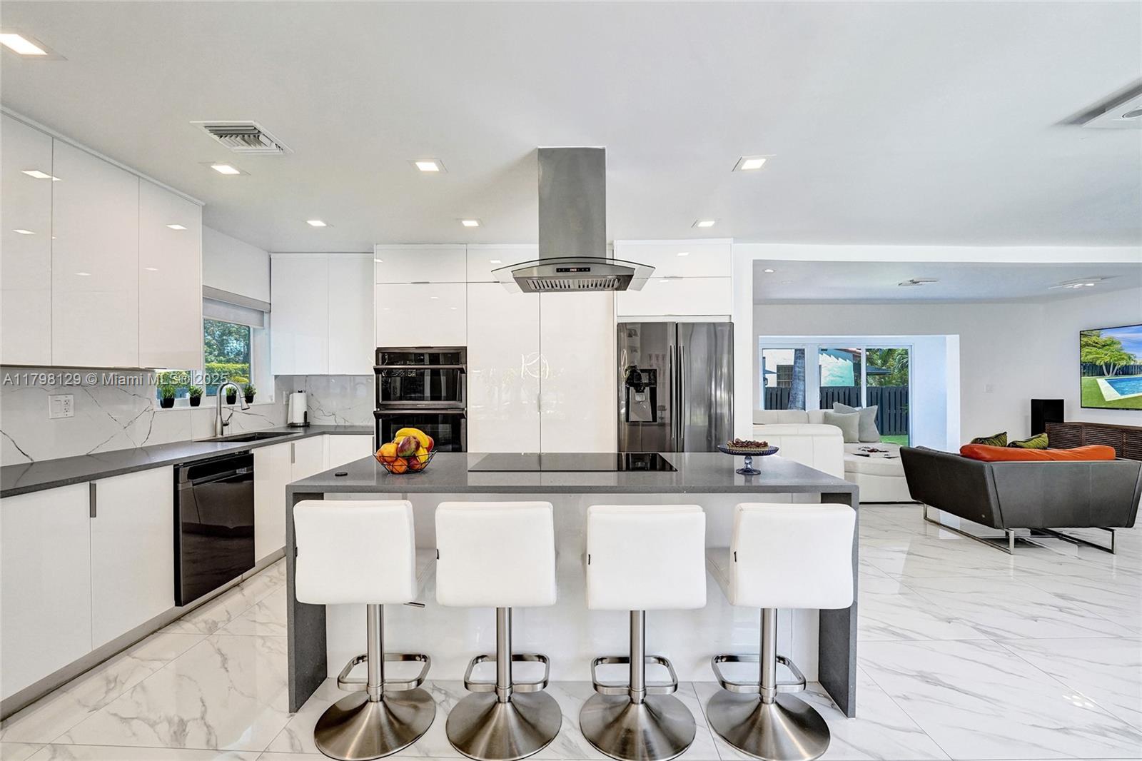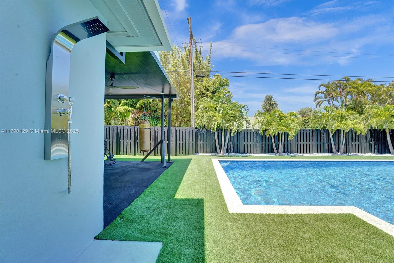 Welcome to this stunning modern property located on a rare double corner lot of approx. over 15,000 sq.ft. in the heart of Hollywood Lakes. This home is renovated from the plumbing, electric and interior. This home offers 4BD/3BA, updated kitchen and bathrooms, 32x32 porcelain tiles throughout, open concept split floor plan. A modern kitchen with quartz counters and Samsung appliances with large kitchen island to entertain. Expansive backyard with an oversized salt water pool/heated spa, outdoor shower and turf areas to enjoy,workout and entertain family & friends with delicious barbeques. Centrally located, a short walk to Downtown, Beach, South Lake, houses of worship and parks. This home delivers modern elegance & luxury.
