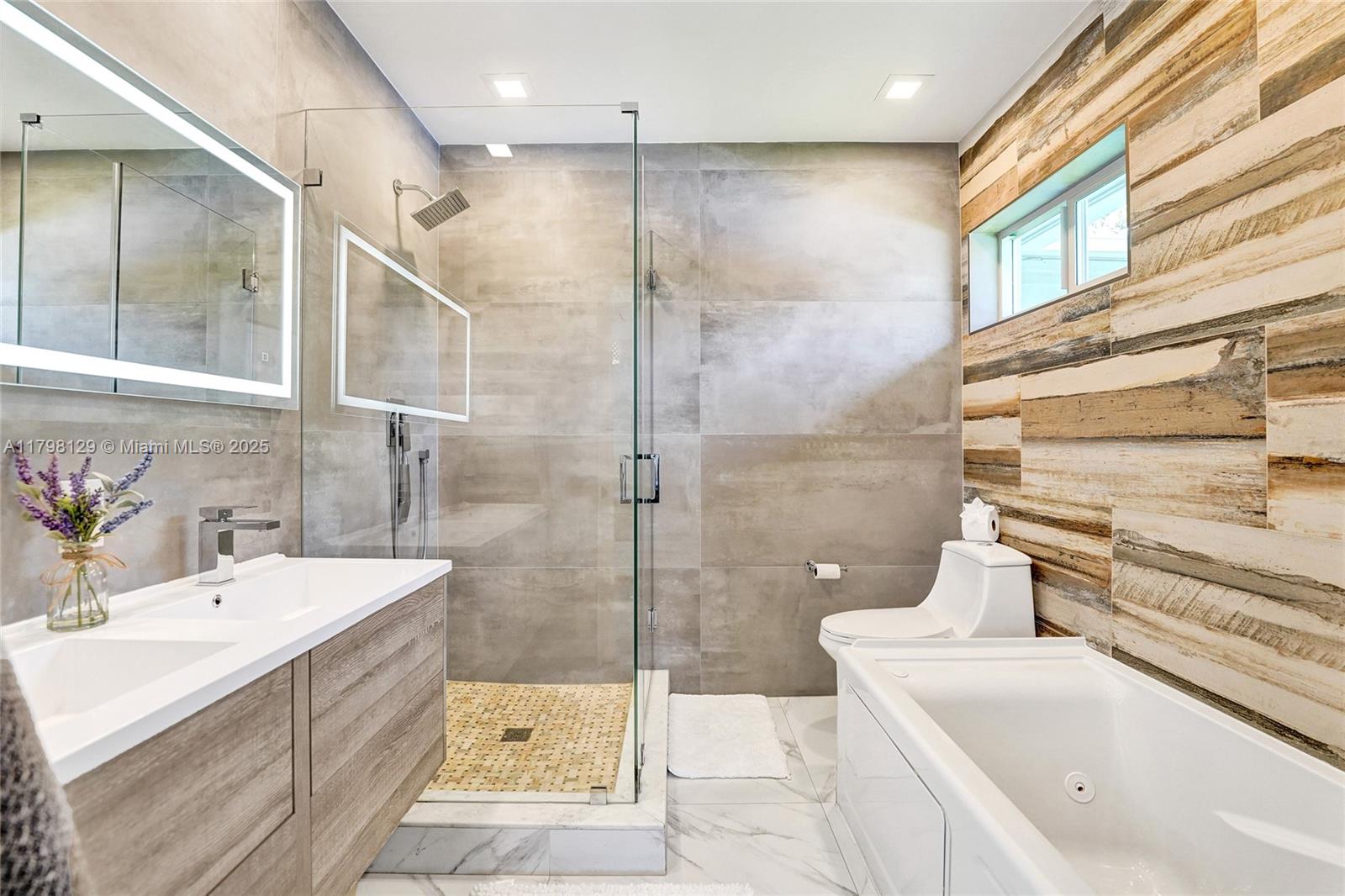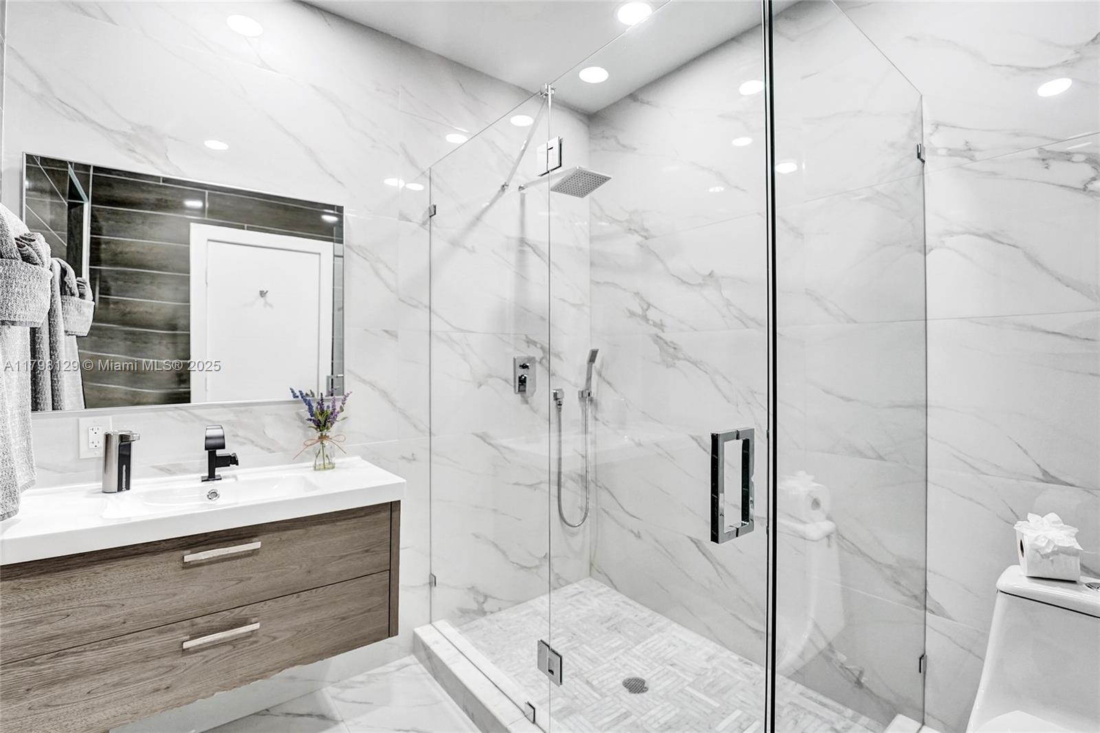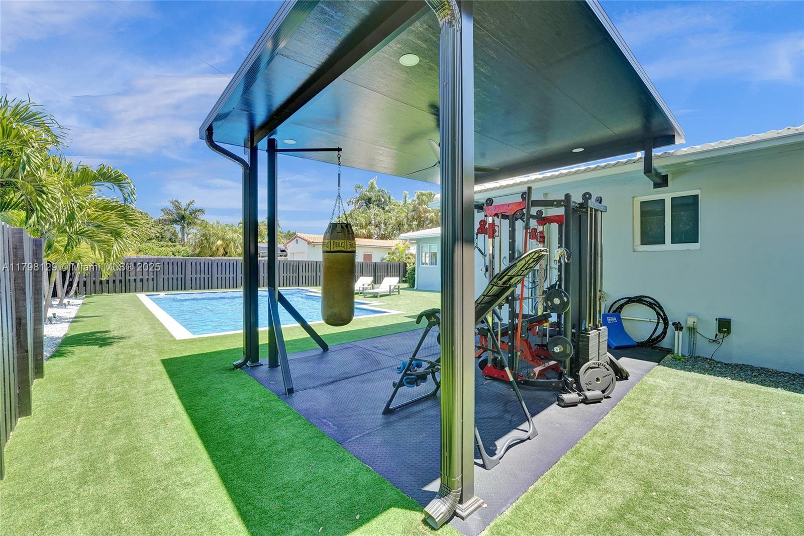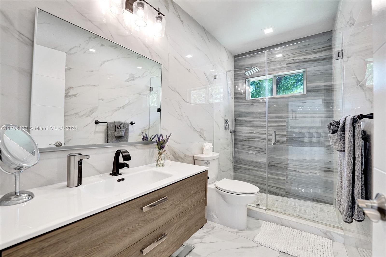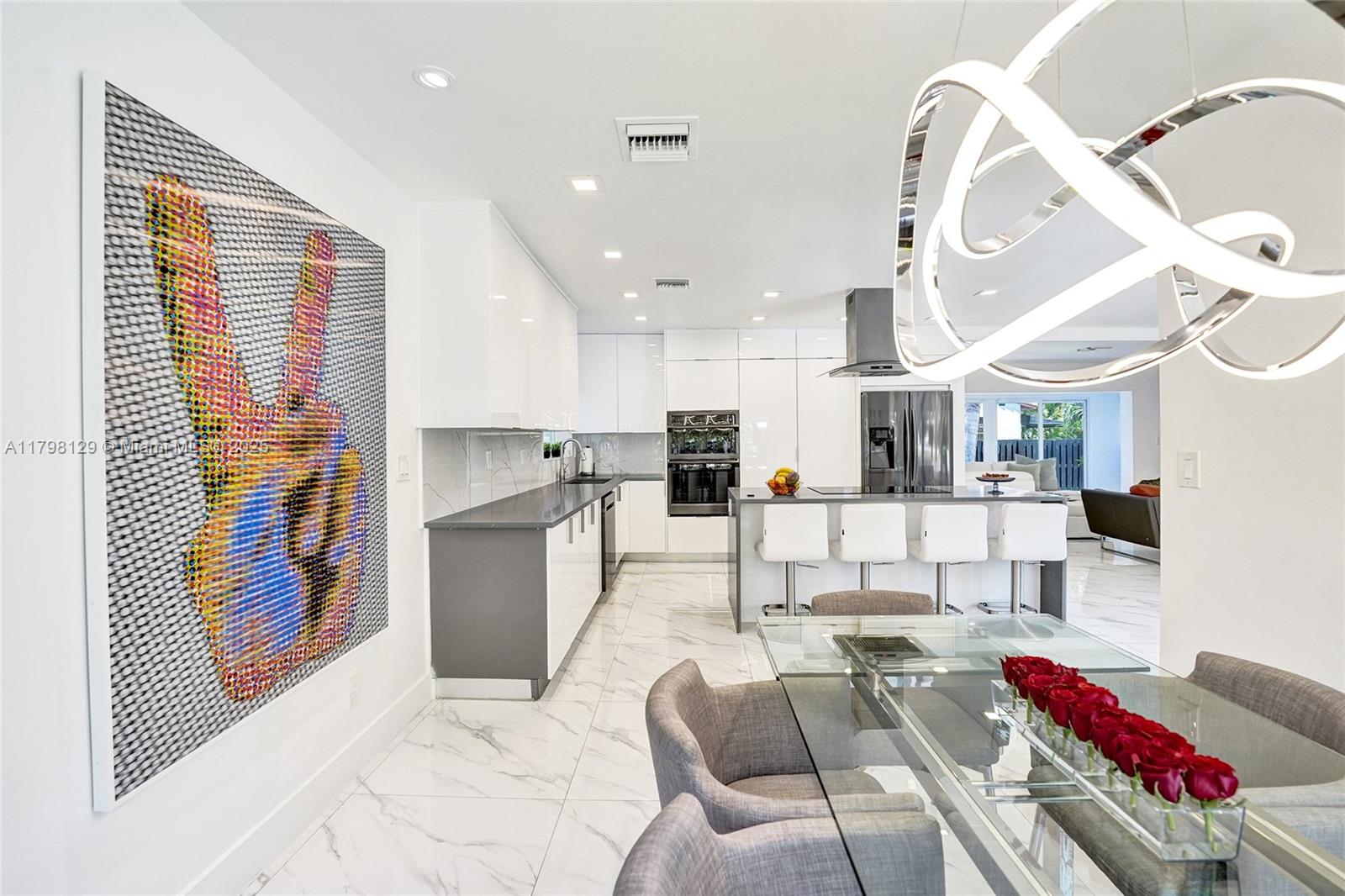 Welcome to this stunning modern property located on a rare double corner lot of approx. over 15,000 sq.ft. in the heart of Hollywood Lakes. This home is renovated from the plumbing, electric and interior. This home offers 4BD/3BA, updated kitchen and bathrooms, 32x32 porcelain tiles throughout, open concept split floor plan. A modern kitchen with quartz counters and Samsung appliances with large kitchen island to entertain. Expansive backyard with an oversized salt water pool/heated spa, outdoor shower and turf areas to enjoy,workout and entertain family & friends with delicious barbeques. Centrally located, a short walk to Downtown, Beach, South Lake, houses of worship and parks. This home delivers modern elegance & luxury.