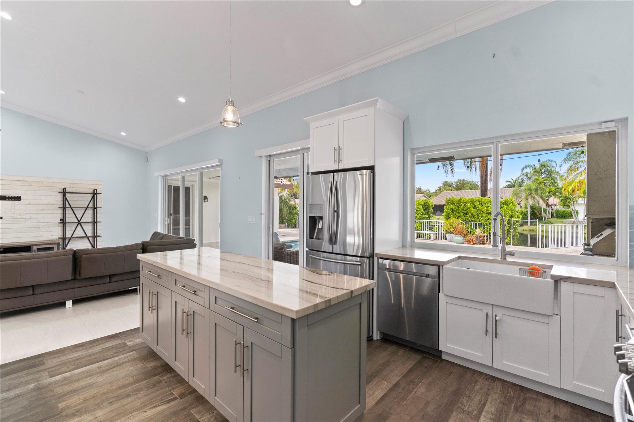 SPECTACULAR LAKE AND POOL VIEWS FROM THIS HIGHLY UPGRADED 4 BEDROOM 2 1/2 BATH HOME ON AN OVERSIZED WATERFRONT LOT (12,420 SQ FT)*HURRICANE IMPACT WINDOWS & DOORS*GORGEOUS KITCHEN WITH SHAKER CABINETS, ISLAND, QUARTZITE'S COUNTER TOPS, WINE REFRIGERATOR AND SAMSUNG APPLIANCESS*SPACIOUS PRIMARY BEDROOM WITH LUXURIOUS BATHROOM - DOUBLE SHOWER AND SOAKING TUB*BEAUTIFUL TILE FLOORS THRU OUT MAIN LIVING AREA*BAMBOO WOOD FLOORS IN BEDROOMS*ALL BATHS HAVE BEEN REMODELED*CROWN MOLDING*BARN DOOR*SMART LIGHT SWITCHES*NEST THERMOSTAT*AMAZING BACK YARD OVERLOOKING PEACEFUL VIEW OF THE WATER*HEATED POOL*POOL SAFETY FENCE*OUTDOOR KITCHEN WITH PROPANE GAS CONNECTED*GREAT FOR ENTERTAINING FAMILY AND FRIENDS*TONS OF UPGRADES THRU OUT*SHOWS GREAT!!!!