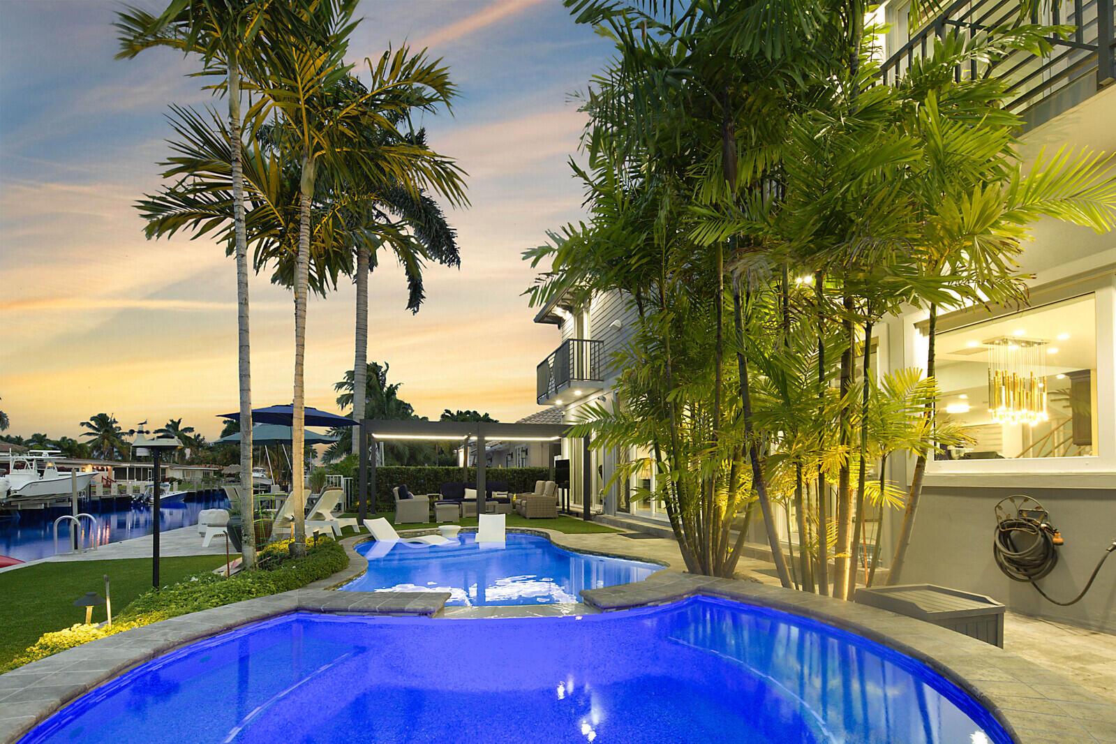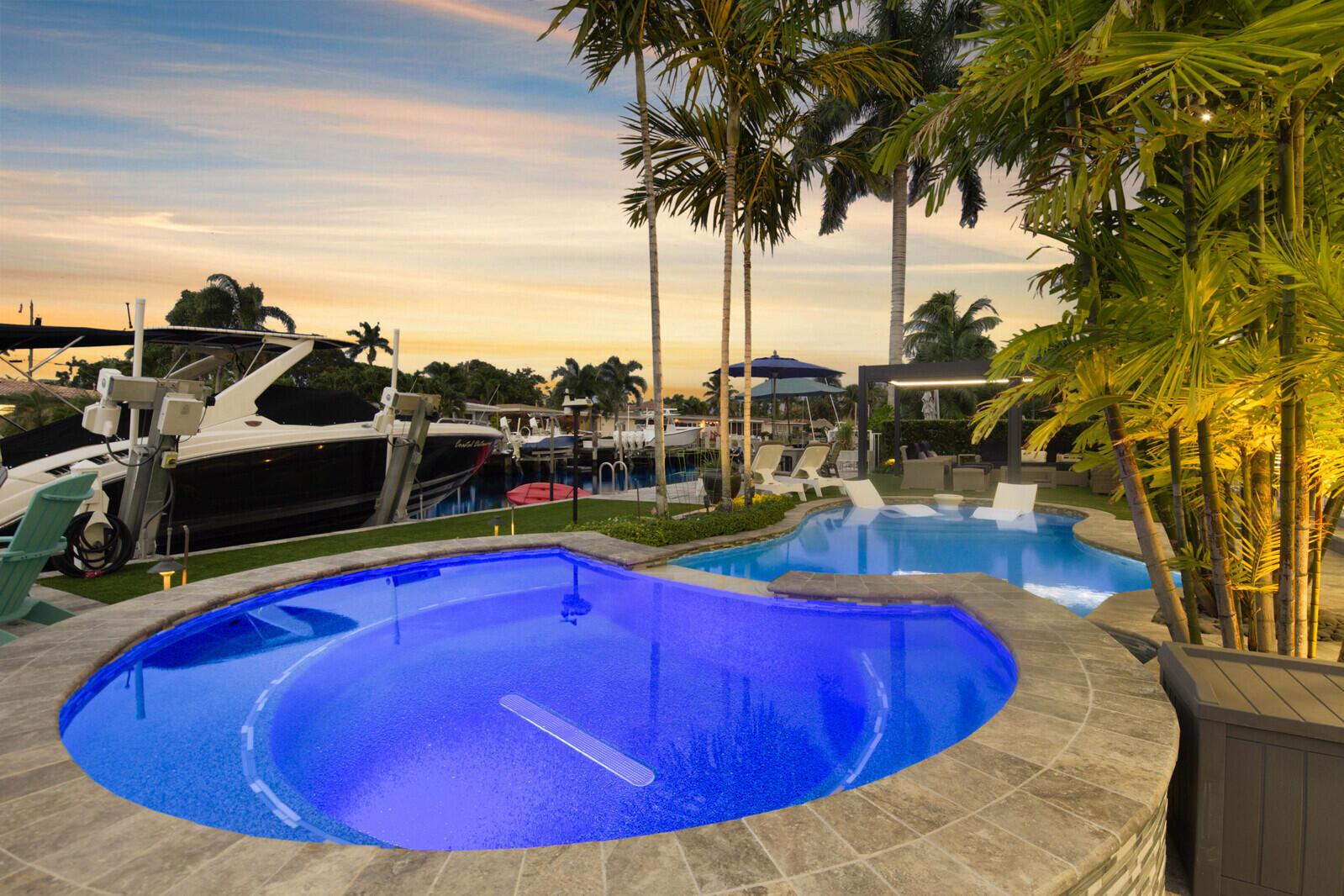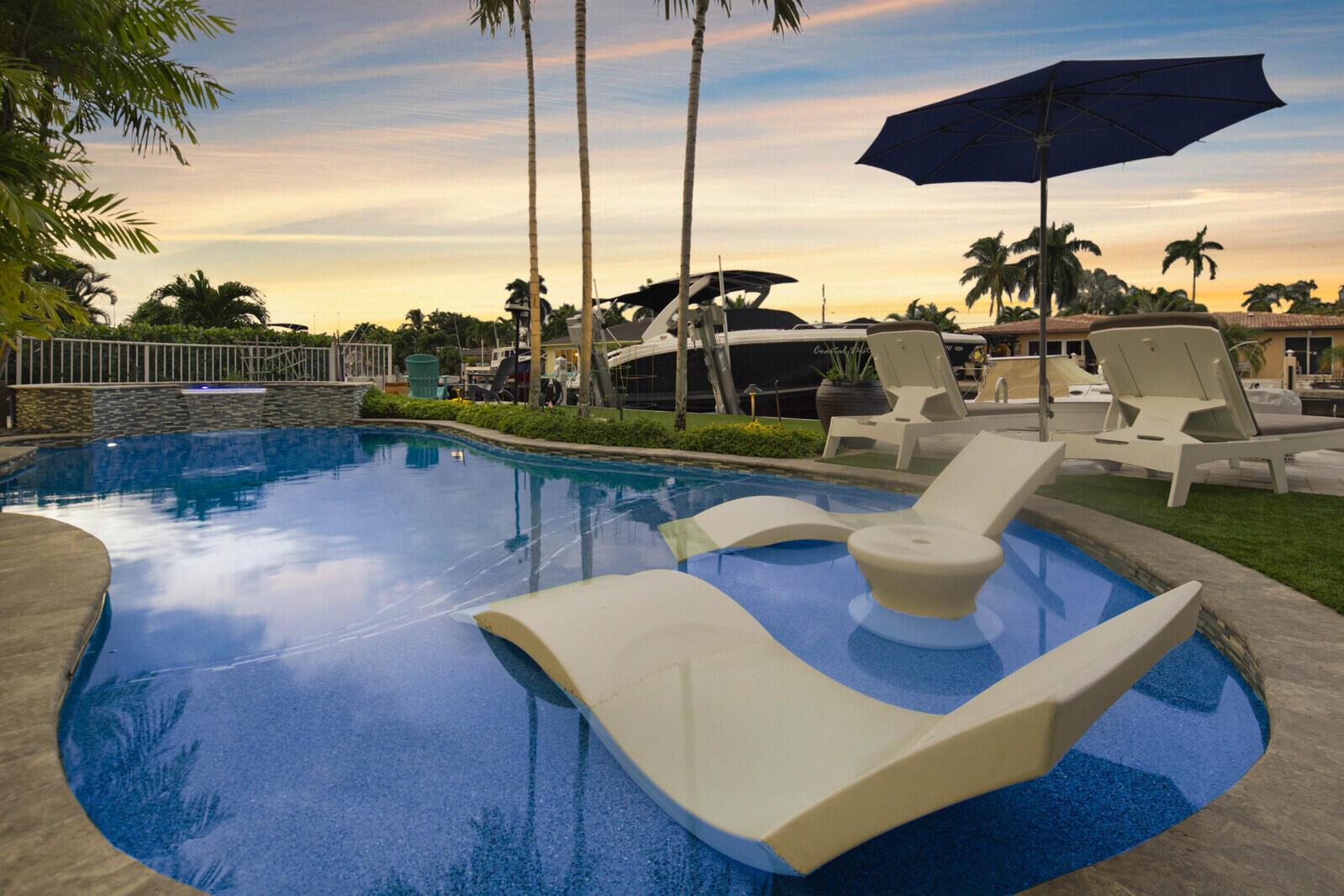Welcome to luxury waterfront living reimagined--this custom-designed 5-bedroom, 4.5-bath home in Pompano Beach offers the ultimate blend of style, technology, and South Florida lifestyle. Tucked away in one of the area's best-kept secret waterfront communities, this residence is built for boaters and dreamers alike. With direct ocean access, a 10,000 lb boat lift, new seawall cap, and a fully equipped concrete dock (power + water pedestals), your next adventure is just steps away. (Note: 2 fixed bridges with 14' clearance.) Inside, discover a bright, open layout with elegant finishes, soaring ceilings, and a 500-sq-ft flex room--perfect for a media room, home office, gym, or creative space. The chef's kitchen is a showstopper with high-end JennAir appliances, gas cooking, dual sinks, pot