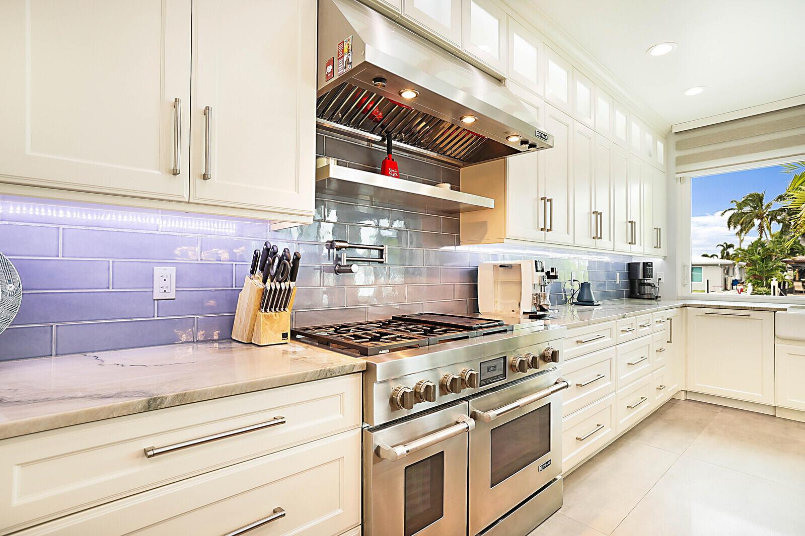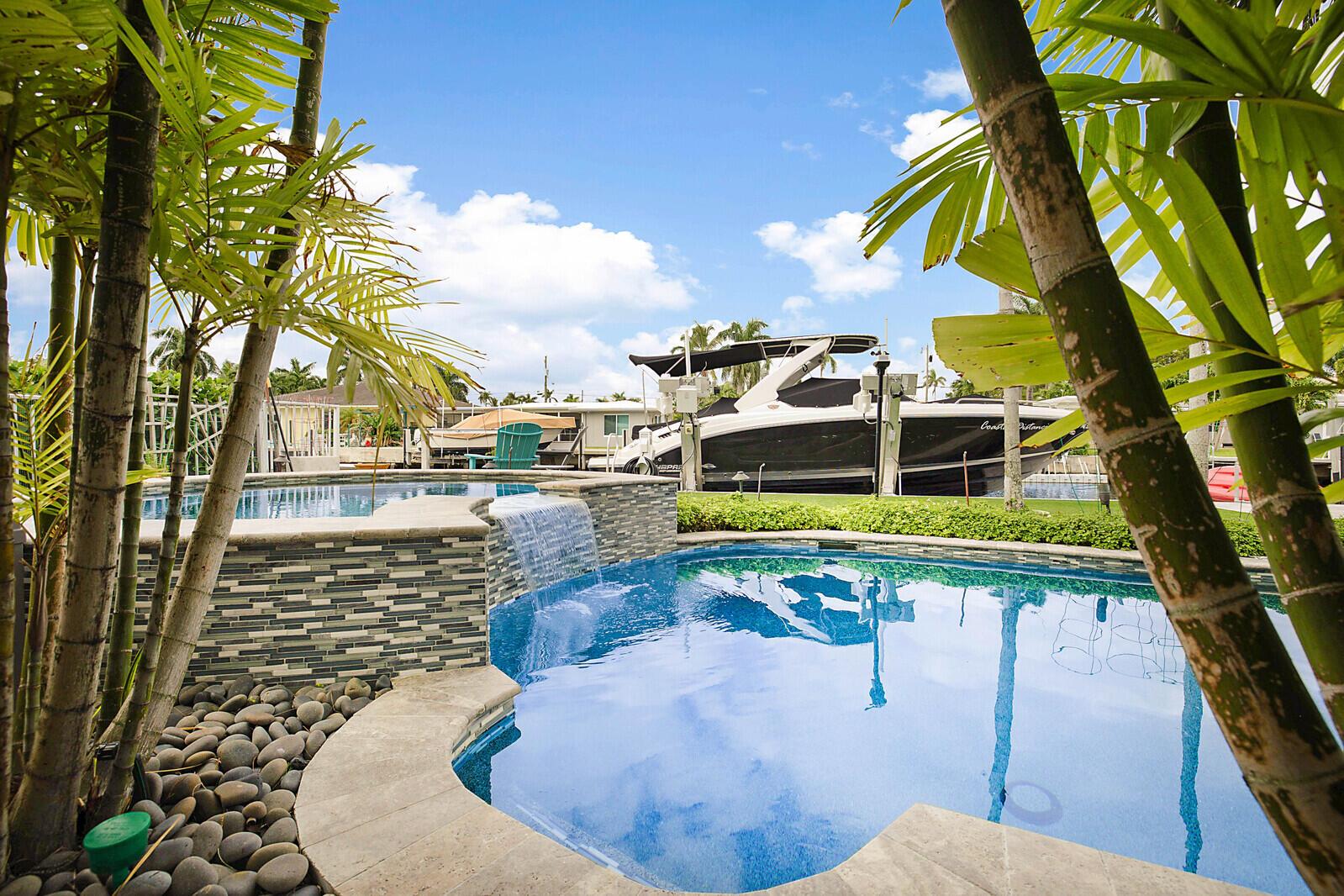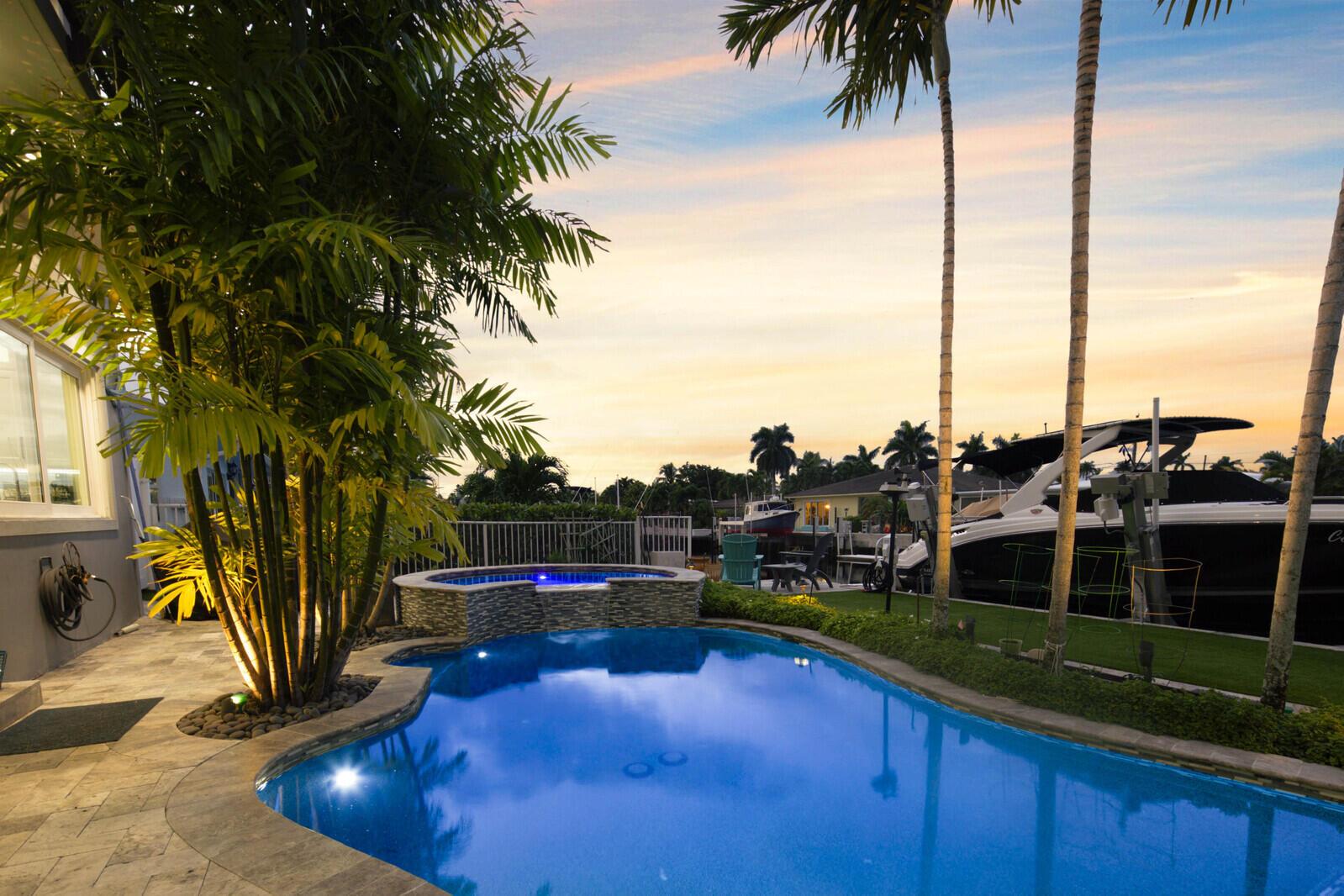 Welcome to luxury waterfront living reimagined--this custom-designed 5-bedroom, 4.5-bath home in Pompano Beach offers the ultimate blend of style, technology, and South Florida lifestyle. Tucked away in one of the area's best-kept secret waterfront communities, this residence is built for boaters and dreamers alike. With direct ocean access, a 10,000 lb boat lift, new seawall cap, and a fully equipped concrete dock (power + water pedestals), your next adventure is just steps away. (Note: 2 fixed bridges with 14' clearance.) Inside, discover a bright, open layout with elegant finishes, soaring ceilings, and a 500-sq-ft flex room--perfect for a media room, home office, gym, or creative space. The chef's kitchen is a showstopper with high-end JennAir appliances, gas cooking, dual sinks, pot