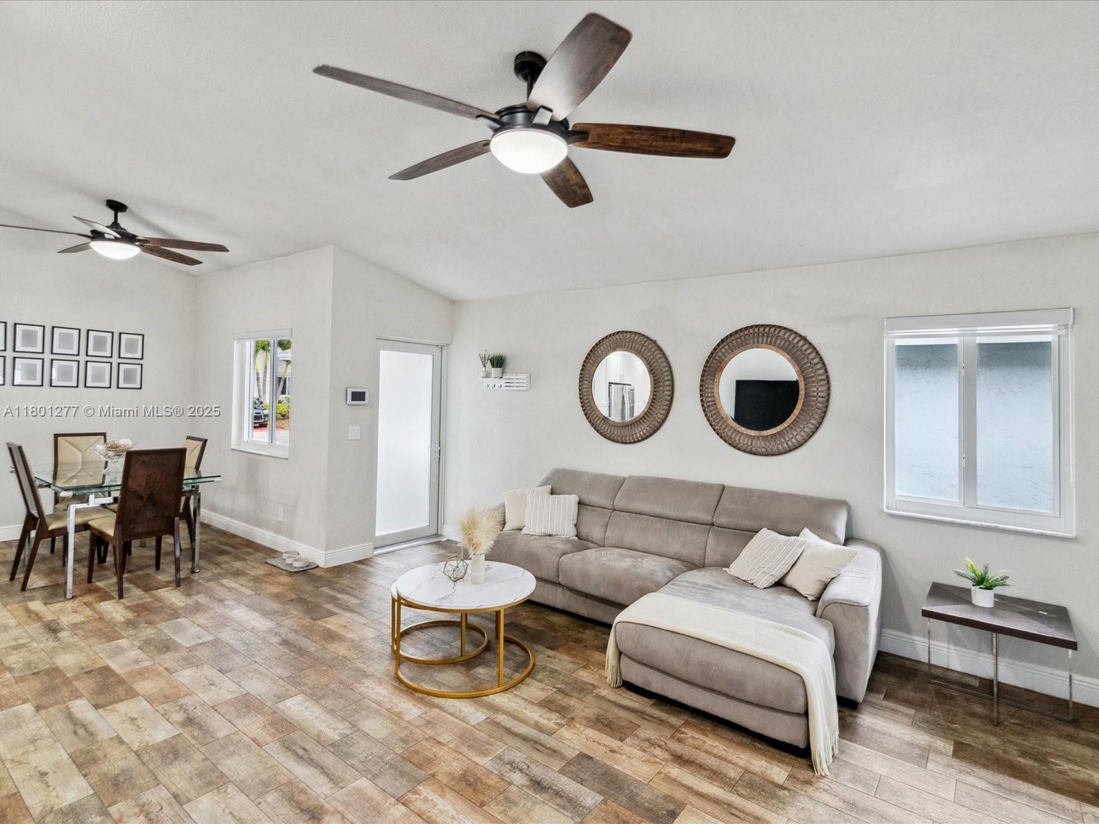 WELCOME TO THIS BEAUTIFULLY FULLY RENOVATED 2-BEDROOM, 2-BATHROOM SINGLE-FAMILY HOME! ENJOY PEACE OF MIND WITH IMPACT WINDOWS AND DOORS THROUGHOUT. A MODERN KITCHEN WITH QUARTZ COUNTERTOPS, STAINLESS STEEL APPLIANCES, AND AN OPEN LAYOUT PERFECT FOR ENTERTAINING. BOTH BATHROOMS HAVE BEEN COMPLETELY UPDATED INCLUDING FRAMELESS GLASS SHOWERS AND STYLISH FINISHES. THE HOME FEATURES WOOD-LOOK TILE FLOOR THROUGHOUT. THE SPACIOUS BACKYARD OFFERS PLENTY OF ROOM TO RELAX OR HOST GATHERINGS AND INCLUDES AN EXTENDED COVERED PATIO. THIS MOVE-IN READY HOME COMBINES COMFORT, STYLE, AND FUNCTIONALITY!