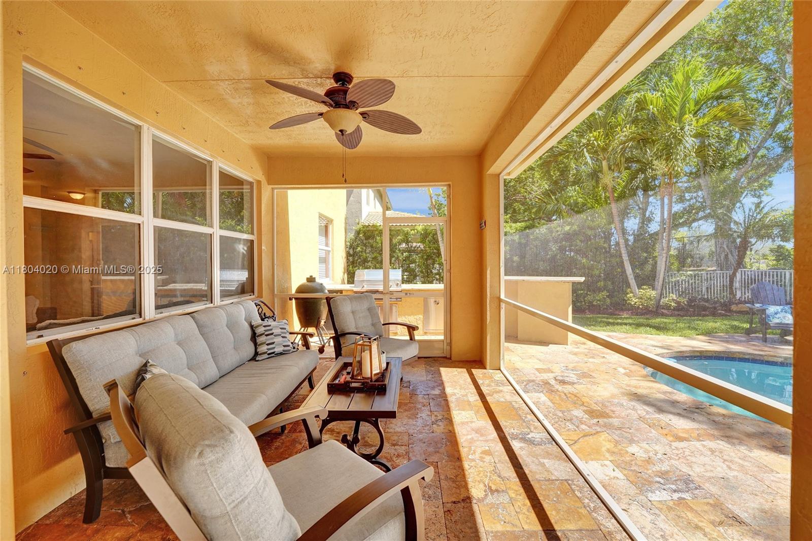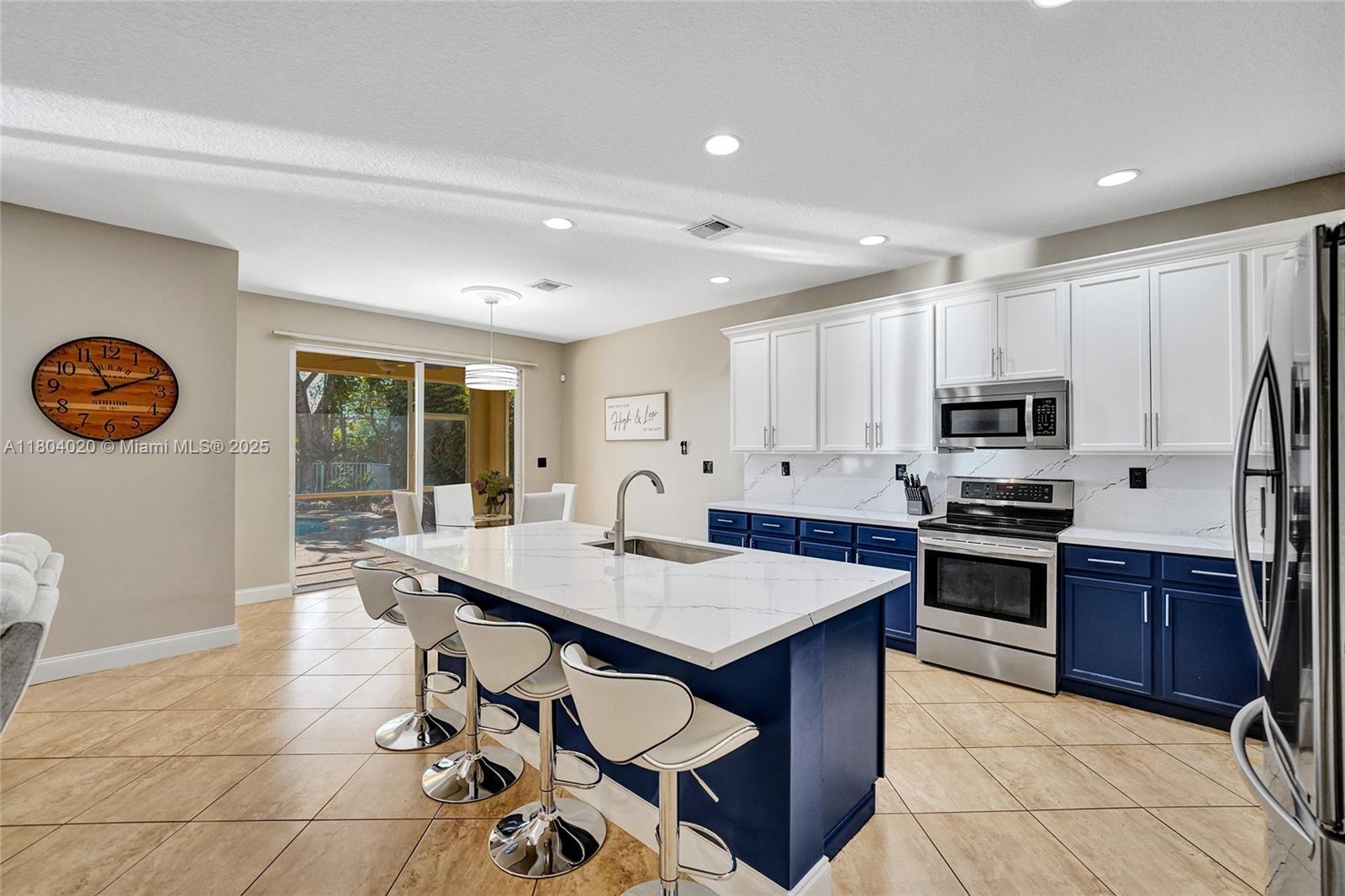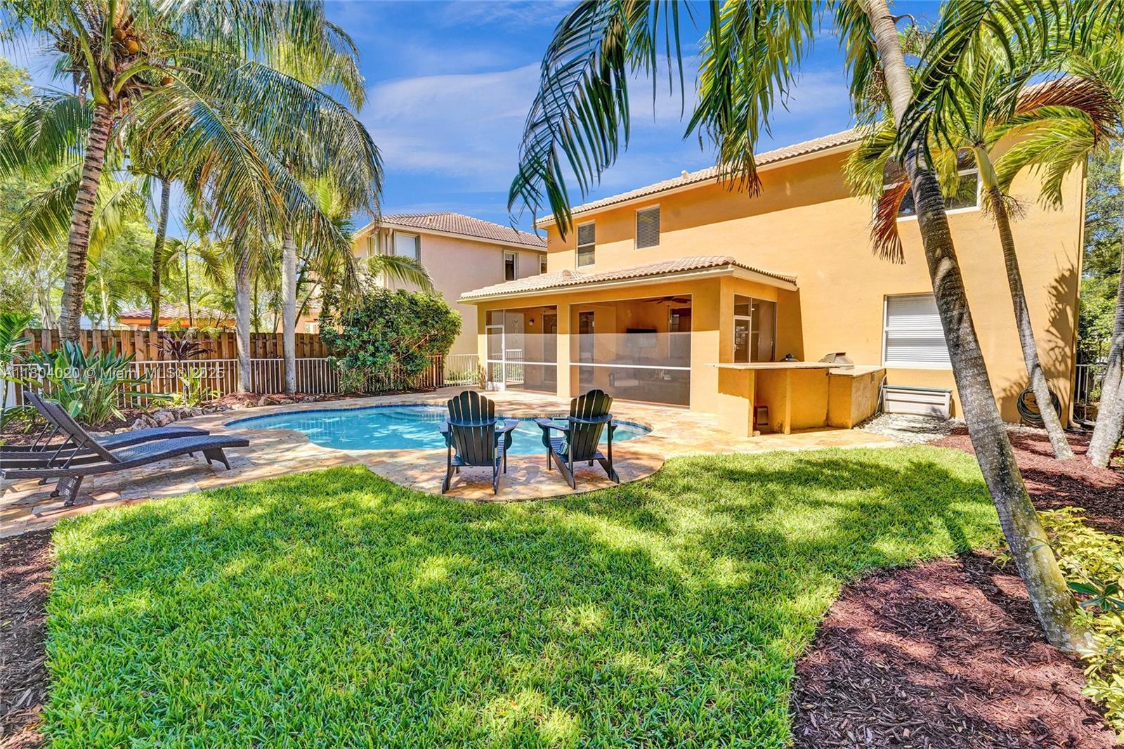 Drastic Price Drop! Motivated Seller—Ready to Make a Deal! Exciting & spacious 5-bed, 4-bath home with a popular layout! Includes a 1st-floor guest suite + full bath, upstairs loft (great for study/play), & laundry room. Enjoy tile floors, bamboo stairs, a large eat-in kitchen with 42" cabinets, new quartz counters & tons of storage. Tropical backyard oasis with a screened lanai, ceiling fans, heated pool, outdoor kitchen (gas grill + new fridge), sealed travertine deck, new lighting, and fenced yard. Additional features: smart irrigation, garage racks, new blinds & lighting. HOA includes gated access, fiber internet, cable, clubhouse, gym, 2 pools, sport courts & bus to Cypress Bay High & Falcon Cove Middle Schools. ** Quick occupancy, owners relocating and ready to move**