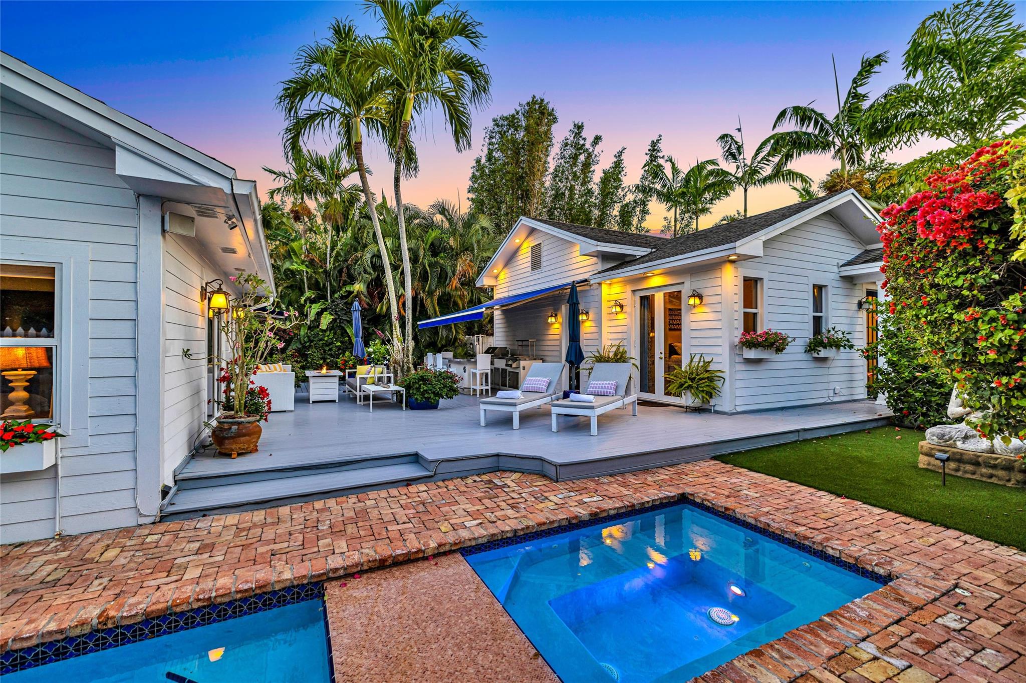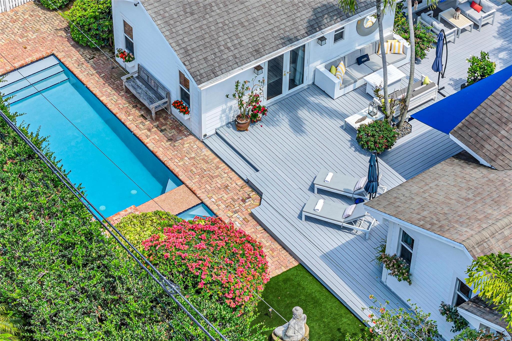 Victoria Park – Captivating Key West-style corner home on a lush oversized lot with 4–5 bedrooms, 3 baths, guest cottage, pool, spa, and 2-car garage. Meticulously maintained and thoughtfully updated, it blends timeless architectural charm—vaulted ceilings, espresso-stained oak floors, and a wood-burning fireplace—with modern comforts. The gourmet kitchen features crema marfil marble and Thermador appliances. A tranquil primary suite boasts a marble-clad bath. Impact windows/doors, composite decking, outdoor kitchen, motorized gate, and tropical landscaping complete this private retreat near Las Olas, Brightline, and the airport.
