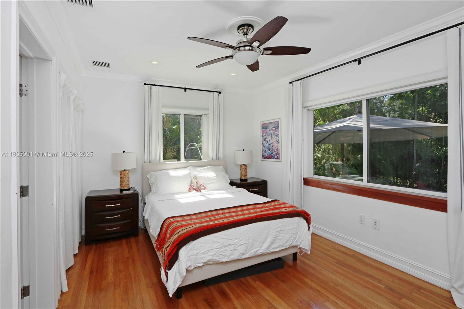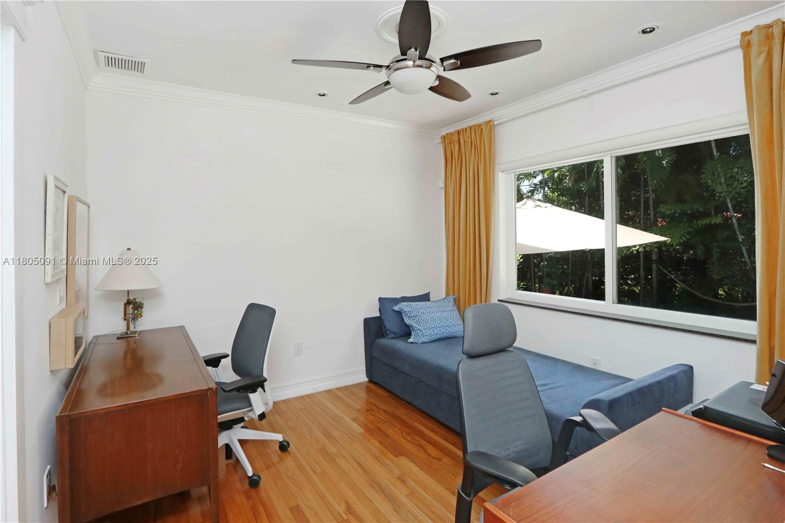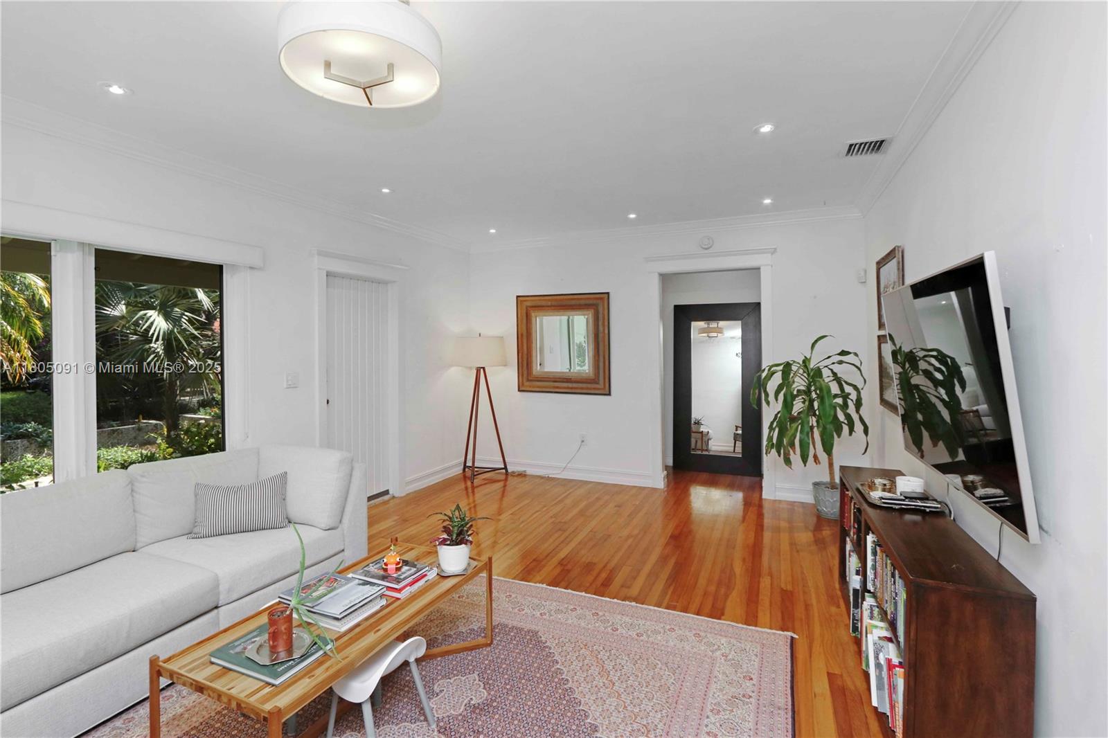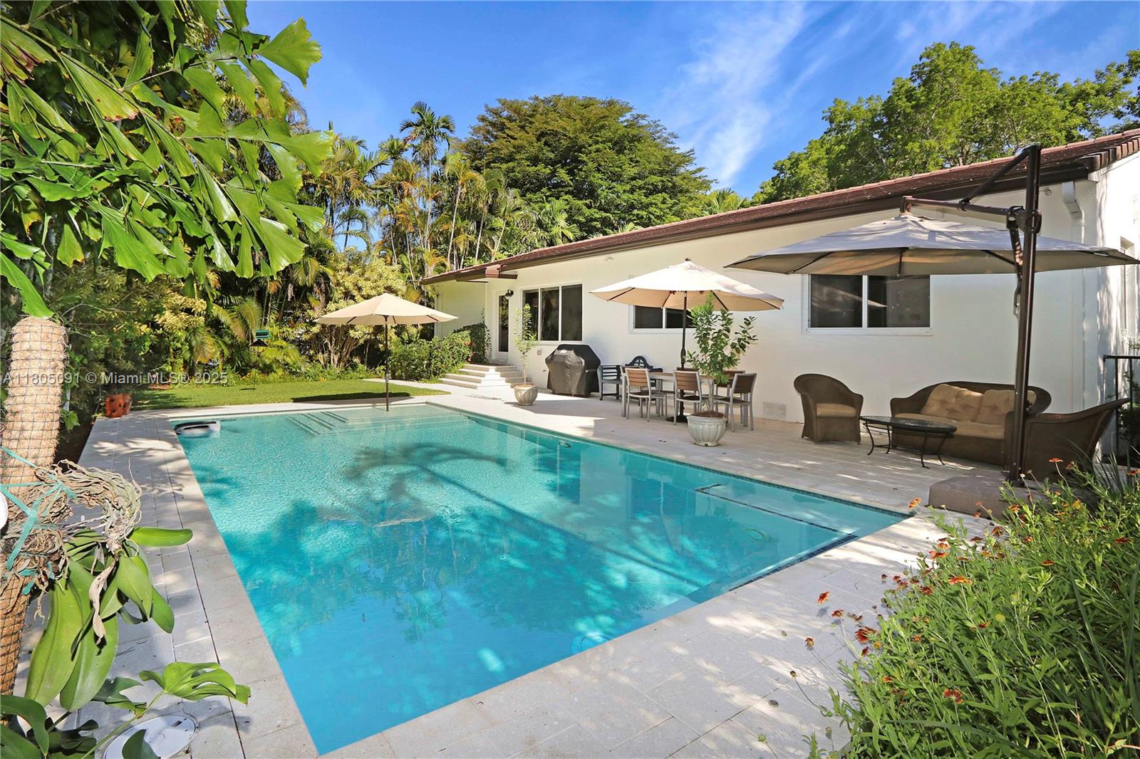 Move-in ready Coral Gables home with classic charm. Extensive high quality upgrades including a New Roof and Gutters (2023), Newer Air Conditioner (2021), UV Filter (2025), New Insulation (2025), Newer Septic Tank and Drain Field (2022) and a Saltwater Swimming Pool (2024). Original Hardwood Floors throughout with Impact Windows and Doors. The professionally designed gardens blend low maintenance native plants with lovely curb appeal. Located on a quiet tree-lined street close to the University of Miami and Coconut Grove.