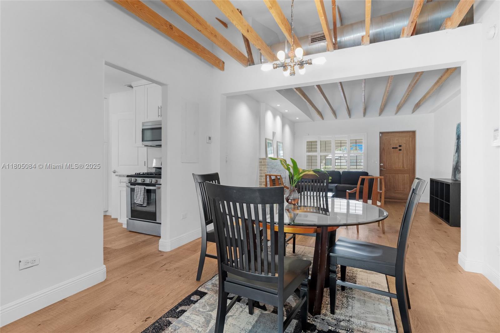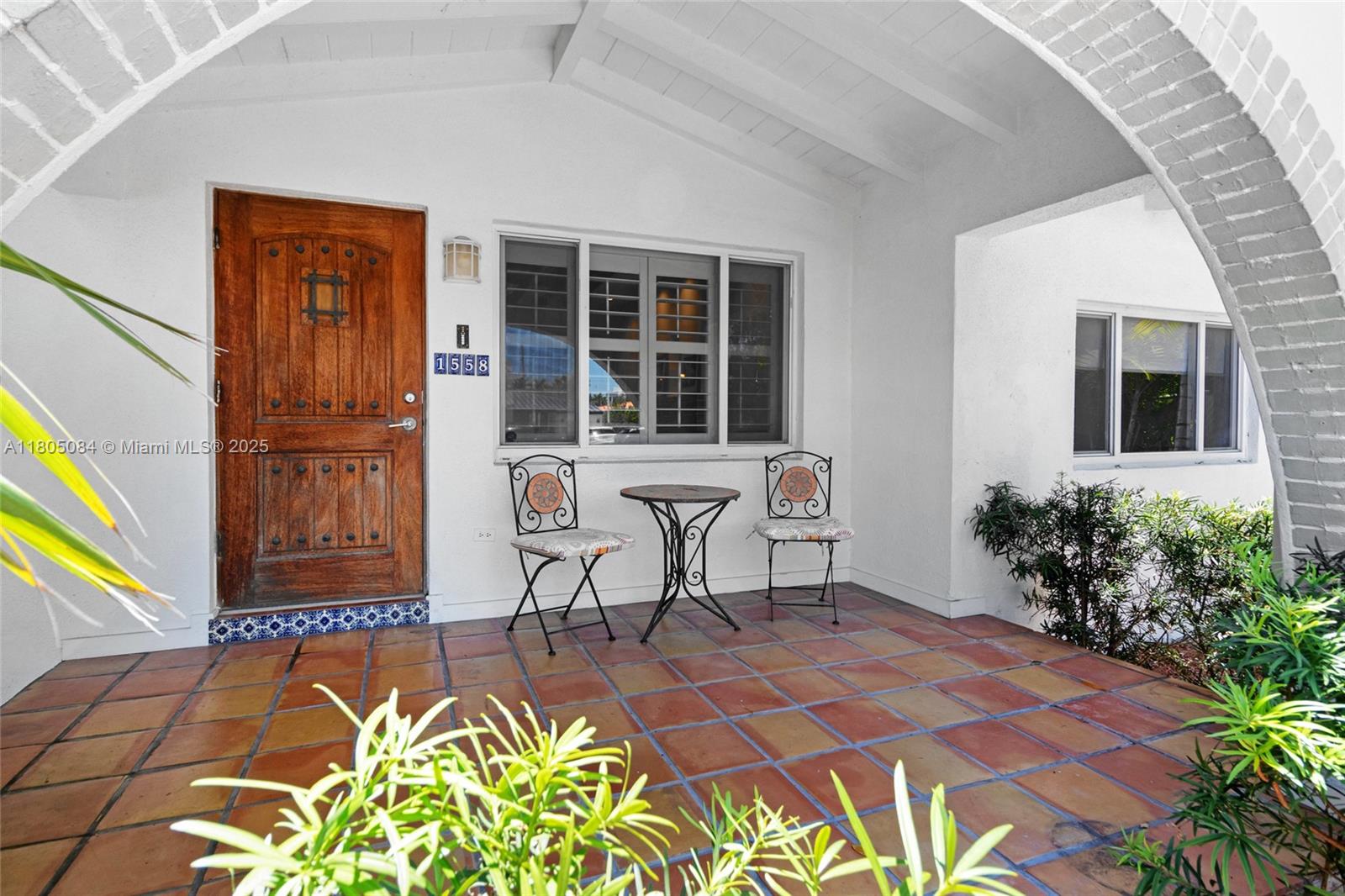 Pending - Backup offers being accepted. - This beautifully designed 2-bedroom, 1-bath home offers a perfect blend of charm and modern comfort. Step inside to soaring cathedral ceilings with exposed trusses that create an open, airy feel. The living space is ideal for relaxing or entertaining. Enjoy the character of Spanish tile on the welcoming front porch and spacious back patio, perfect for outdoor gatherings. The backyard features a pool, a private oasis for warm days. Whether you're lounging by the water or dining al fresco under the stars, this home is made for easy living. Don't miss this unique gem that combines architectural charm with resort-style amenities! S-tile Roof replaced in Dec 2019,