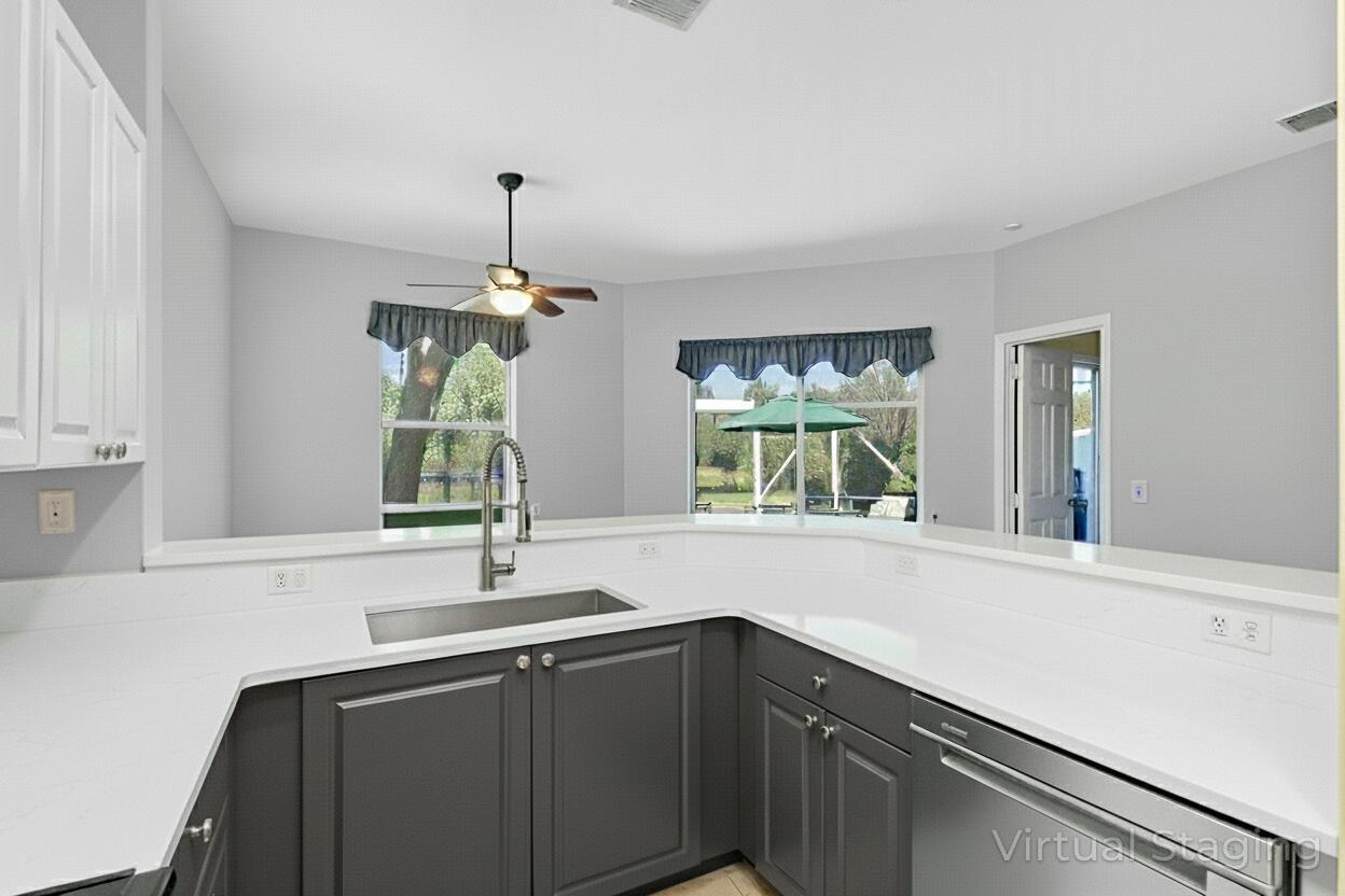 Looking to downsize into a super cute villa with awesome water views?!? It's ALL ABOUT the location with real estate and this home has it all! This model last sold for $550k with NO VIEW! Check out the NEW virtually staged pictures! Amazing what a little paint and furniture placement can do. Location! Location! Location! Open and spacious 3 bedroom or 2 bedroom + den villa w/ over 1,700 square feet and tons of natural light! Great room layout, high ceilings, and versatile floorplan. The great room and dining area are interchangeable. How would you use the space? NEW WATER HEATER! This home is tucked away, offering extra privacy and unbelievable water views! Enjoy your morning coffee or evening cocktail in your screened patio watching the Ibis birds flock to the trees....