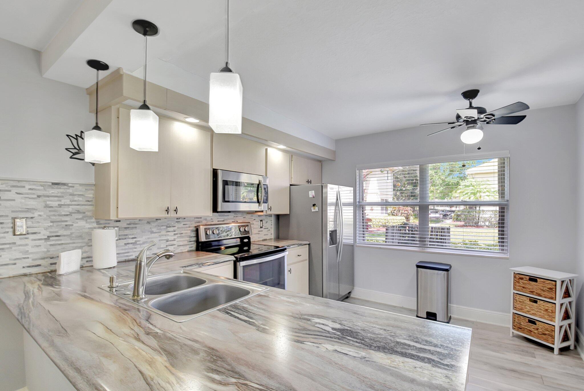 Discover this beautiful townhouse in the heart of Boynton Beach! This spacious 2-bedroom, 2.5-bath home offers a perfect blend of comfort and style. It features a eat in kitchen with stainless steel applainces,tile backsplash an French doors leading out to a bright an inviting covered patio that is perfect for outdoor dining or relaxing evenings. A convenient half-bath and laundry room downstairs enhance functionality. Tile throughout. Upstairs offers two generously sized bedrooms offer ample closet space and natural light. Ideally located just minutes from shopping, beaches, hospitals, and I-95--this home is a must-see!
