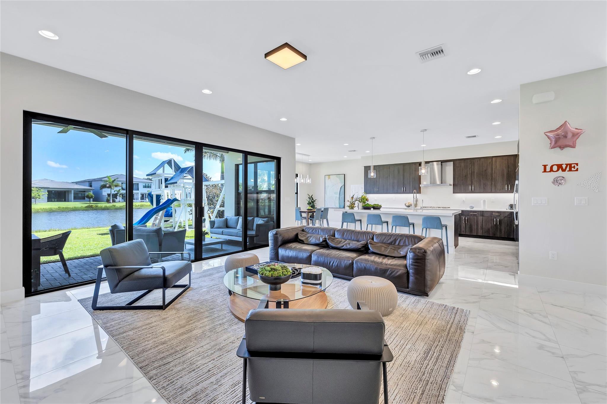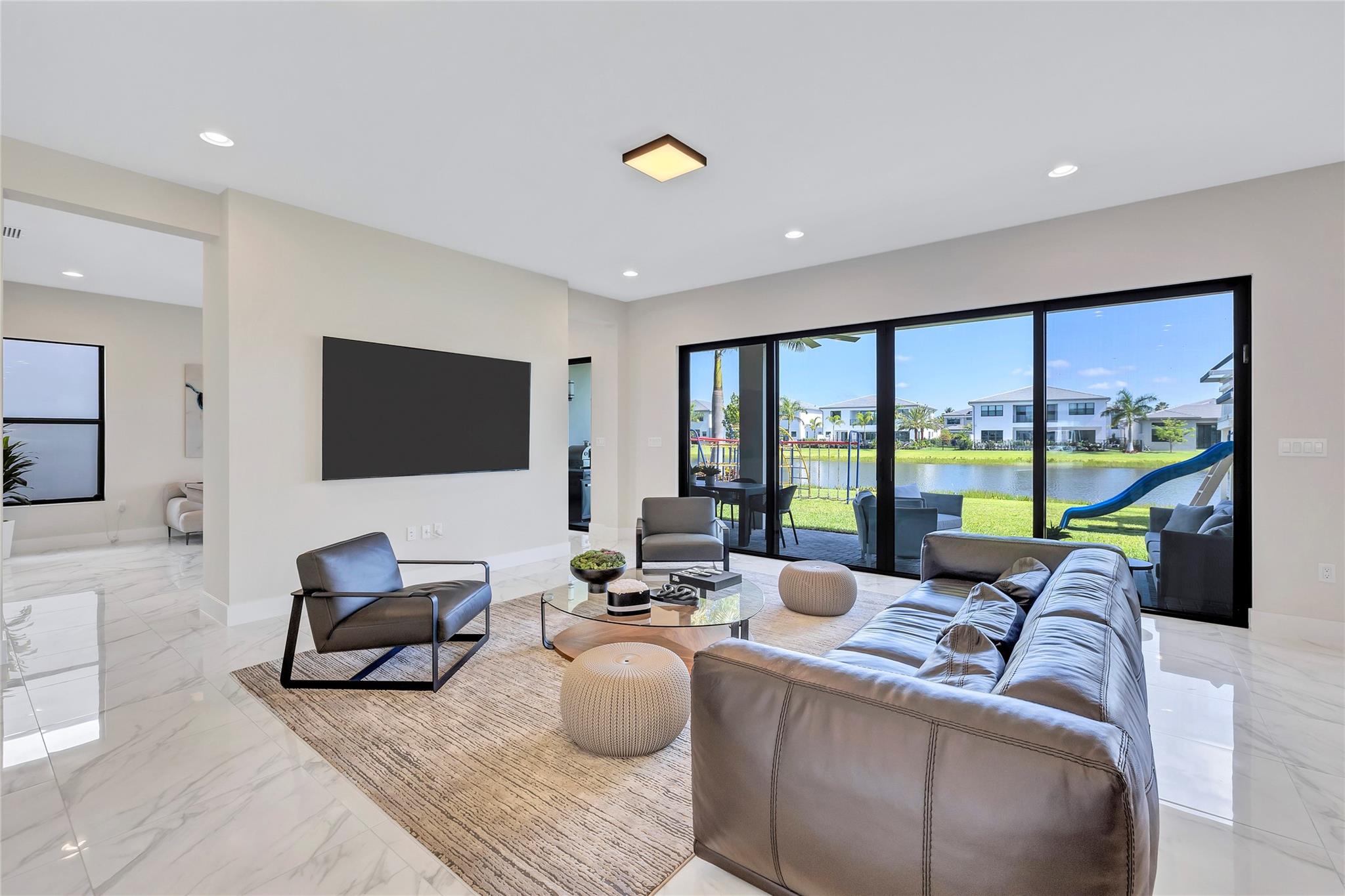 Price Improvement! It is not just a home it is a lifestyle! This Maldives (largest model in Lotus Palms) home is perfectly situated on a premium serene lakefront lot in a gated community. Inside, you will find 6 spacious bedrooms + office/den/game room/theatre & 6.5-bathroom home that also features a loft upstairs. This home features impact windows, 4 car garage and it is a natural gas community. The upgraded modern kitchen has state-of-the-art appliances and finishes. There are over 250k in options/upgrades in this home. You will also enjoy all the resort amenities in this 26,000 sq ft clubhouse including fitness center, yoga garden, splash pad, pool, pickelball, basketball and more. In the clubhouse dine at Crave & hang in The Lotus Palms Lounge.
