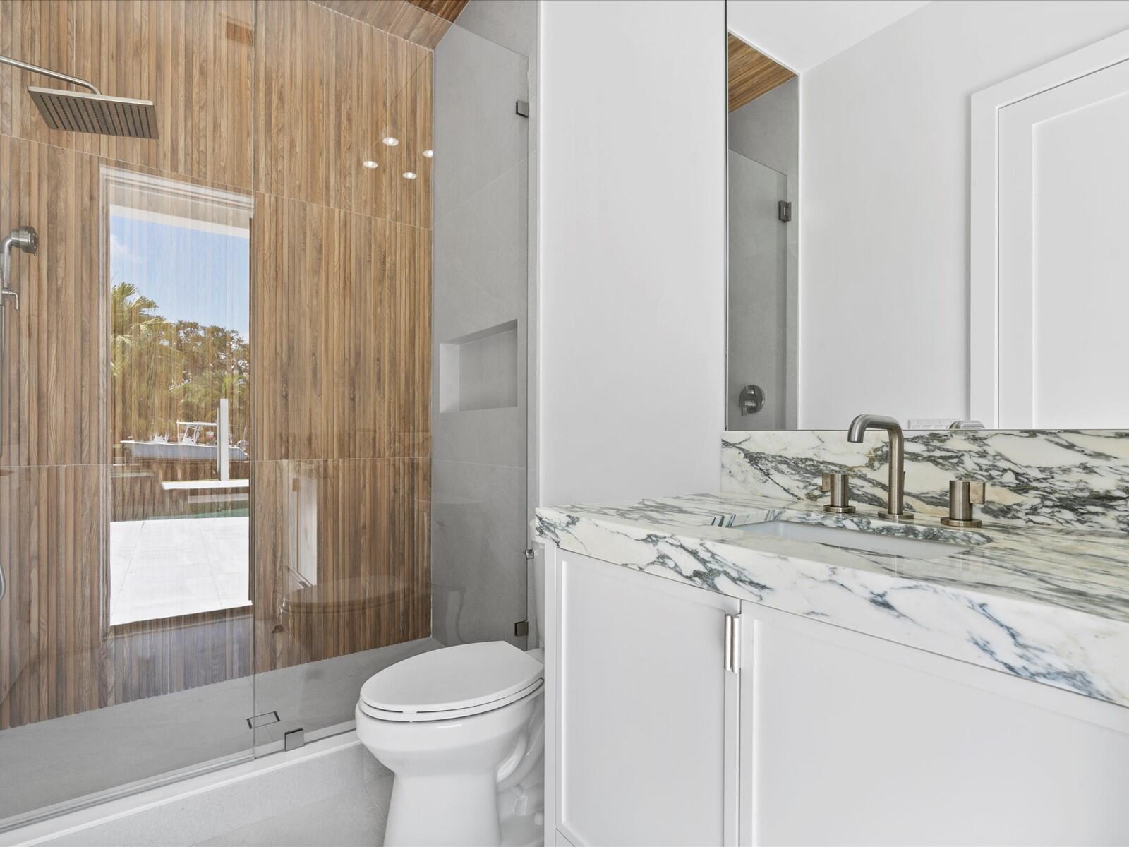 Introducing 8 Leeward Circle, a newly transfromed waterfront jewel that defines modern luxury in the coveted Village of Tequesta. Thoughtfully designed and impeccably finished in a modern coastal organic aesthetic, this five-bedroom, six-bath residence delivers sophisticated living along 60 feet of pristine waterfront with effortless ocean access.Beyond the sleek facade, step into interiors curated with a designer's eye: custom millwork, floor-to-ceiling glass, artisan lighting, rich marble surfaces, and a chef's kitchen anchored by an oversized island, hidden walk-in pantry, professional-grade appliances, and stunning natural stone. Every bedroom is en suite, offering elevated privacy and comfort for family and guests alike.The expansive primary suite is a sanctuary of its own,