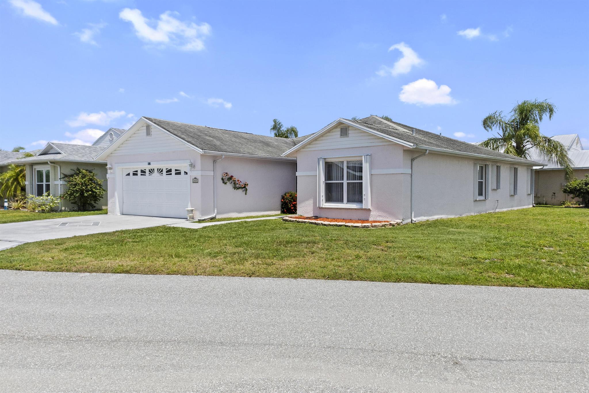 Welcome to the wonderful community of Spanish Lakes! This lovely, move-in ready home offers the perfect blend of comfort and Florida charm. Inside, you'll find three bedrooms and 2 bathrooms, along with a convenient two-car garage. The highlight is an amazing Florida room, ideal for relaxing and entertaining guests.This home also features practical updates, including a new AC unit installed in 2024 and a newer hot water heater. It's also available partially furnished for an easy transition. For added peace of mind, accordion storm shutters are installed throughout. This property is on a land lease within an active community, offering resort-like amenities in a beautiful and quiet setting. The monthly lot rent is an attractive $595.86. Spanish Lakes boasts a fantastic location, close to a