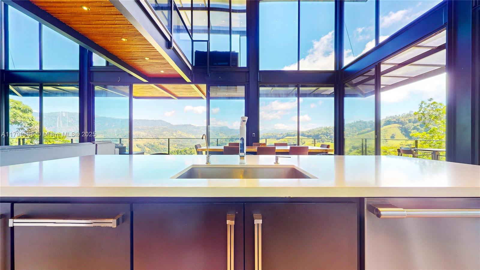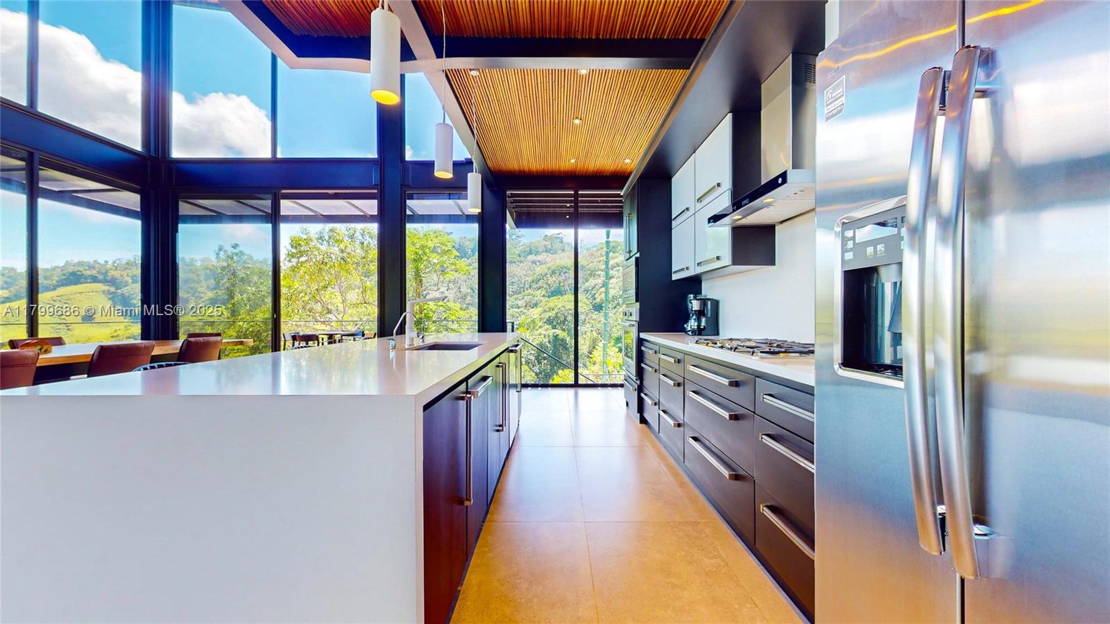 Escape to a world of peaceful serenity with this unique Costa Rican property nestled in the upscale community of Escaleras. This modern, multi-level home blends contemporary architecture with the natural surroundings, creating a private oasis that is ideal for luxury living and boutique rental opportunities. The four-level structure is thoughtfully designed into the hillside, featuring expansive three-sided glass walls, a glass-roofed carport, and a party-sized pool deck that takes advantage of the incredible views. With a design that blends industrial style and natural warmth, this home is true architectural gem. Inside, wood finishes, granite countertops, and stone, wood, and bamboo inlays create a sense of refined elegance. Situated just 10 mins from the beaches of Dominical.