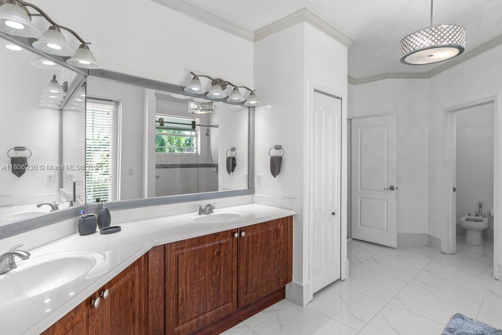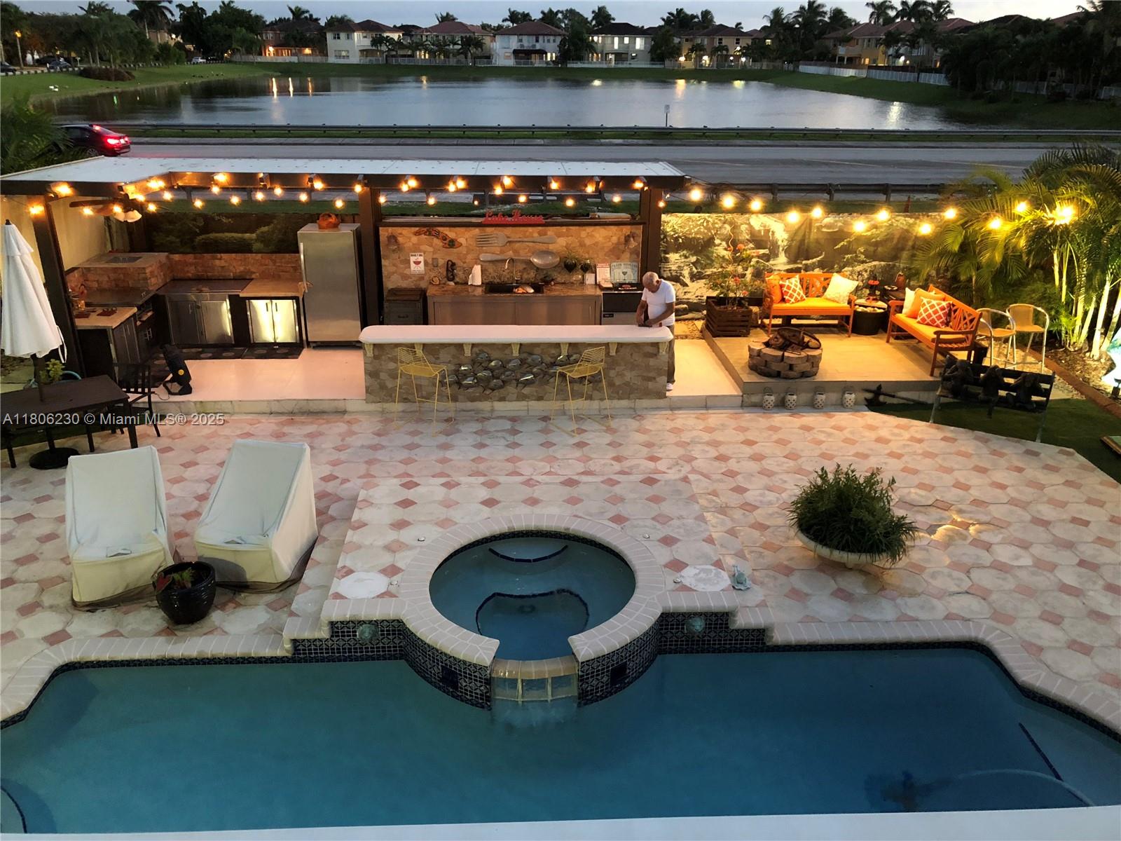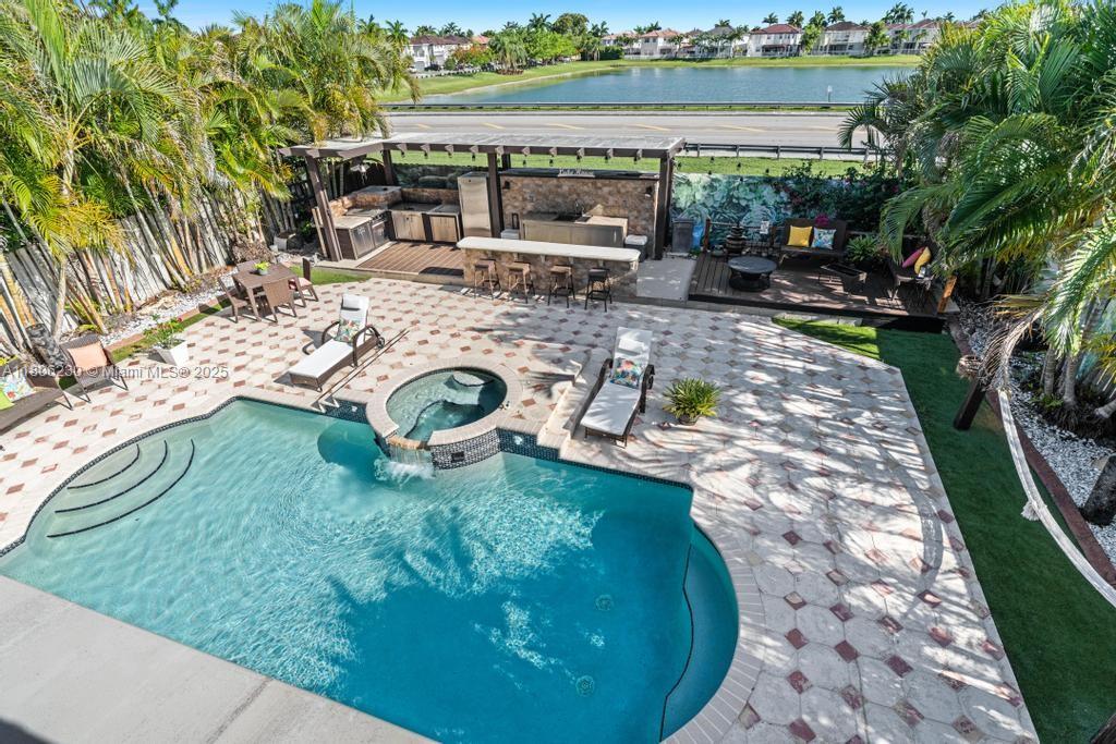 Pictures coming soon!! This home offers a unique layout with 2 master suites, one on the 1st floor and a larger one on the second floor, providing privacy for families or guests. It features 4 beds and 4 baths, while the converted garage is a separate 1-bed, 1-bath suite. The outdoor space is a true oasis, with a saltwater pool surrounded by elegant travertine flooring. An outdoor kitchen under a sleek aluminum pergola includes a grill, gas stove, and a newly added deck, creating the perfect setting for entertaining friends. The home's thoughtful design consists of a standout feature where all second-floor bedrooms can access a balcony with serene lake views. The master bathroom has been remodeled with high-end finishes, enhancing the home's luxurious feel. Make your appointment today!