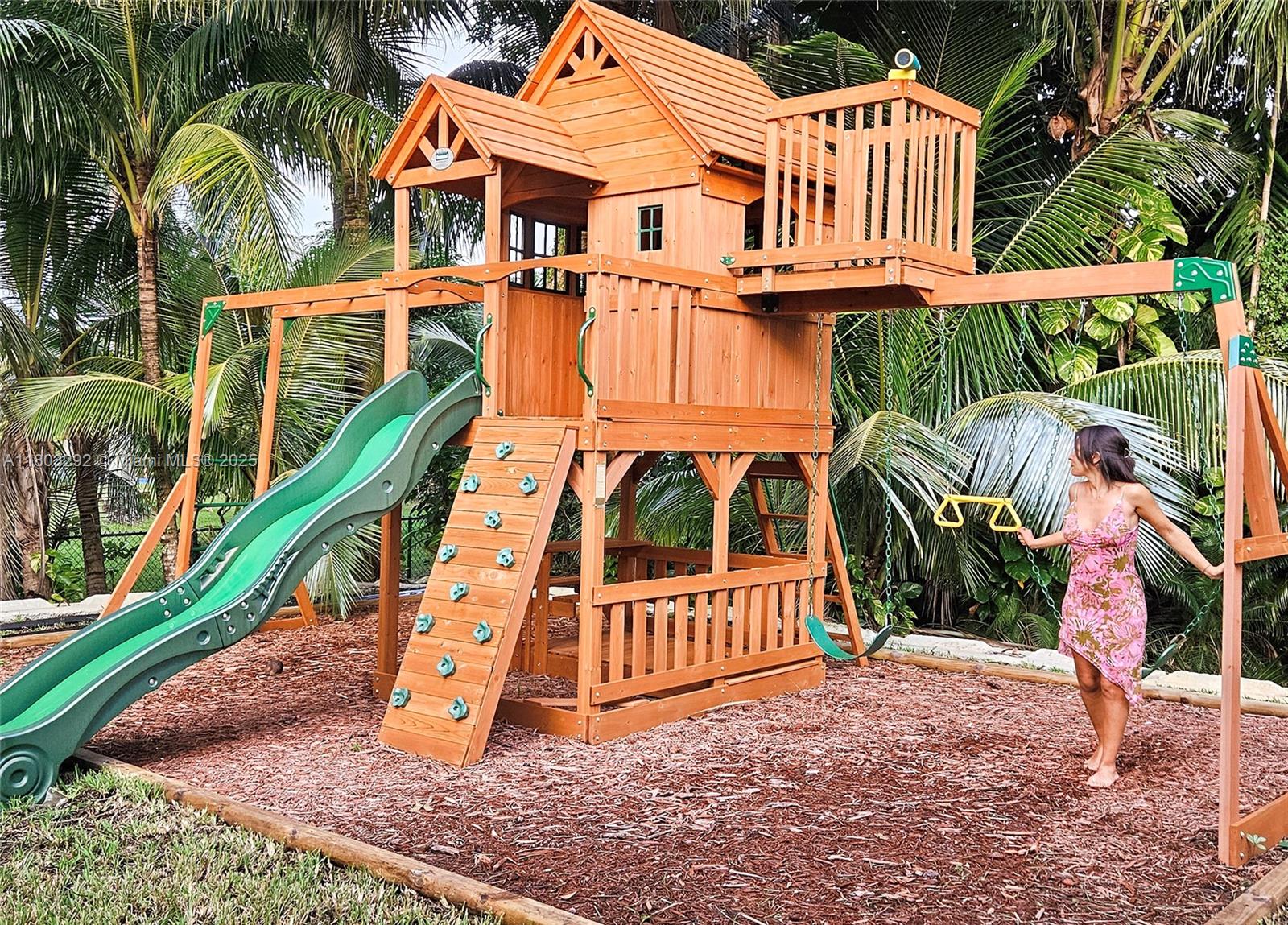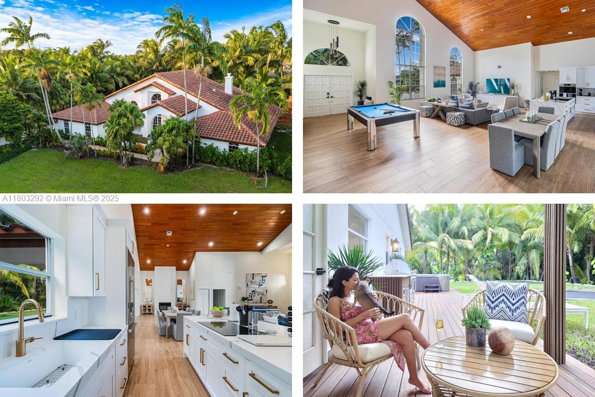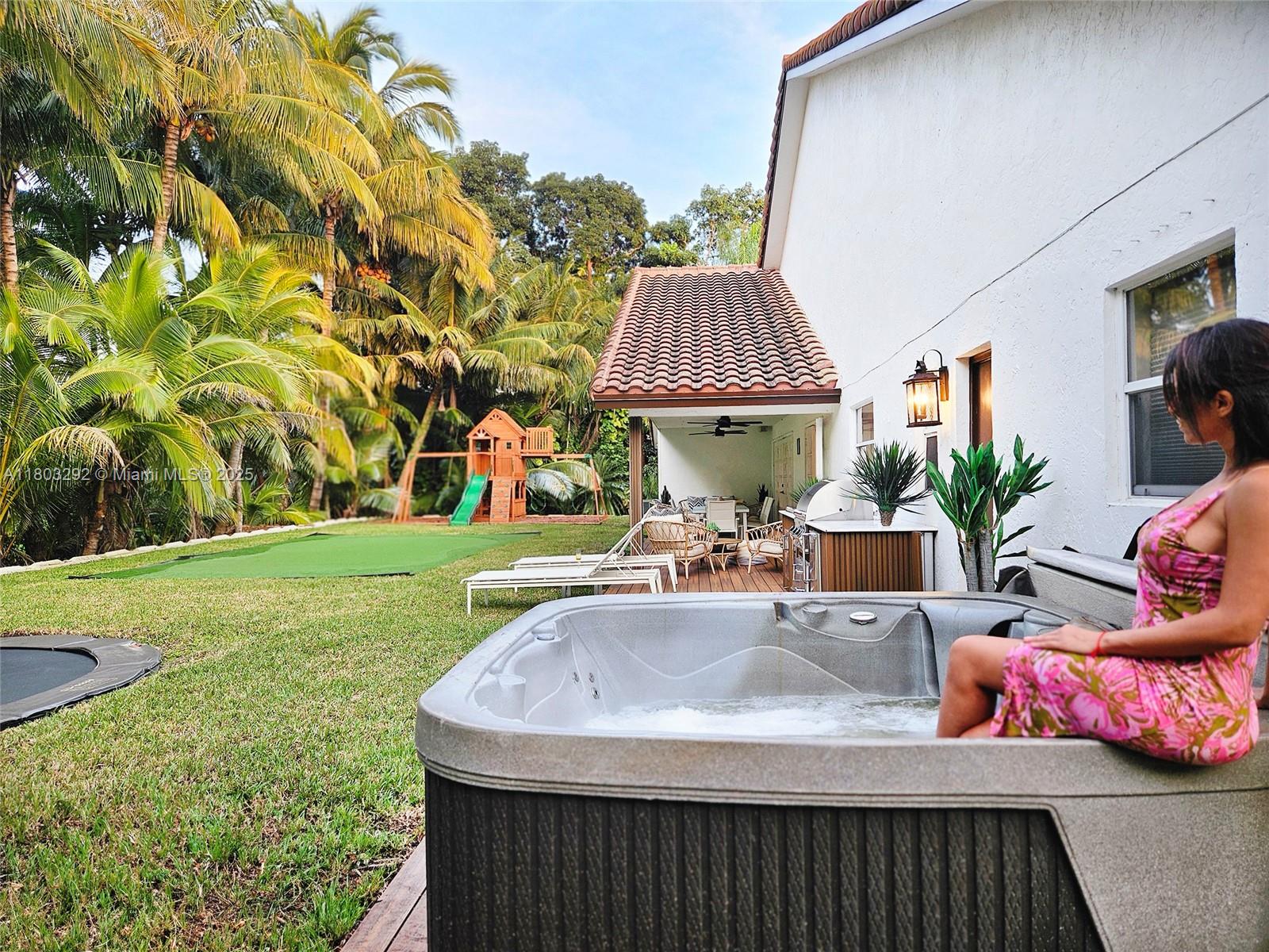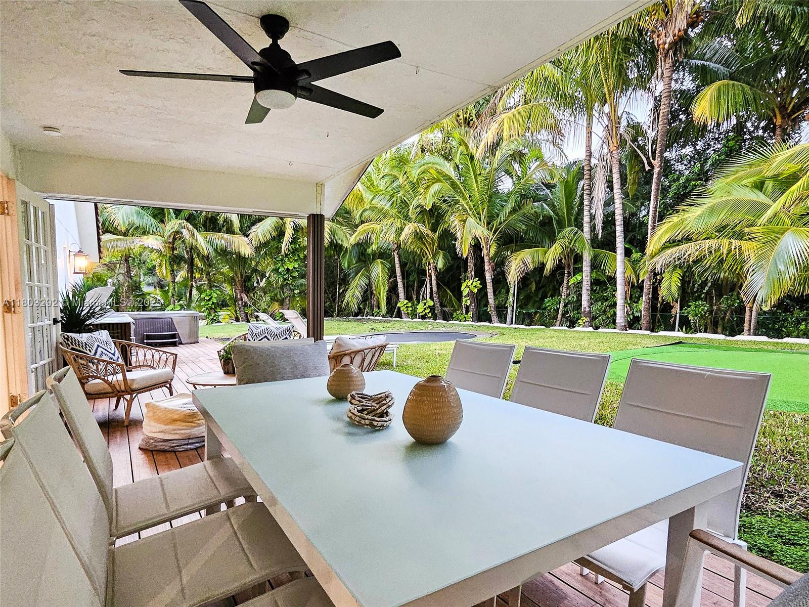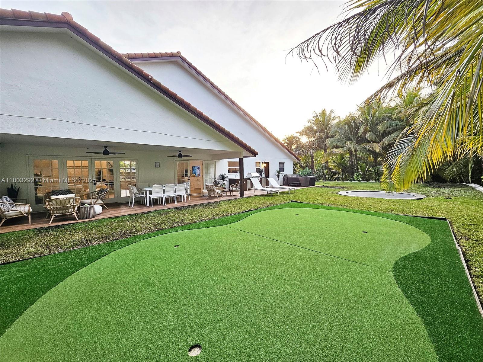 Rare MASSIVE Double corner Lot in Plantation Acres! Exquisite contemporary style 2022-remodeled 4-bed, 3-bath. Open floor plan with soaring cathedral ceilings, quartz countertops, Dacor luxury appliances, and sleek pantry. Modern bathrooms, chic walk-in closets, and A/C laundry. This kid's paradise home has an inground trampoline, fenced jacuzzi, golf green practice and huge kids’ playhouse. Build a guest house or pool—unique lot size banned in new builds!! Proven Airbnb income with 5-star superhost management and vacation rental license included!! Professionally Stagged Furniture included!! Near elite American Heritage School. Combine the joys of nature with vast green spaces and magnificent peacocks, horses, and goats living nearby, while enjoying a luxurious and comfortable lifestyle.