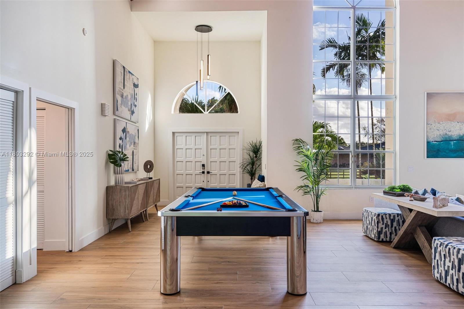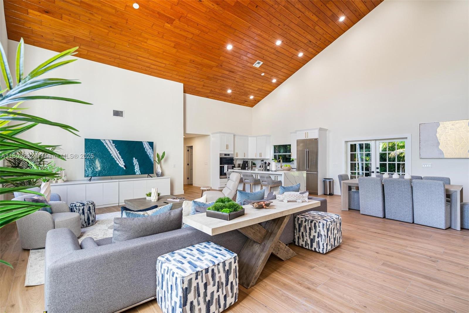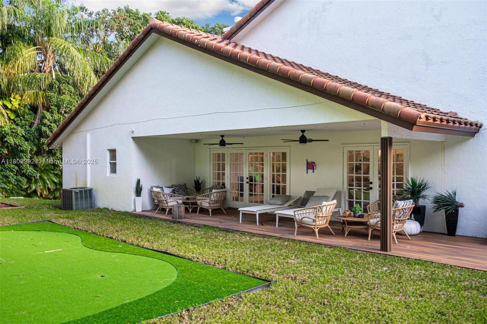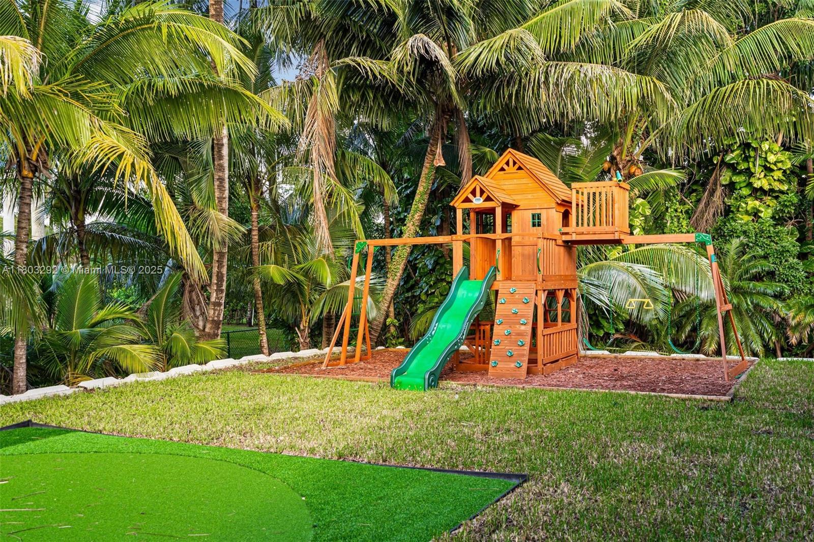Rare MASSIVE Double corner Lot in Plantation Acres! Exquisite contemporary style 2022-remodeled 4-bed, 3-bath. Open floor plan with soaring cathedral ceilings, quartz countertops, Dacor luxury appliances, and sleek pantry. Modern bathrooms, chic walk-in closets, and A/C laundry. This kid's paradise home has an inground trampoline, fenced jacuzzi, golf green practice and huge kids’ playhouse. Build a guest house or pool—unique lot size banned in new builds!! Proven Airbnb income with 5-star superhost management and vacation rental license included!! Professionally Stagged Furniture included!! Near elite American Heritage School. Combine the joys of nature with vast green spaces and magnificent peacocks, horses, and goats living nearby, while enjoying a luxurious and comfortable lifestyle.