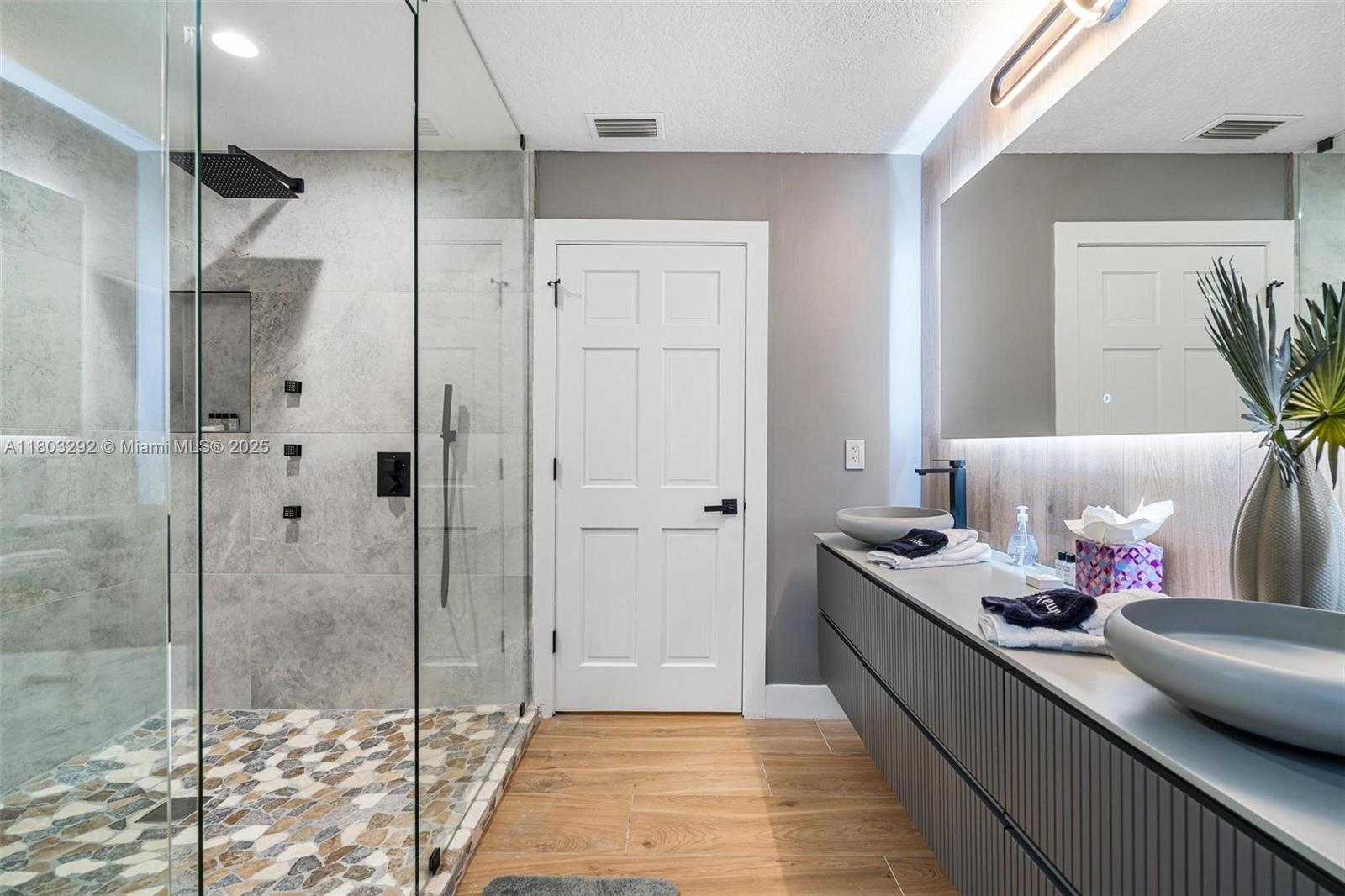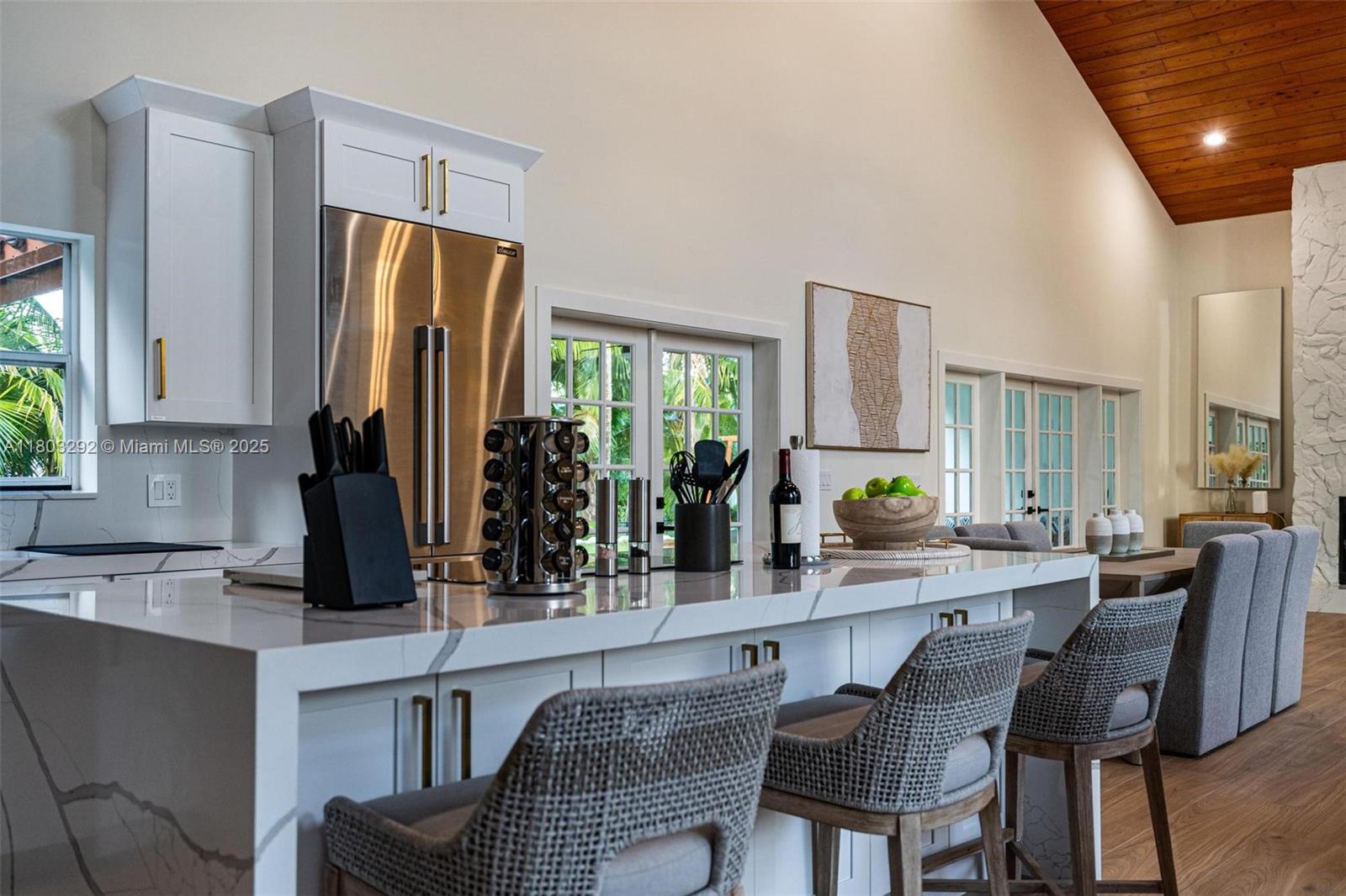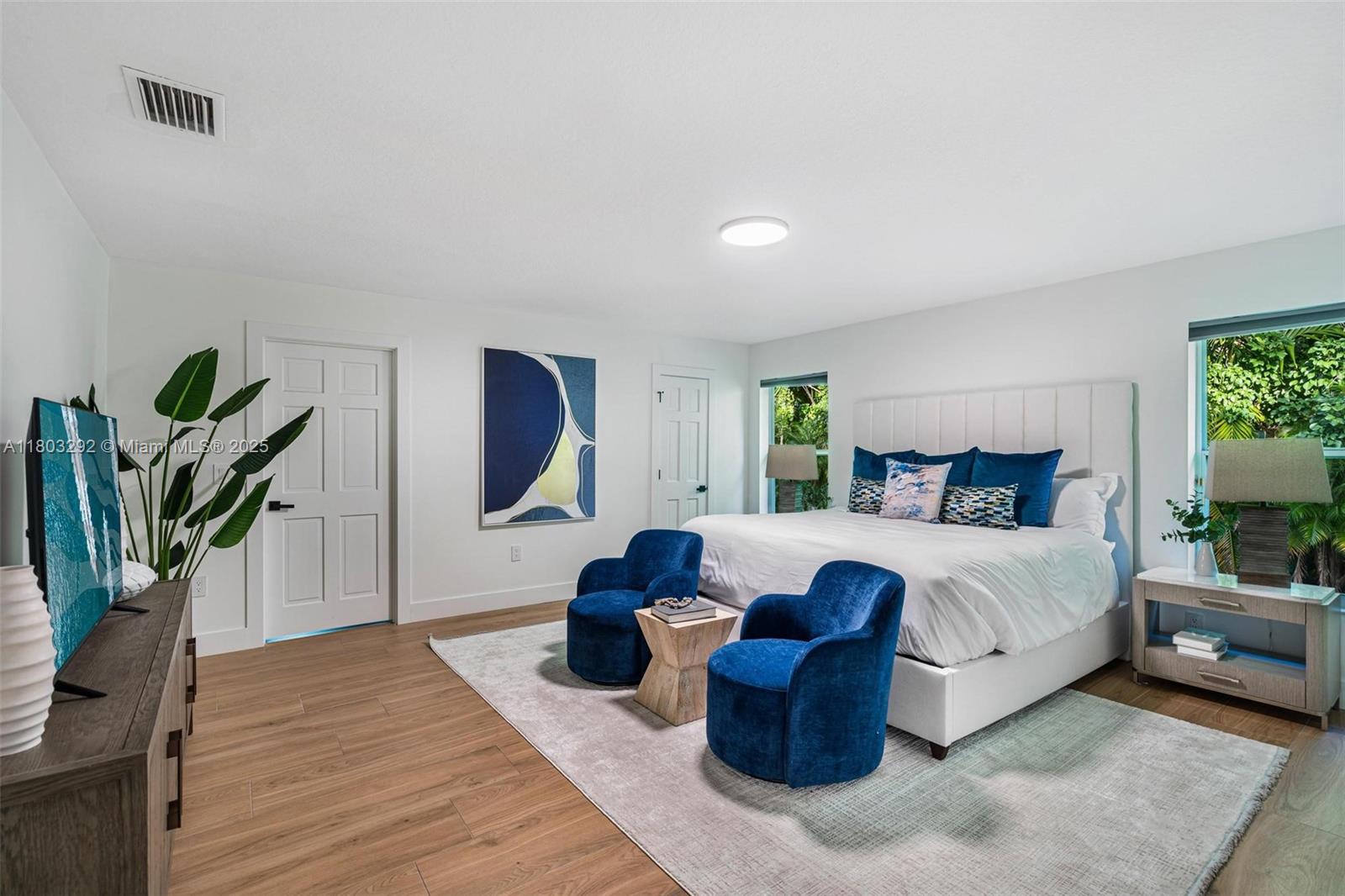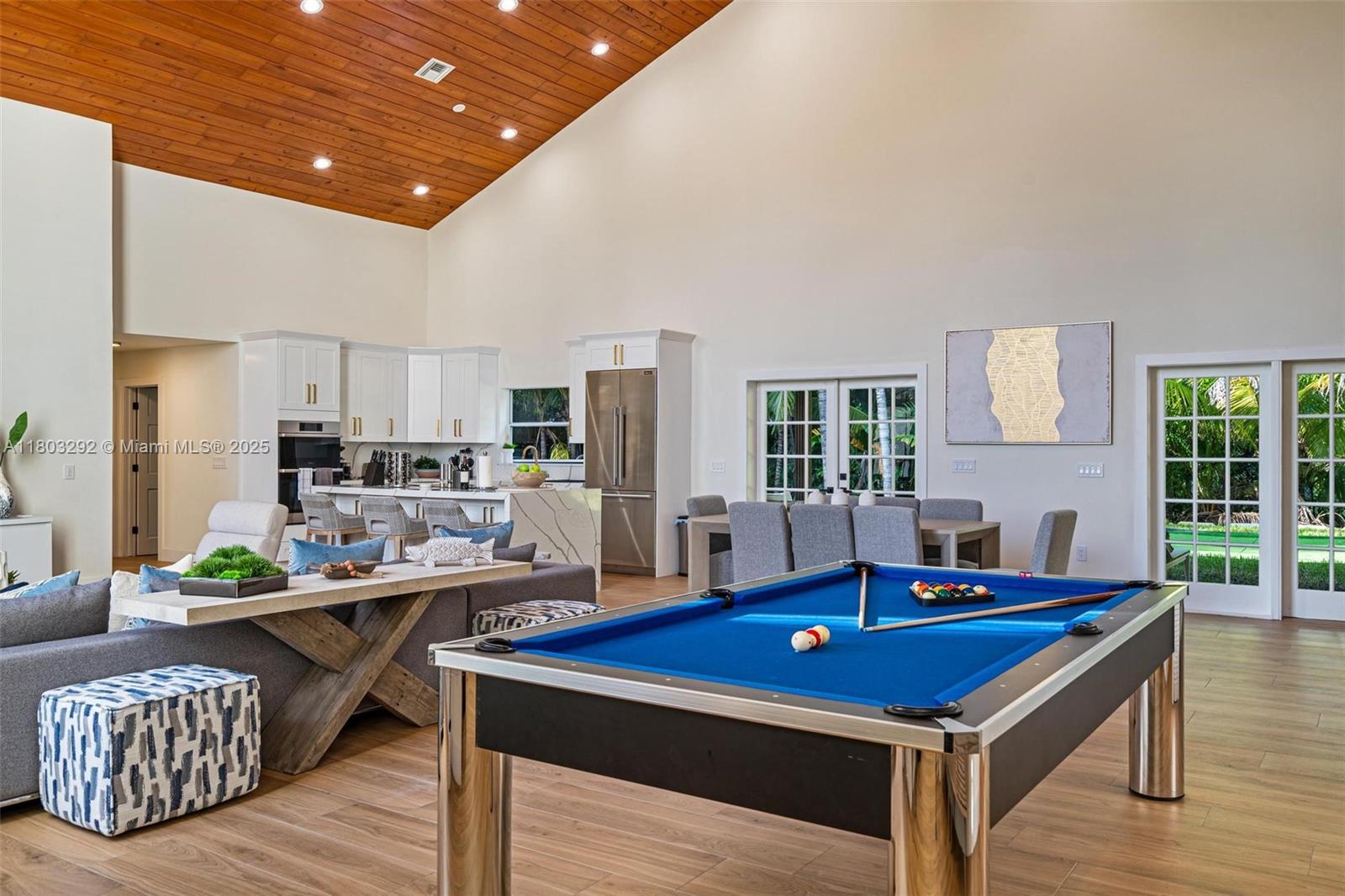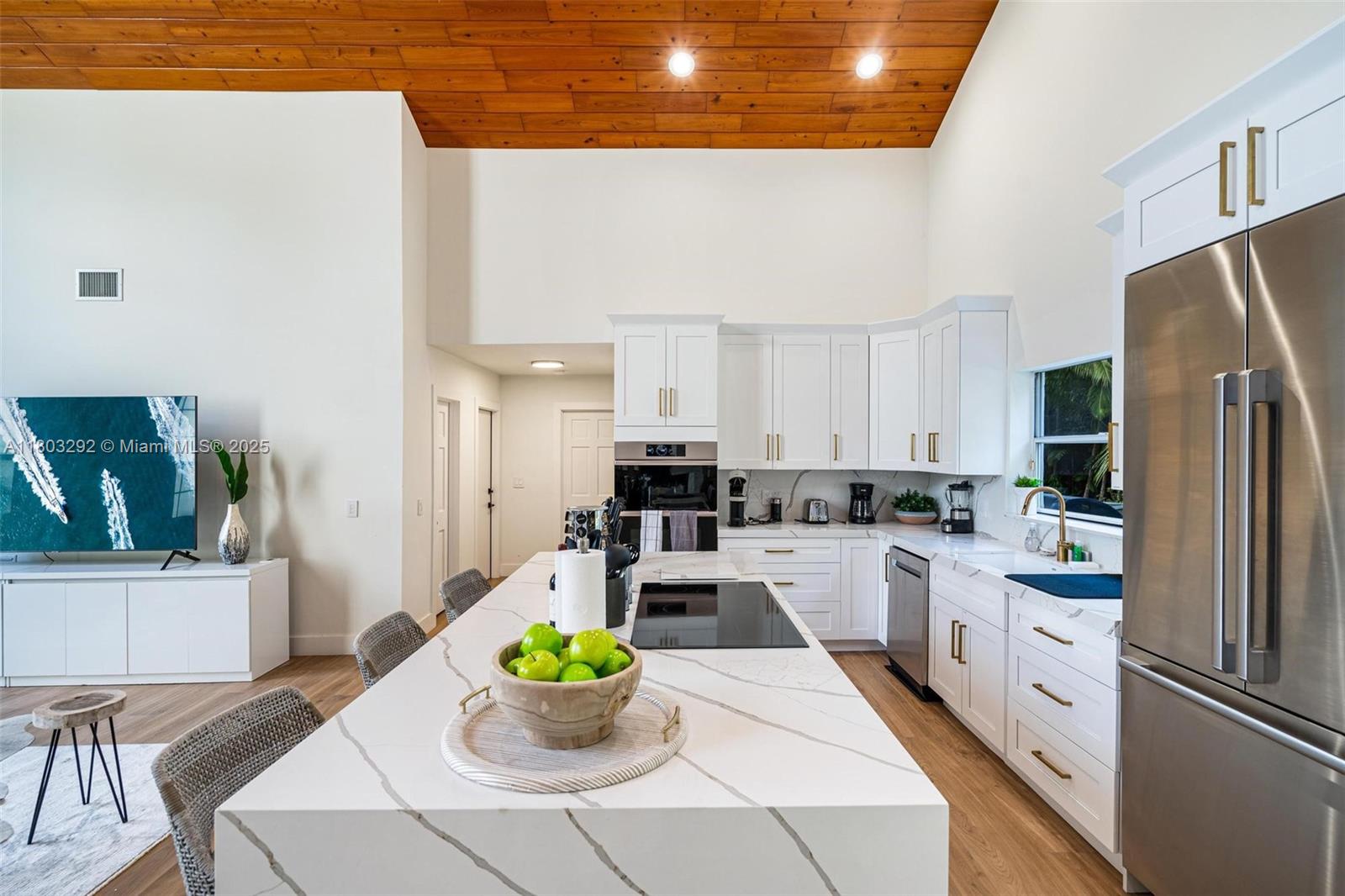 Rare MASSIVE Double corner Lot in Plantation Acres! Exquisite contemporary style 2022-remodeled 4-bed, 3-bath. Open floor plan with soaring cathedral ceilings, quartz countertops, Dacor luxury appliances, and sleek pantry. Modern bathrooms, chic walk-in closets, and A/C laundry. This kid's paradise home has an inground trampoline, fenced jacuzzi, golf green practice and huge kids’ playhouse. Build a guest house or pool—unique lot size banned in new builds!! Proven Airbnb income with 5-star superhost management and vacation rental license included!! Professionally Stagged Furniture included!! Near elite American Heritage School. Combine the joys of nature with vast green spaces and magnificent peacocks, horses, and goats living nearby, while enjoying a luxurious and comfortable lifestyle.