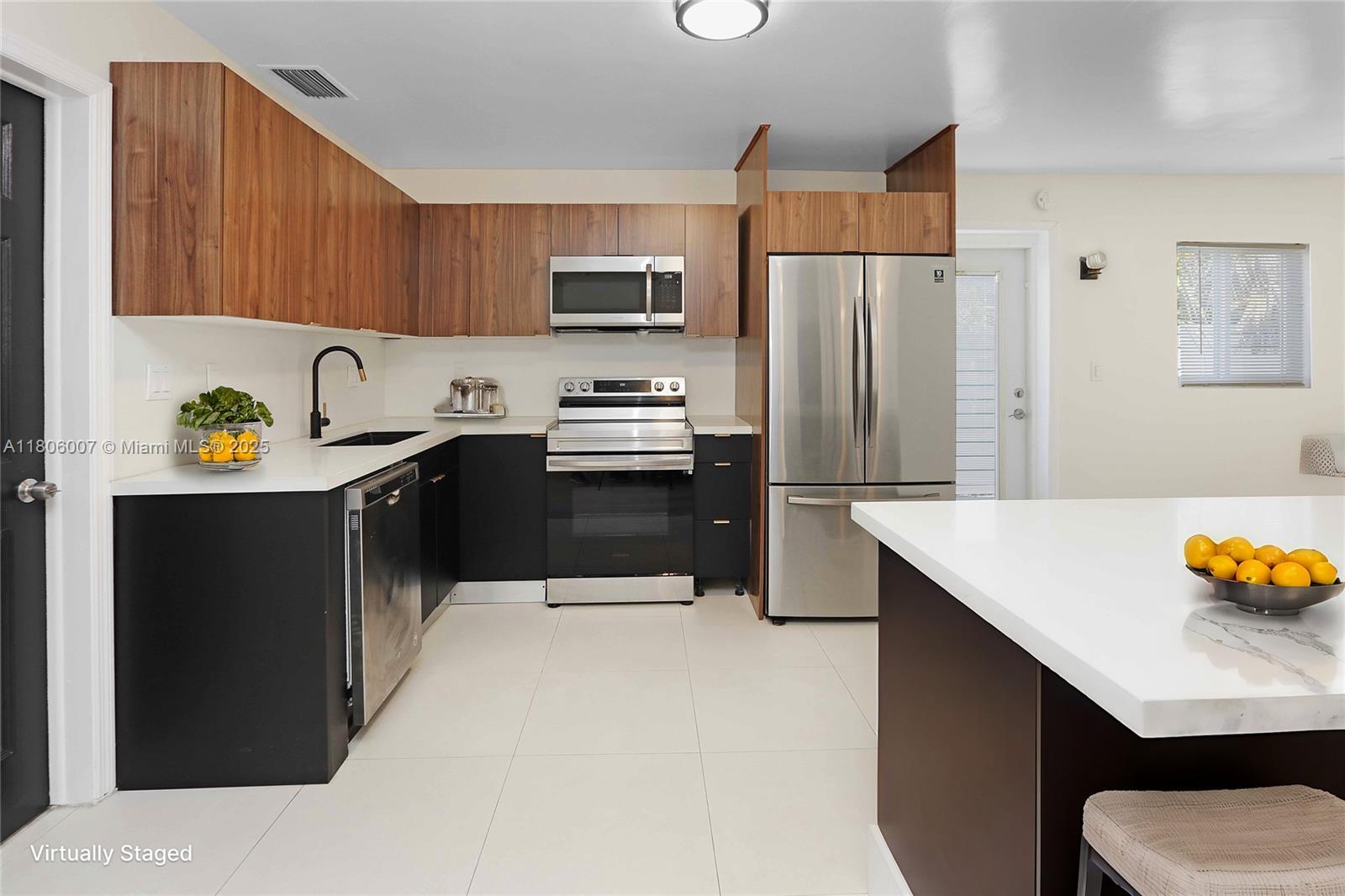 Beautiful 3-bed, 2-bath home with recent upgrades just minutes from Publix, shops, and Hollywood/Ft. Lauderdale Airport! Featuring impact windows, new flooring, fresh paint, and updated electric, this home is move-in ready. The spacious primary suite offers patio access and a luxurious marble-tiled bath with a rain shower. The kitchen with an eat-in island shines with quartz countertops, stainless steel appliances, and a pass-through to the formal dining room. Outside, enjoy a large fenced backyard with a Jacuzzi tub, covered patio, and room for a pool, perfect for entertaining and relaxing in your own privacy. Large circular driveway and 1 car garage for added space and storage.