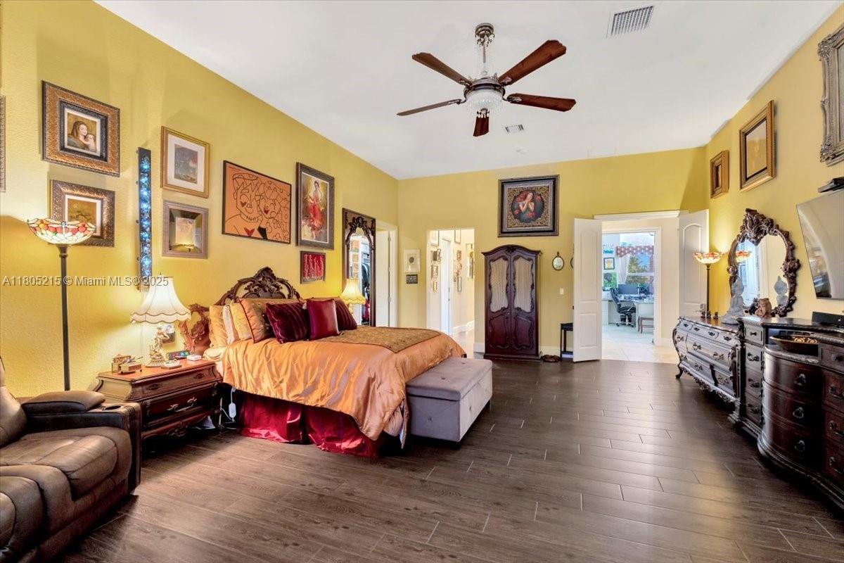 Custom-built estate with 6 beds, 4 full & 2 half baths in the main home, plus a 1-bed, 1-bath guest house with full kitchen and great room. Interior features include volume ceilings, split bedroom plan, office with built-ins, and a luxurious master suite with fitness room, huge walk-in closets, and spa-like bath with Neptune tub, large shower, double sinks, and bidet. Gourmet kitchen boasts top-tier appliances, granite counters, wood cabinetry, and breakfast bar. South wing has 5 beds, 3 baths (1 en-suite). Large laundry leads to 3-car garage. Exterior offers heated pool/spa, electric gates, porte-cochère, RV parking, 600-gal gas tank, whole-house generator, and circular drive. A welcoming open front porch area leads you in to a home offering so much. Horses are allowed.