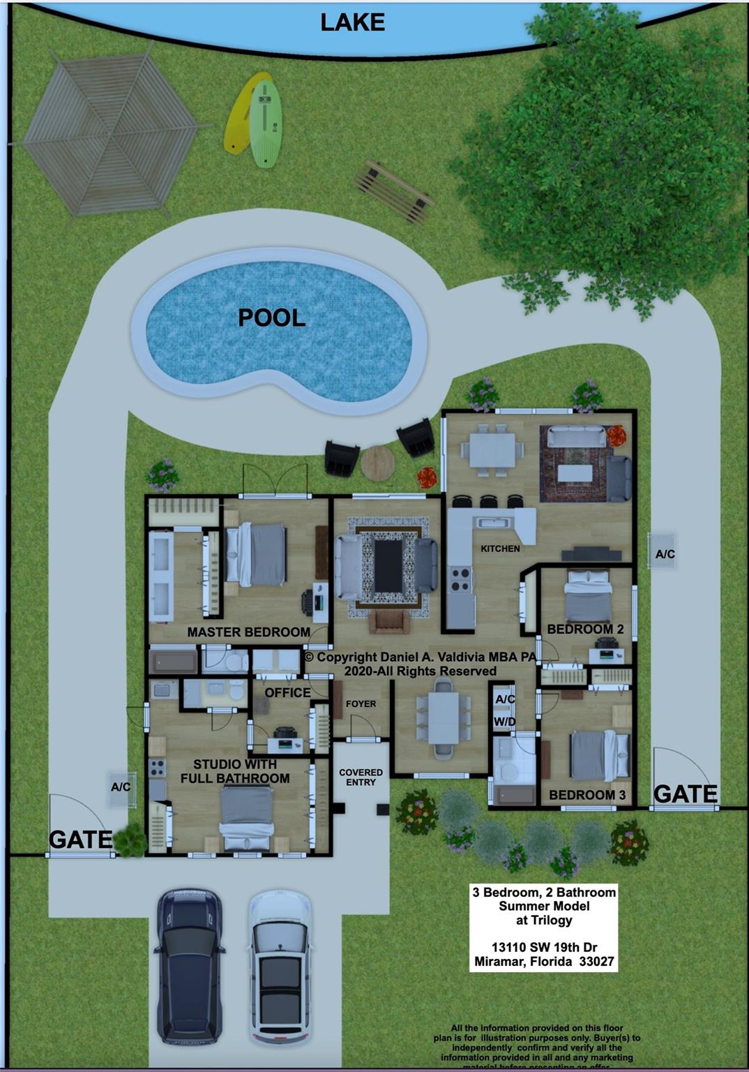 Beautiful one-story, three-bedroom/ two-bathroom lake & pool view one story single home in Trilogy in West Miramar. Supe low HOA fees of $66/month. New roof. Spacious, open floor-plan layout. Family room overlooking lake and pool with breakfast area. High ceilings, and tile throughout the entire house. Houses in this community do not last, don’t let this one slip away. Close to everything you will ever need. New megamall and entertainment complex American Dream Miami, will be only a few miles away.