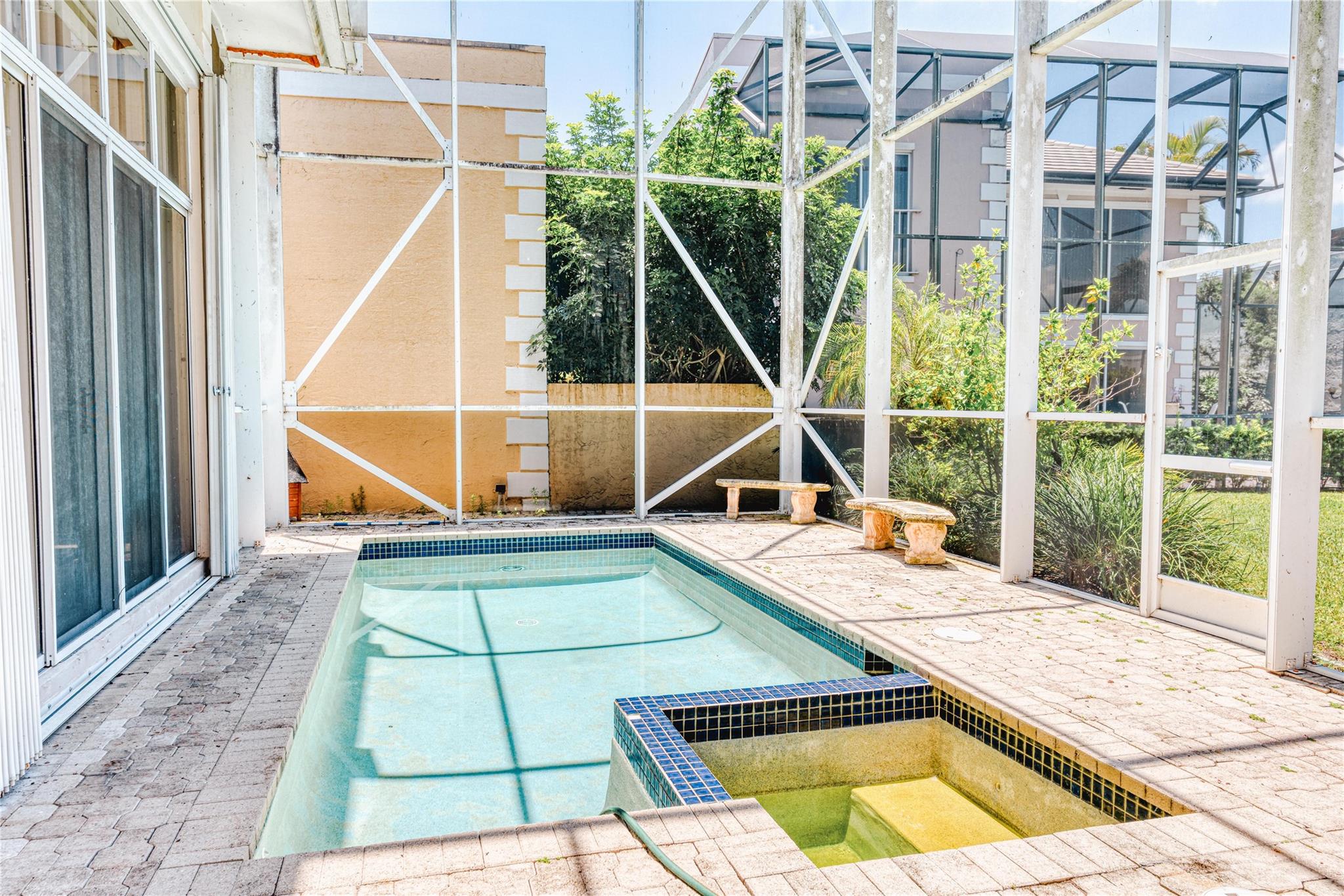 Welcome to this beautifully updated 4-bedroom, 3-bathroom home offering 2,646 square feet of living space, thoughtfully designed for comfort, style, and functionality. Nestled in a tranquil setting with water views, this property features a screened-in pool—perfect for relaxing or entertaining year-round. Enjoy energy efficiency with a 2021 AC unit, newer solar panels, and a tankless water heater. The home's unique layout provides excellent privacy, with two bedrooms and a full bathroom tucked away upstairs in a stunning loft area, complete with new tile flooring. Downstairs, you'll find an open living space, ideal for both quiet family time and entertaining guests. Whether you’re enjoying the pool or taking in water views, this home delivers the Florida lifestyle you’ve been dreaming of!