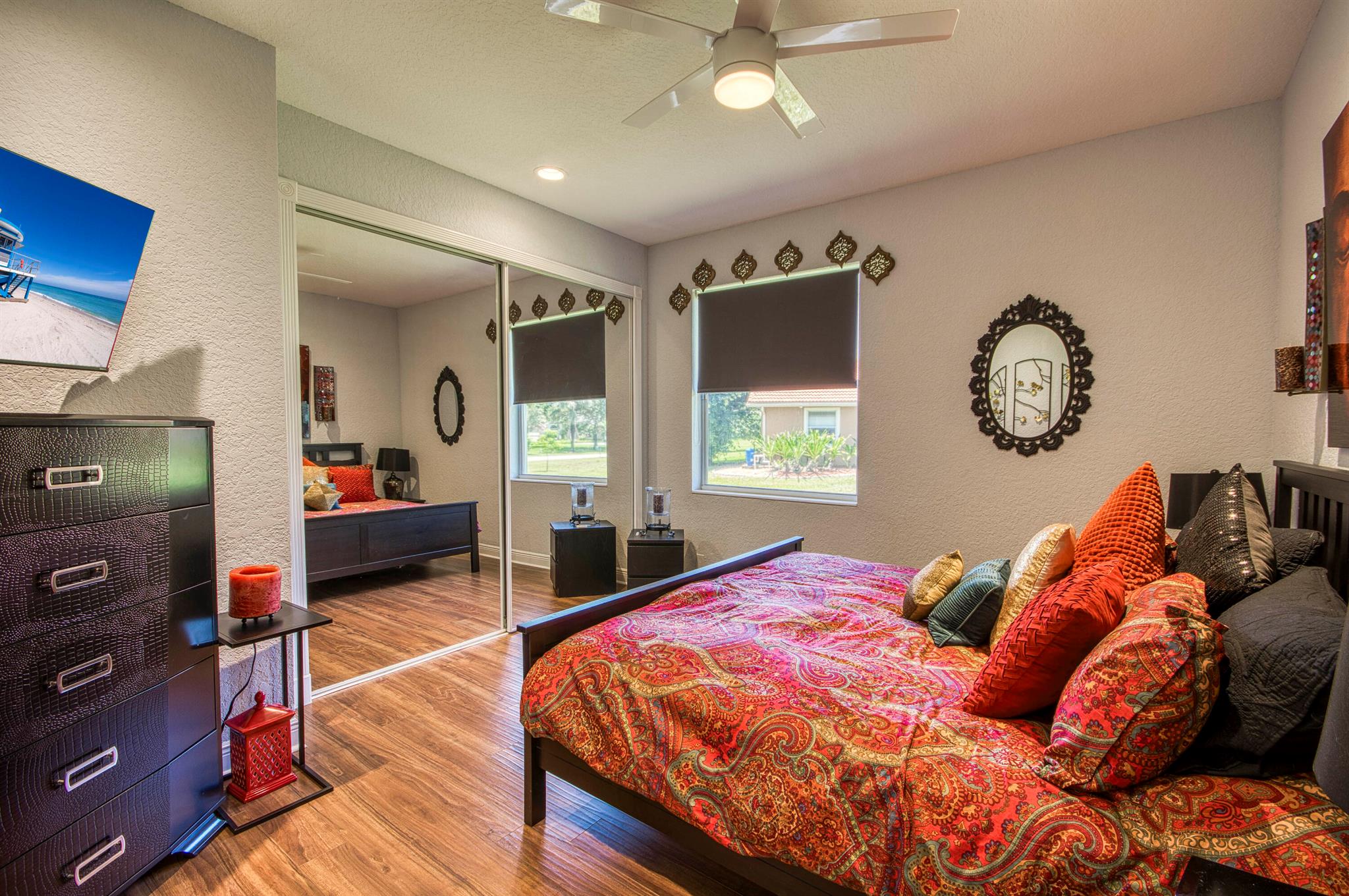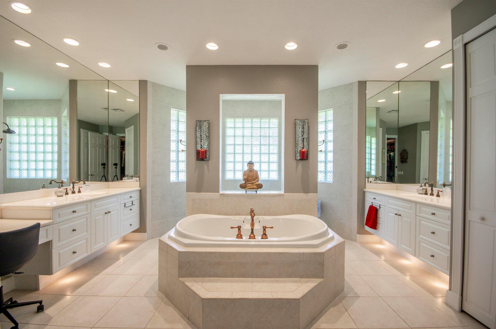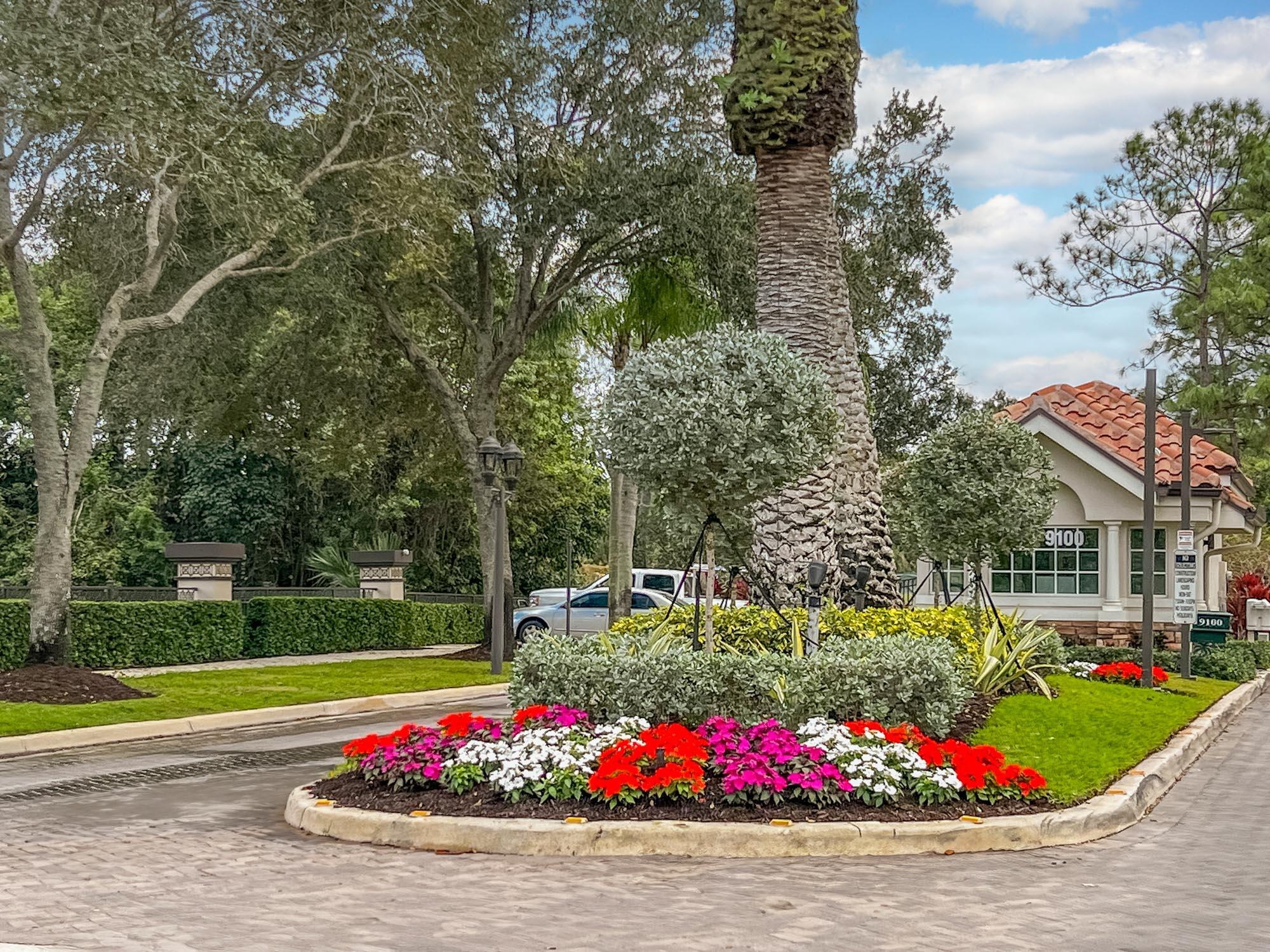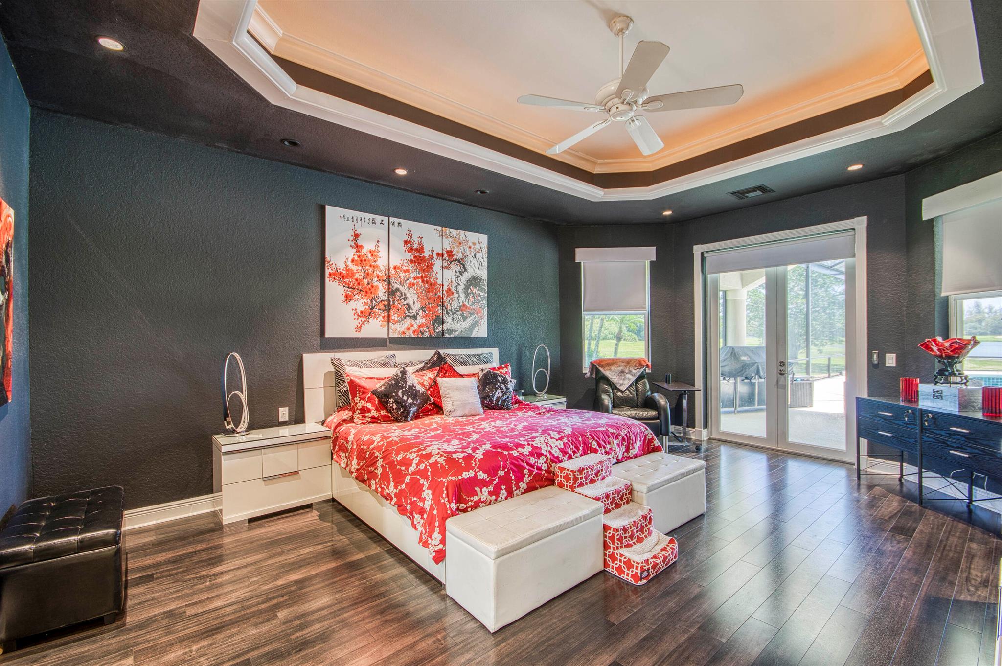 Enjoy the BEST WATER VIEW in Bay Hill Estates from this single-story home set on a full 1-acre lot. With a 2023 roof, newer A/Cs, and a 2020 hurricane-rated screened lanai, this home blends peace of mind with luxury living. Inside, you'll find high ceilings, a split floor plan, and expansive windows and sliders that showcase the lake & golf course views. The kitchen offers white cabinetry, black granite, and a central island with double ovens. The extended primary suite features an elegant en-suite featuring double vanities, a soaking tub, and a walk-in shower. The lanai is spacious, screened, and equipped with a TV hookup, making it the perfect setting for al fresco evenings. Located in a guard-gated golf course community just minutes to the exciting new Avenir town center.
