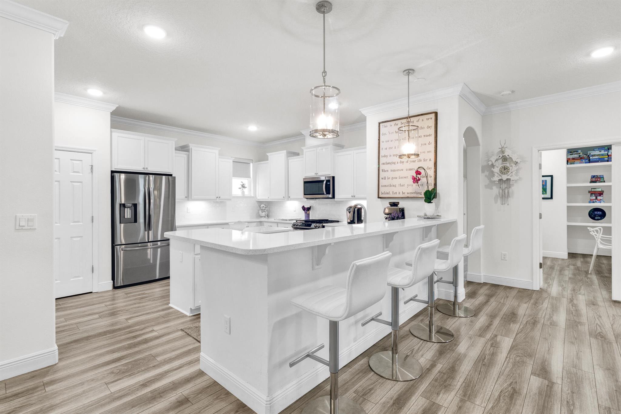 You've found it! A 2022 build, stunning, 3+den/2/2 with upgrades: impact windows, whole house water filtration system, quartz countertops in the kitchen w/subway tile backsplash, gas stove cooking, gas dryer, gas water heater, whole house electronic room darkening shades, luxury vinyl plank flooring throughout, epoxy finish on the garage & lanai floor and extended lanai. Clubhouse has a social calendar of events, heated pool, fitness center and pickleball. Close to Vero's great shopping, dining and, of course, beautiful beaches!