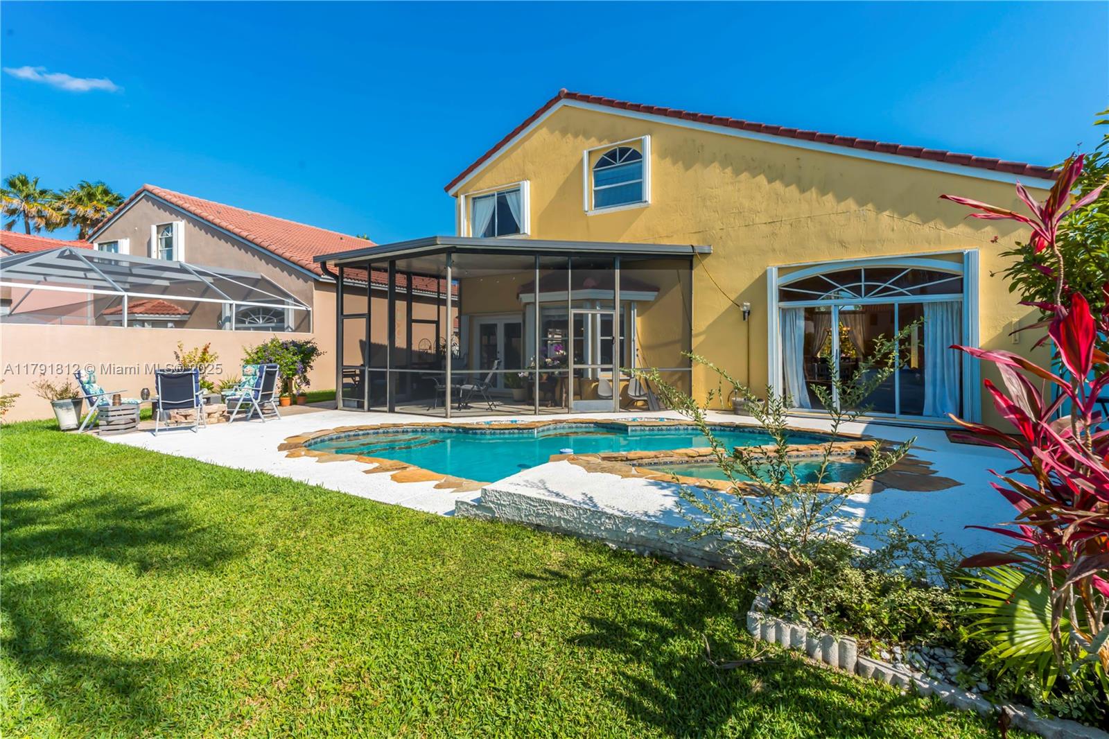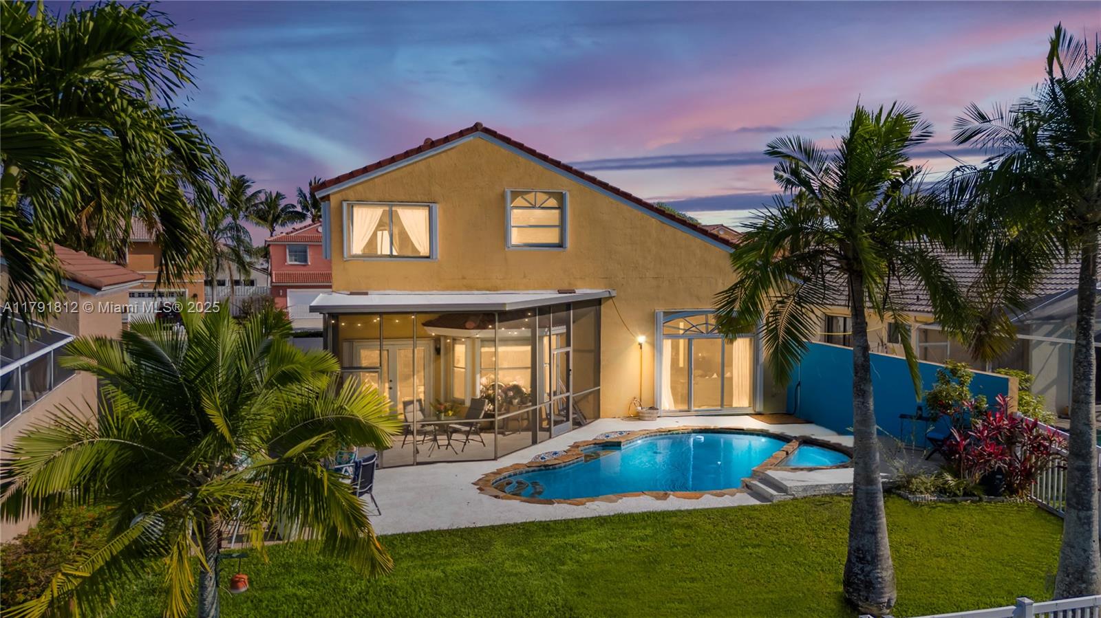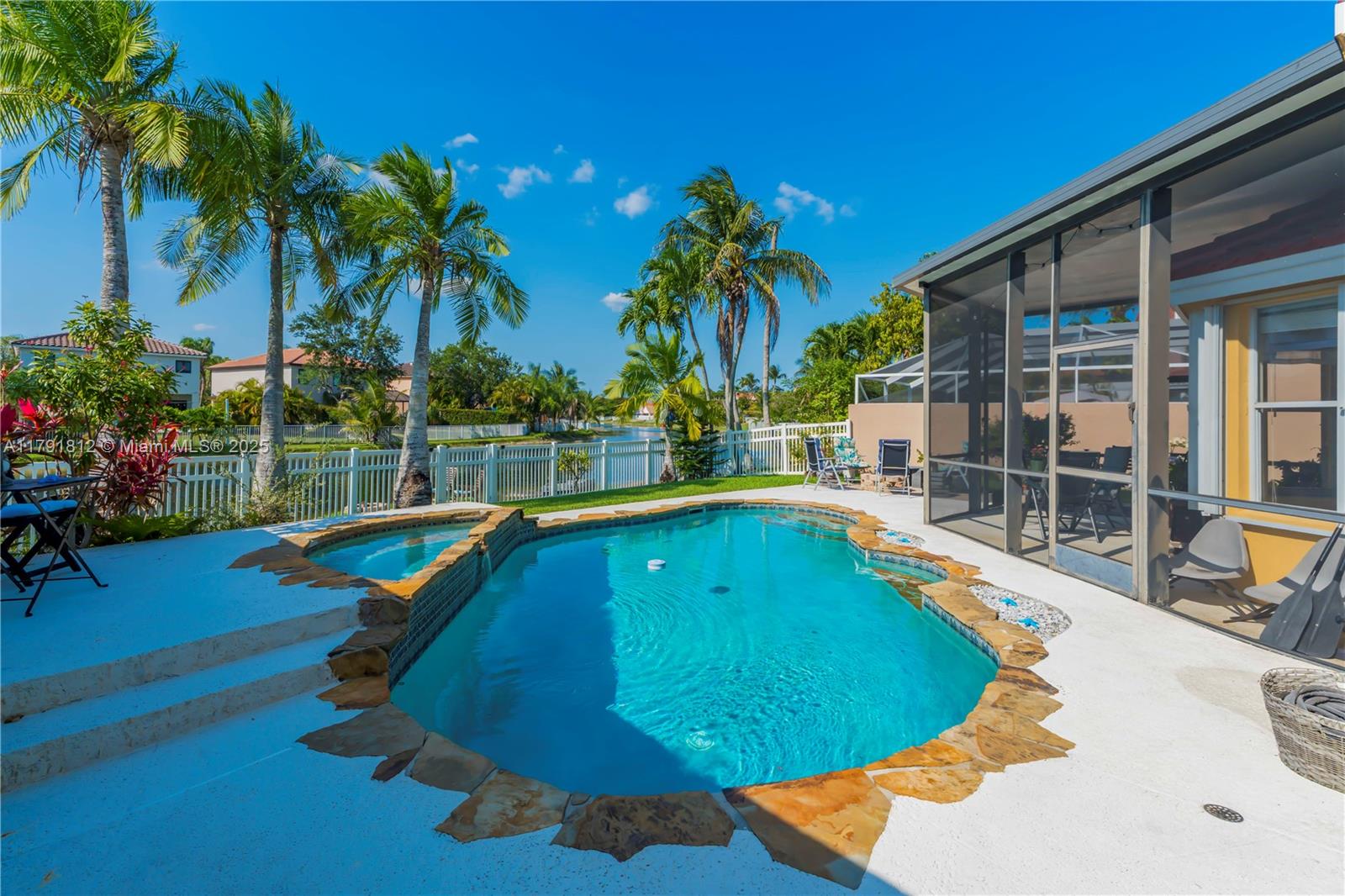 Move-in ready lakefront pool home in Chapel Trail offering wide-water views and breathtaking sunsets. Perfect for entertaining, the outdoor space features a resurfaced pool, screened patio, fire pit, pavers, outdoor shower, and fenced yard with room for expansion. Updates include a 2018 roof, 2024 garage door, accordion shutters, and fresh paint. The kitchen has refinished cabinets and stainless steel appliances, while upstairs boasts wood-style floors, vaulted ceilings, loft home office, and custom closets. Additional highlights include marble accents, separate laundry, and boating access. Low HOA includes internet and cable. Zoned for A-rated schools, close to parks and scenic trails.