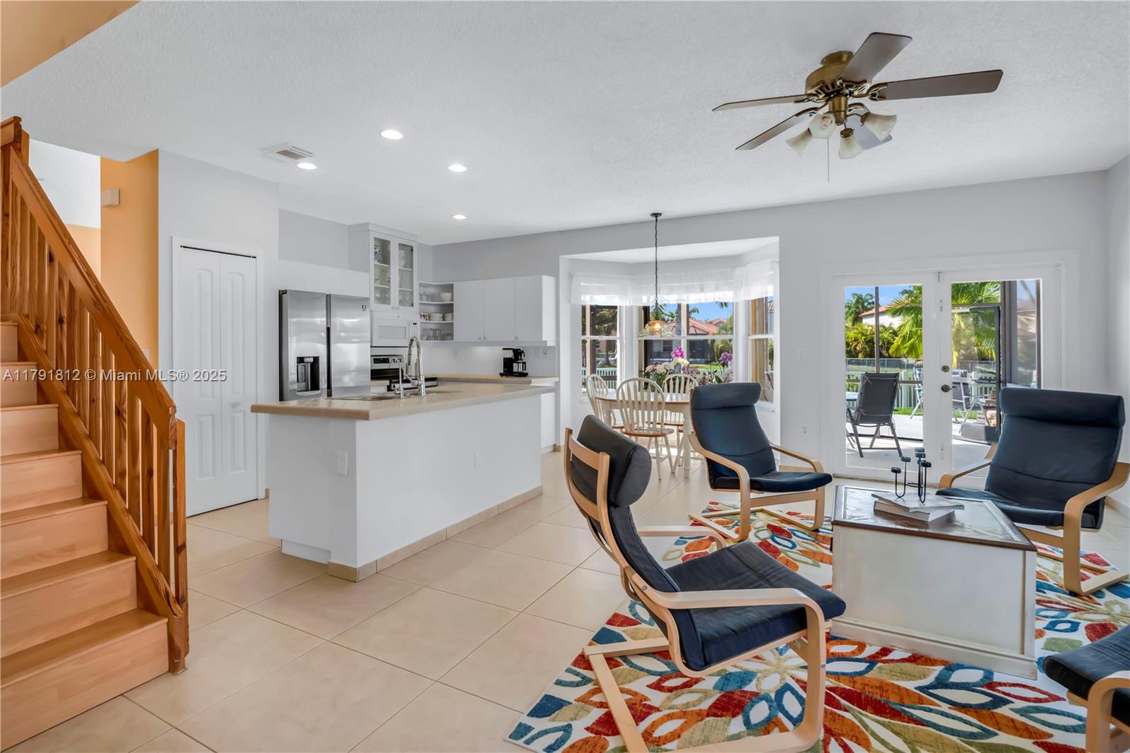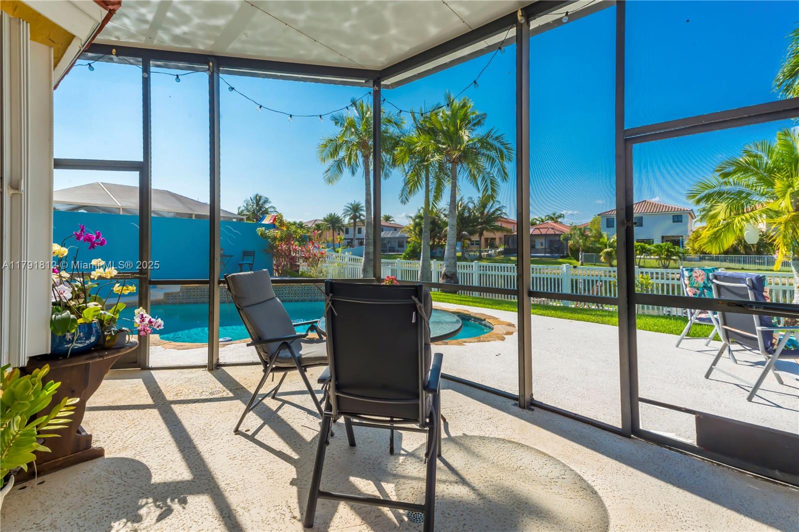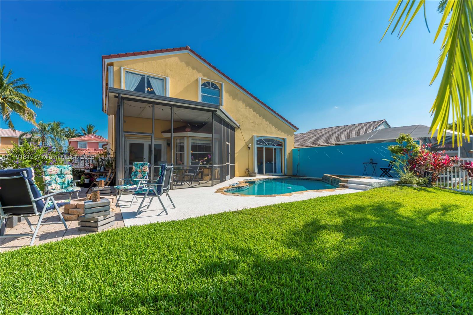 Move-in ready lakefront pool home in Chapel Trail offering wide-water views and breathtaking sunsets. Perfect for entertaining, the outdoor space features a resurfaced pool, screened patio, fire pit, pavers, outdoor shower, and fenced yard with room for expansion. Updates include a 2018 roof, 2024 garage door, accordion shutters, and fresh paint. The kitchen has refinished cabinets and stainless steel appliances, while upstairs boasts wood-style floors, vaulted ceilings, loft home office, and custom closets. Additional highlights include marble accents, separate laundry, and boating access. Low HOA includes internet and cable. Zoned for A-rated schools, close to parks and scenic trails.