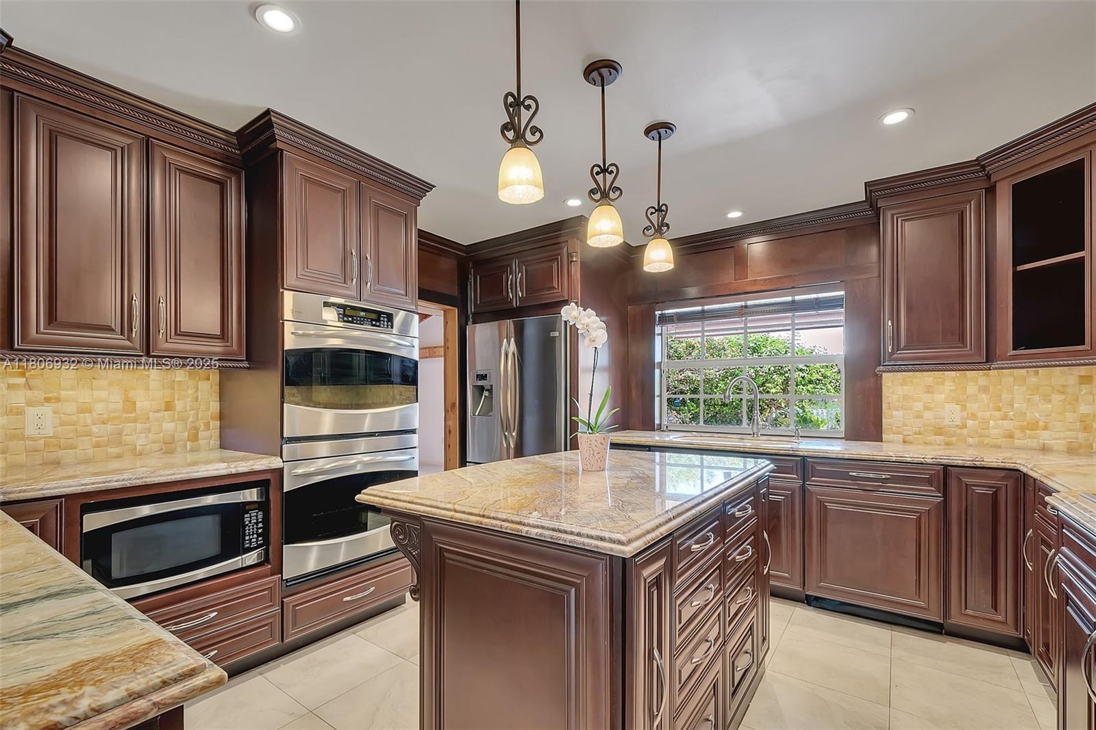 Custom, rock lathe and plaster constructed updated beauty. Entertain in style with a one of a kind kitchen featuring a wine cooler, double oven, Jennaire stove top, stunning cherrywood cabinetry with soft closing drawers and cabinets, pull out pantry, double oven, granite & onyx backsplash, island, and top of the line appliances. Charming crown moldings, French doors, & stunning baths with high end Kohler fixtures. Spacious family room features a wood burning fireplace and wet bar/ice maker. Enjoy the primary bath whirlpool jet tub w/shower, double onyx sinks, stunning granite counters, and door to lanai. The lovely pebble tech pool is surrounded by interlocking brick paver patio. Unbeatable location near turnpike, Costco, numerous Publix stores, fine dining & excellent schools.