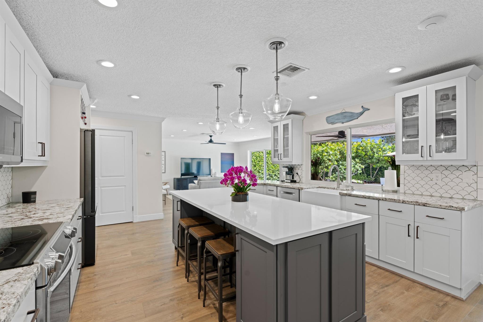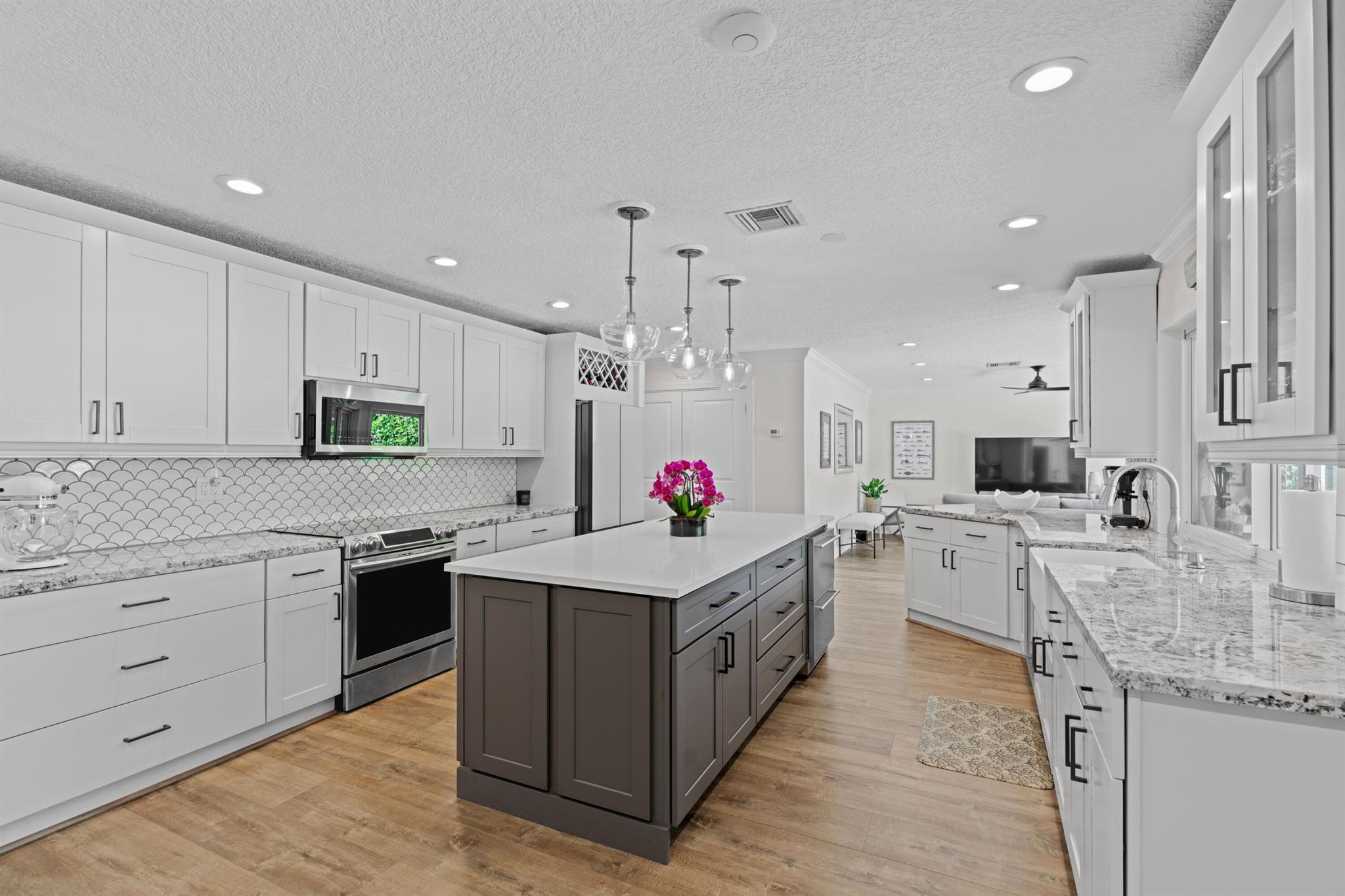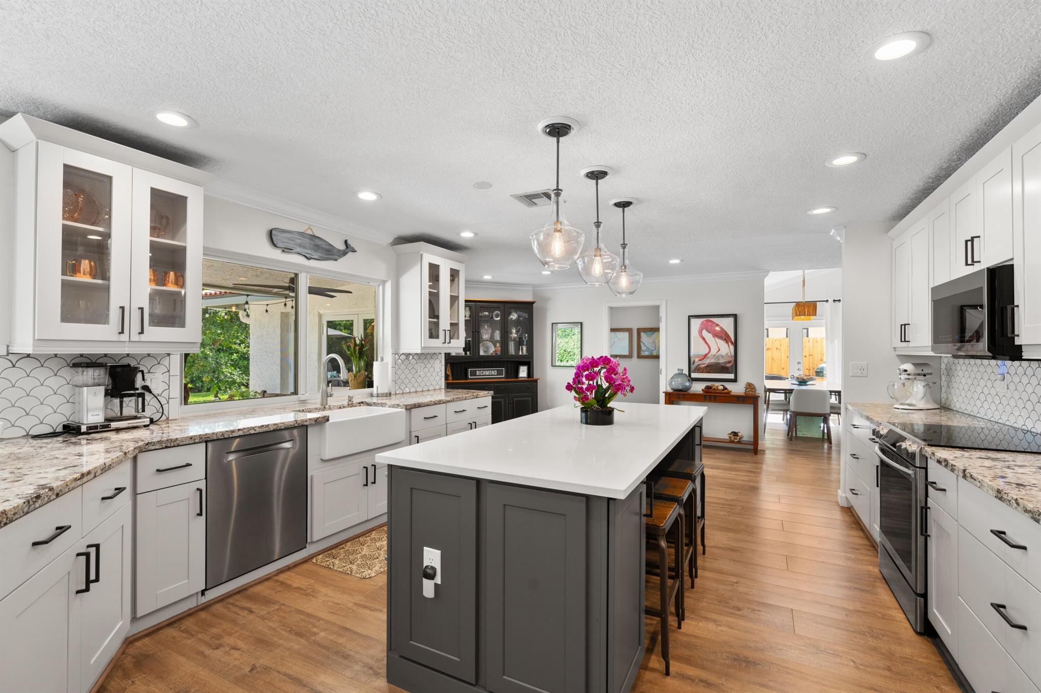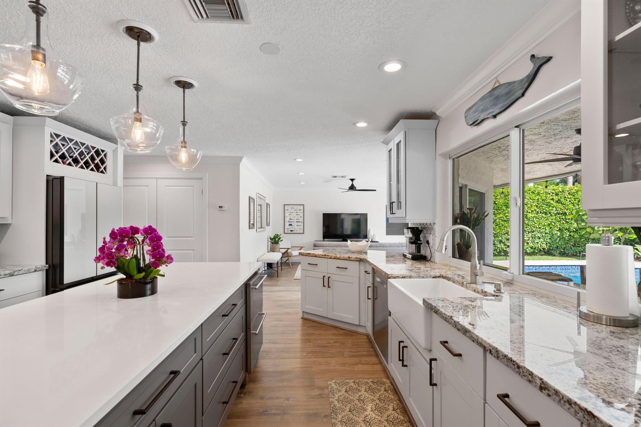Stunning 4bed/2bath pool home situated on a quiet street in highly desirable Palm Beach Farms. Split bedroom floor plan, custom kitchen/bath cabinets, quartz countertops, high end stainless steel appliances & wine fridge. Soaring ceilings and an abundance of windows bring natural light & nature into your home offering a balance of indoor/outdoor living. Private, lush, tropical garden surrounding a heated, salt water pool. 100% impact windows & doors. 2 car impact garage door and a 30AMP charging plug for an electric vehicle. No utility lines. High speed fiber internet, WiFi booster in the ceiling. No restrictions, no HOA. Excellent location, AAA schools, minutes from parks, beaches, fine dining & shopping. Approx 25 minutes from the Palm Beach & Ft Lauderdale International Airports.