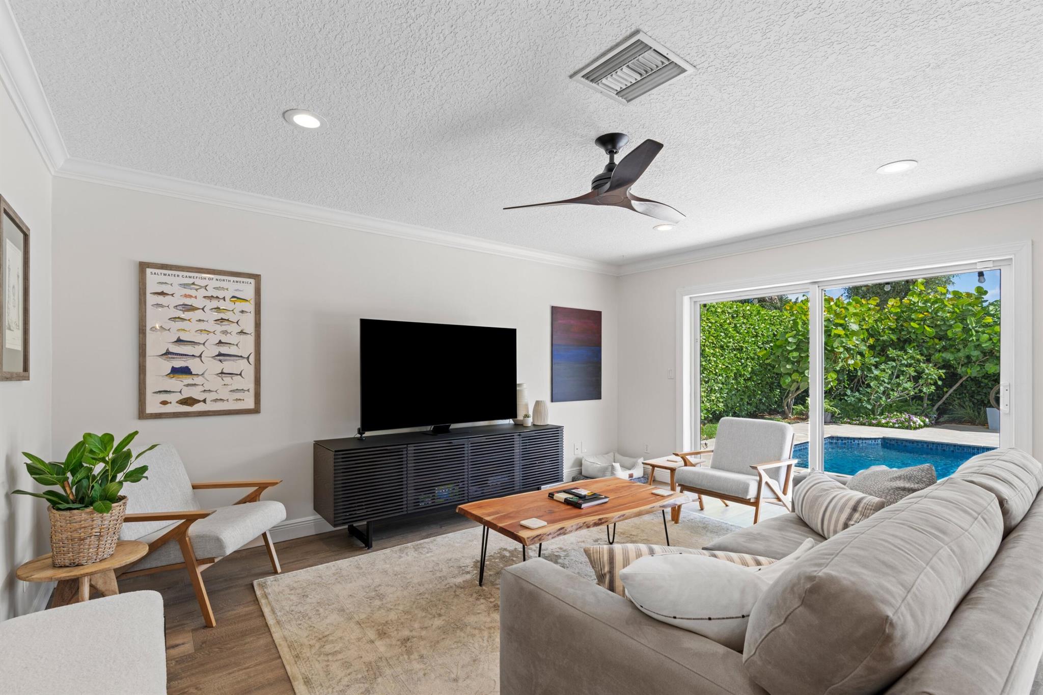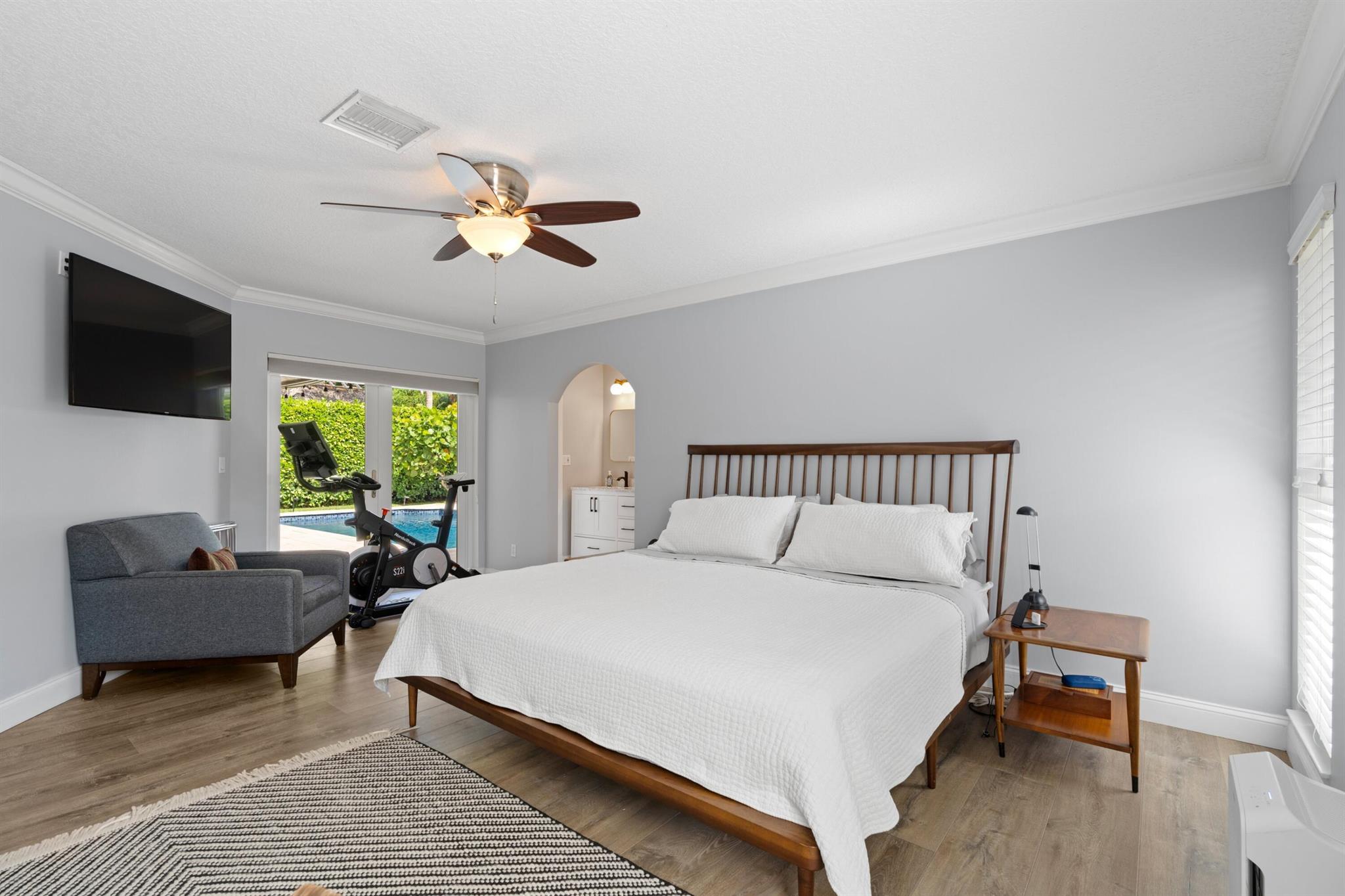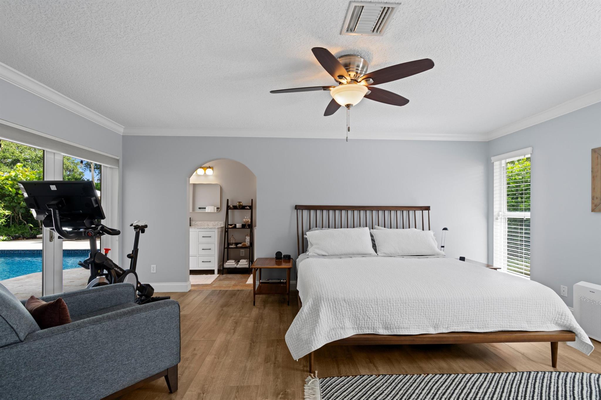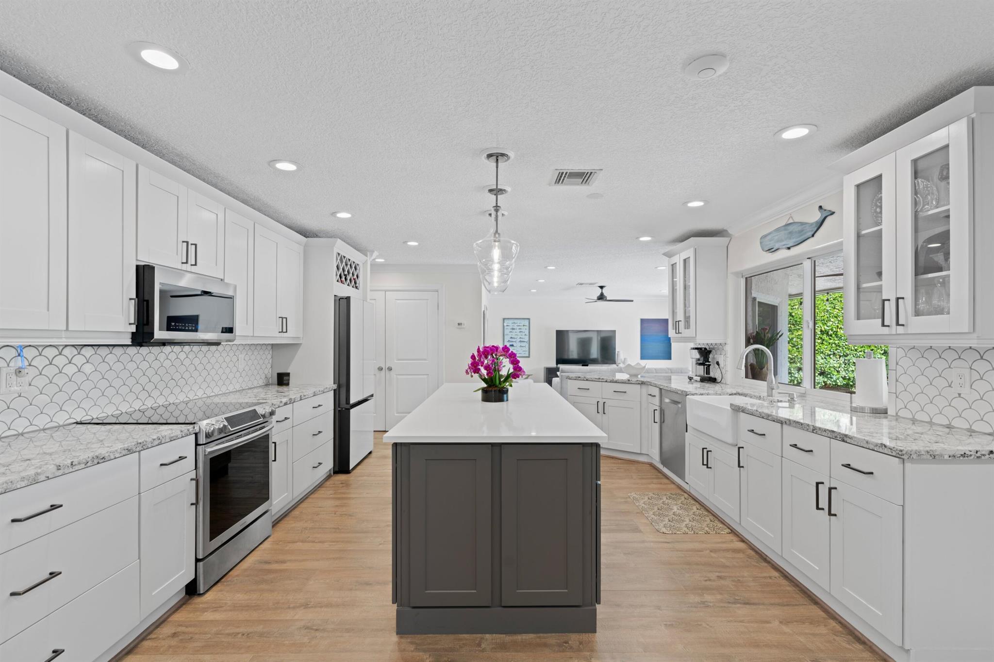 Stunning 4bed/2bath pool home situated on a quiet street in highly desirable Palm Beach Farms. Split bedroom floor plan, custom kitchen/bath cabinets, quartz countertops, high end stainless steel appliances & wine fridge. Soaring ceilings and an abundance of windows bring natural light & nature into your home offering a balance of indoor/outdoor living. Private, lush, tropical garden surrounding a heated, salt water pool. 100% impact windows & doors. 2 car impact garage door and a 30AMP charging plug for an electric vehicle. No utility lines. High speed fiber internet, WiFi booster in the ceiling. No restrictions, no HOA. Excellent location, AAA schools, minutes from parks, beaches, fine dining & shopping. Approx 25 minutes from the Palm Beach & Ft Lauderdale International Airports.
