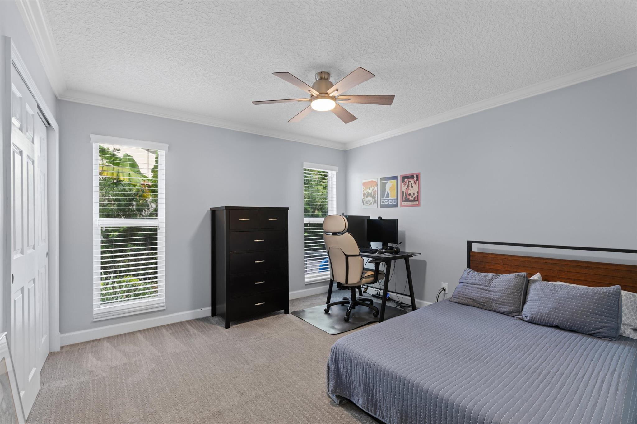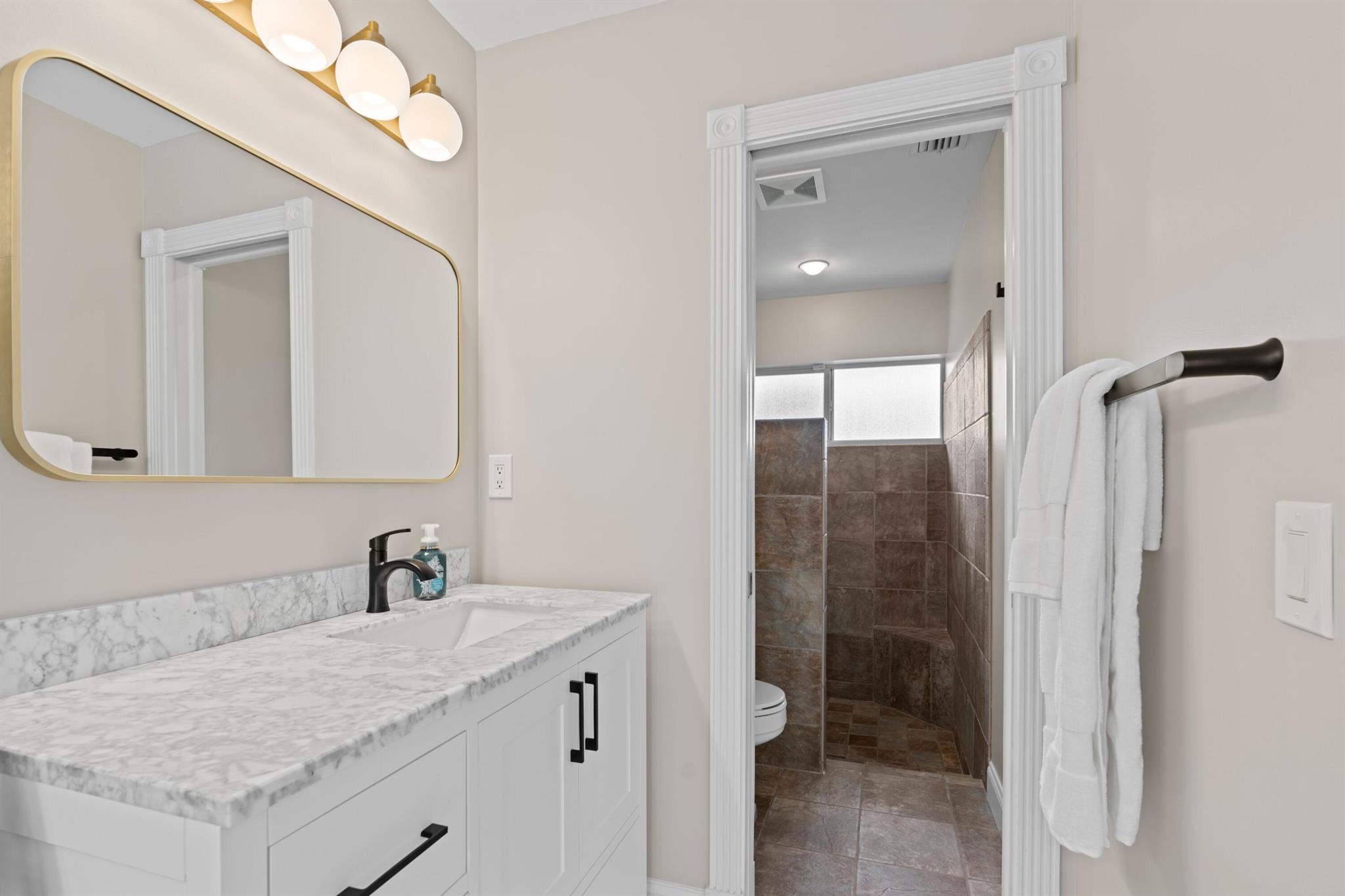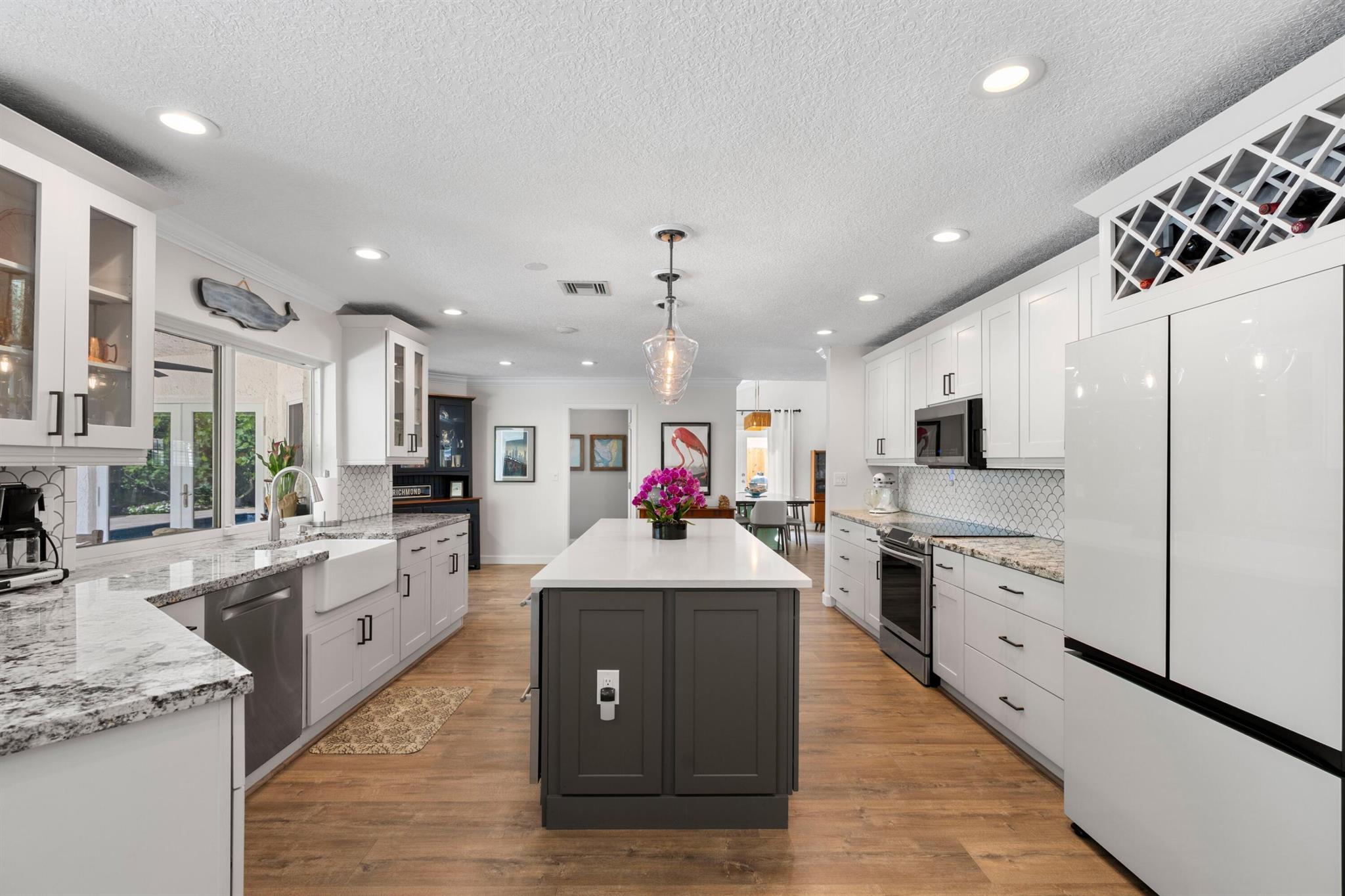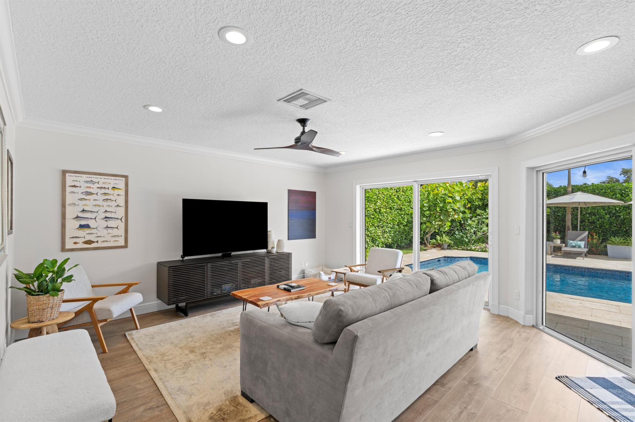 Stunning 4bed/2bath pool home situated on a quiet street in highly desirable Palm Beach Farms. Split bedroom floor plan, custom kitchen/bath cabinets, quartz countertops, high end stainless steel appliances & wine fridge. Soaring ceilings and an abundance of windows bring natural light & nature into your home offering a balance of indoor/outdoor living. Private, lush, tropical garden surrounding a heated, salt water pool. 100% impact windows & doors. 2 car impact garage door and a 30AMP charging plug for an electric vehicle. No utility lines. High speed fiber internet, WiFi booster in the ceiling. No restrictions, no HOA. Excellent location, AAA schools, minutes from parks, beaches, fine dining & shopping. Approx 25 minutes from the Palm Beach & Ft Lauderdale International Airports.