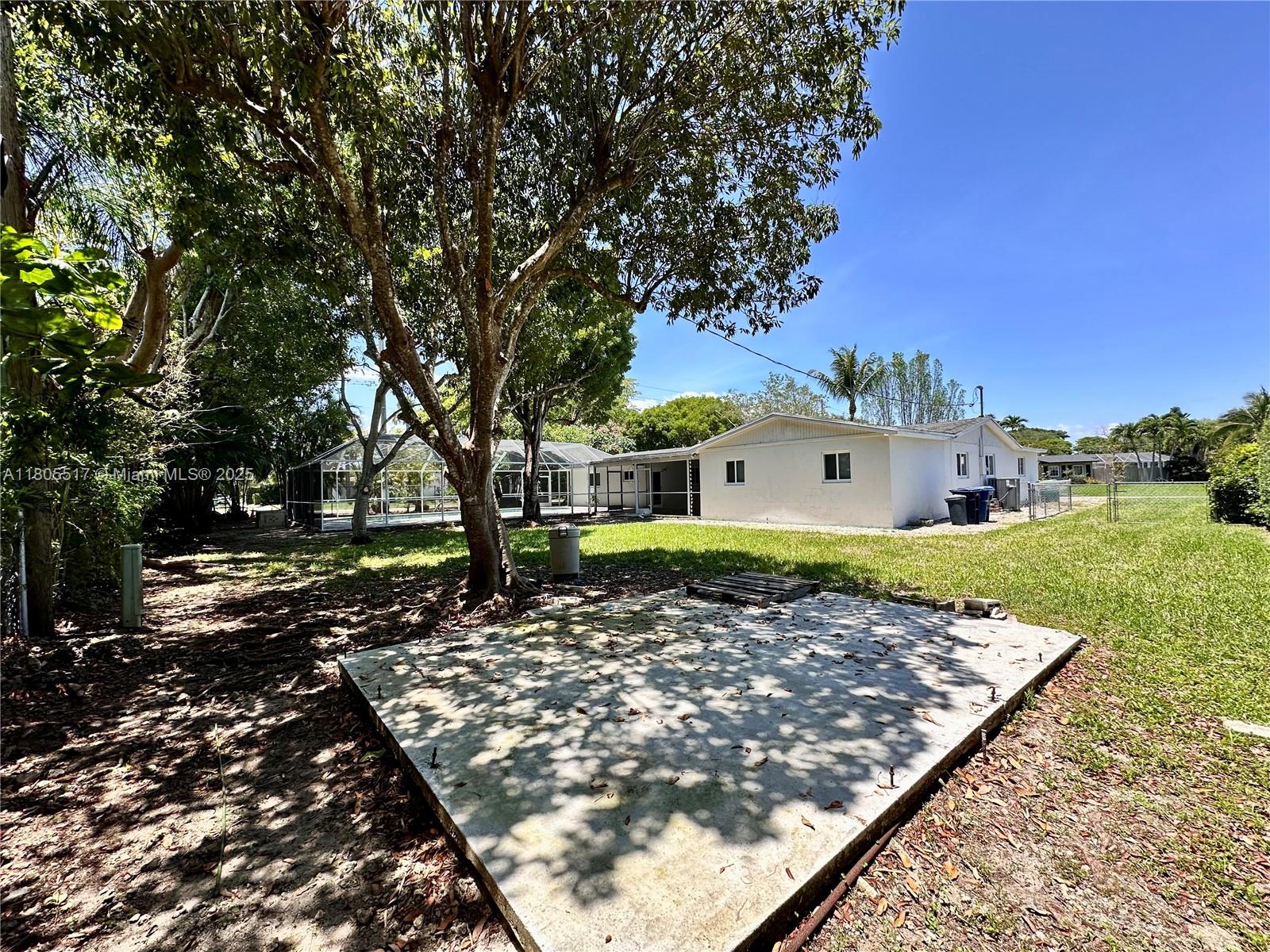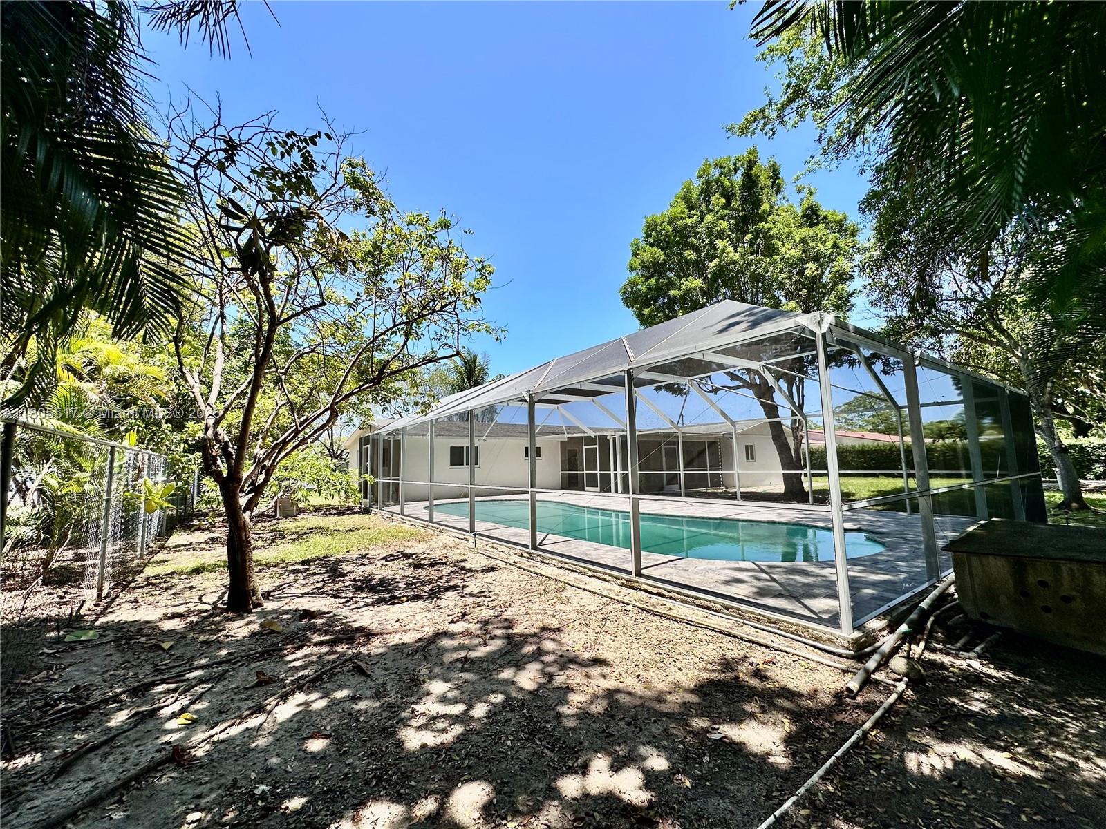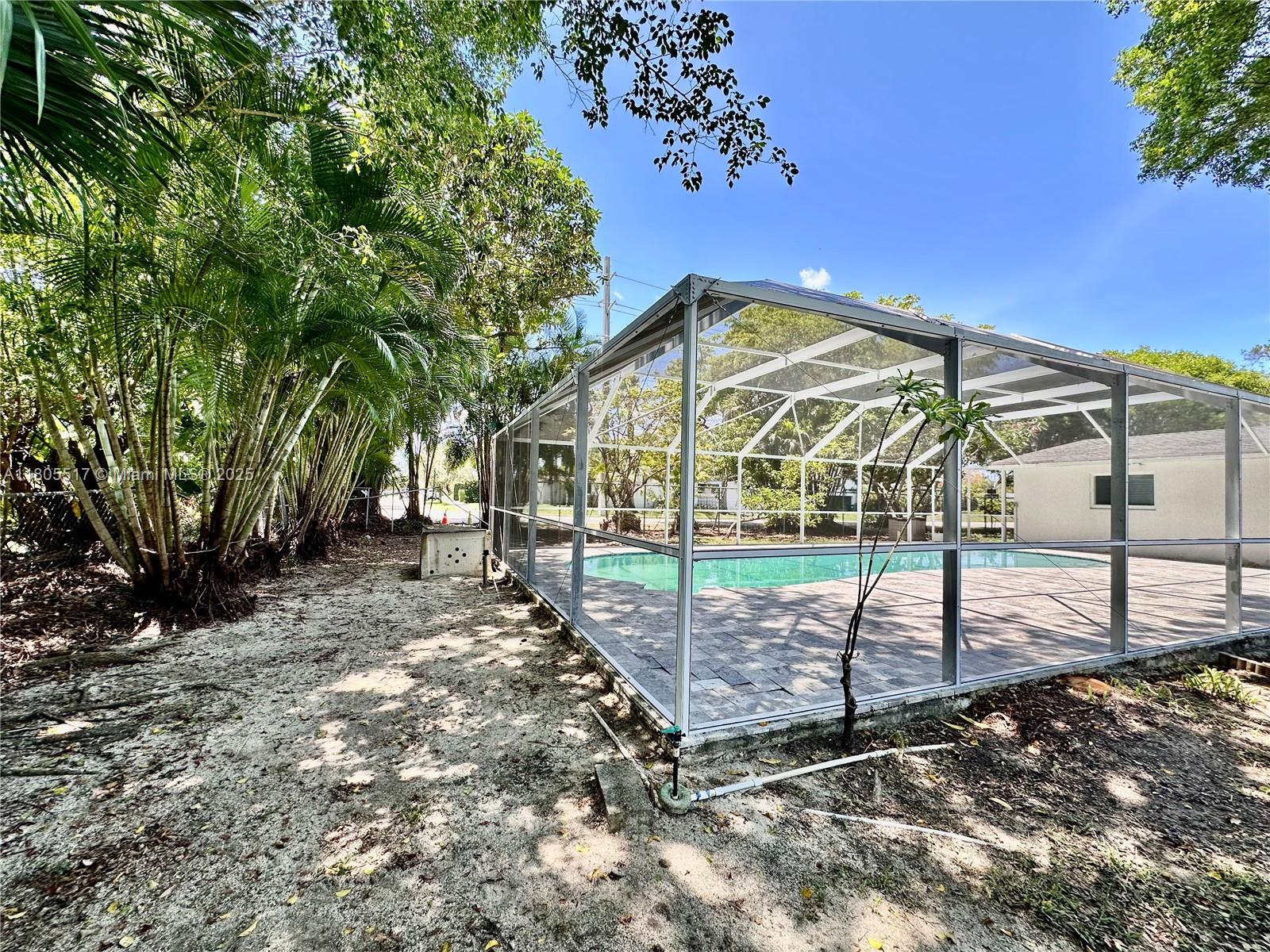 Welcome to this ideal open-concept home, perfectly located on an 18,000+ sq ft corner lot in a wonderful neighborhood. Featuring 3 bedrooms, 2 bathrooms, and a flexible room perfect for an office, playroom, or guest space with the addition of a barn door. The open layout gives new homeowners the freedom to design a space that fits their lifestyle. The updated kitchen features rich dark wood cabinetry, stainless steel appliances, and quartz countertops. A breakfast nook and coffee bar next to the kitchen offer extra dining and entertaining space. Both bathrooms have been tastefully updated. Enjoy the screened-in saltwater pool year-round. The backyard includes fruit trees and a concrete slab—ideal for a shed or RV parking. A new roof and septic tank are underway, expected completion Dec.