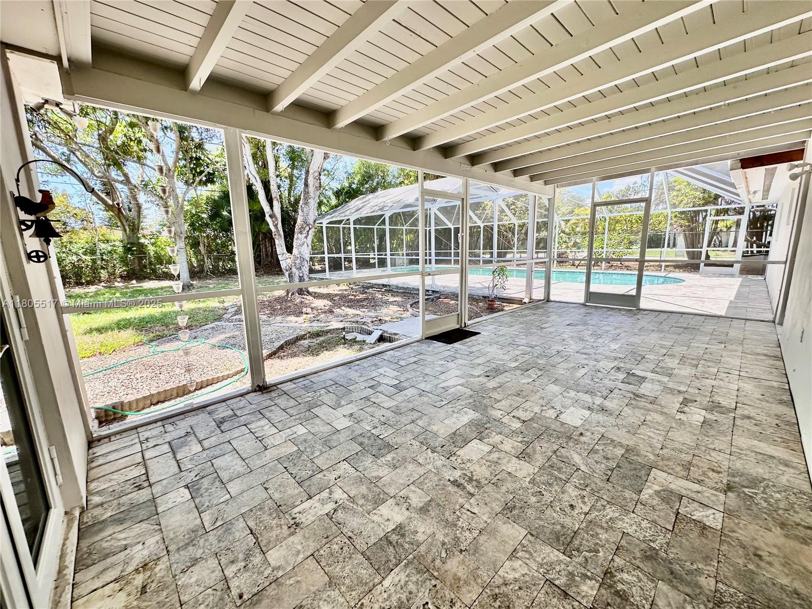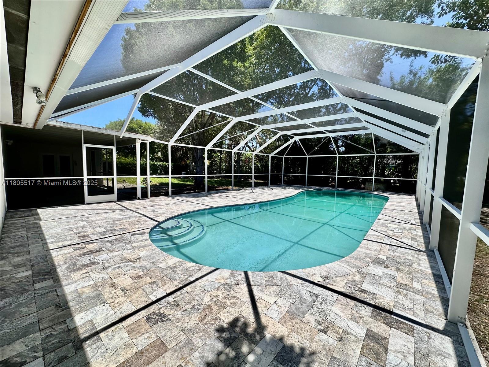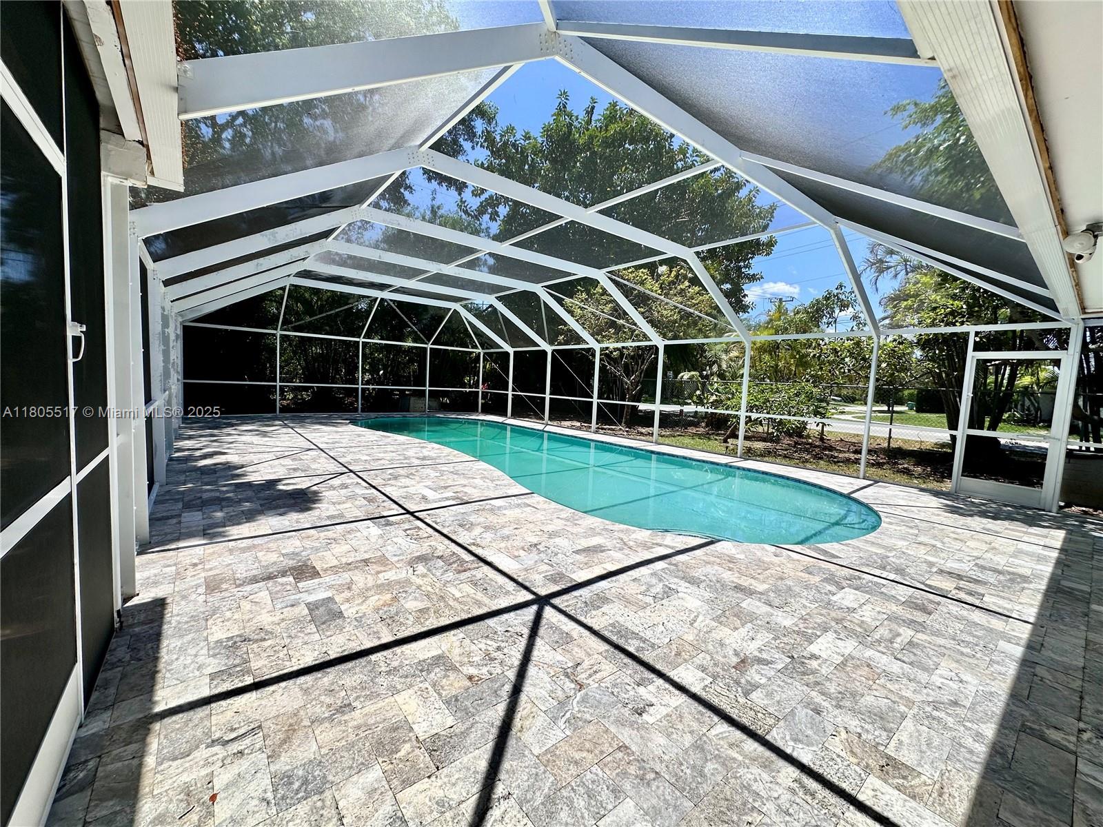 Welcome to this ideal open-concept home, perfectly located on an 18,000+ sq ft corner lot in a wonderful neighborhood. Featuring 3 bedrooms, 2 bathrooms, and a flexible room perfect for an office, playroom, or guest space with the addition of a barn door. The open layout gives new homeowners the freedom to design a space that fits their lifestyle. The updated kitchen features rich dark wood cabinetry, stainless steel appliances, and quartz countertops. A breakfast nook and coffee bar next to the kitchen offer extra dining and entertaining space. Both bathrooms have been tastefully updated. Enjoy the screened-in saltwater pool year-round. The backyard includes fruit trees and a concrete slab—ideal for a shed or RV parking. A new roof and septic tank are underway, expected completion Dec.
