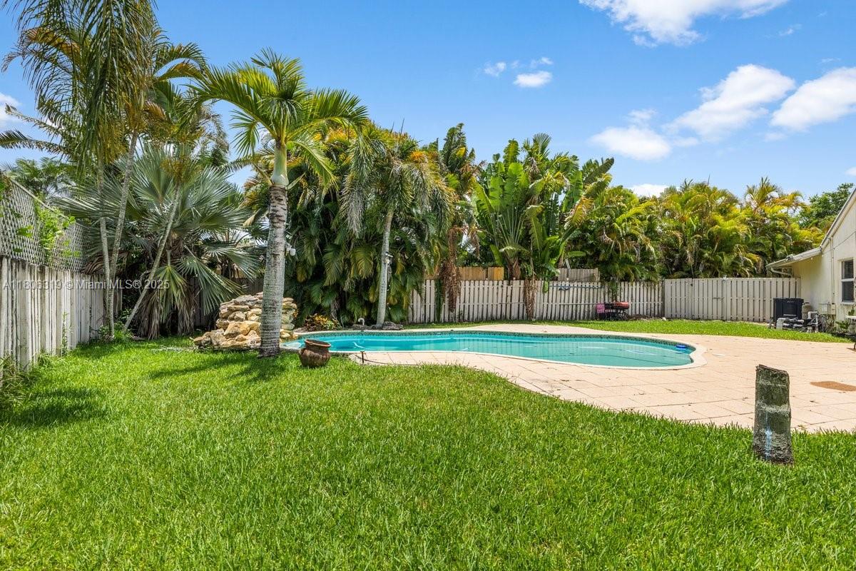 Discover this rare 4BD/2BA pool home located in the sought-after Shenandoah community. Perfectly positioned on a spacious corner lot at the end of a quiet cul-de-sac, this property offers one of the largest yards in the neighborhood. The fully fenced backyard is a private oasis, complete with a sparkling pool and tranquil rock waterfall—ideal for entertaining or relaxing. Inside, you'll find a beautifully updated kitchen with quartz countertops and stainless steel appliances. Additional features include impact windows, a newer A/C, and a new roof currently in progress. Enjoy low HOA fees, access to top-rated schools, and convenient proximity to parks and major highways and up to 10K Seller Concession.