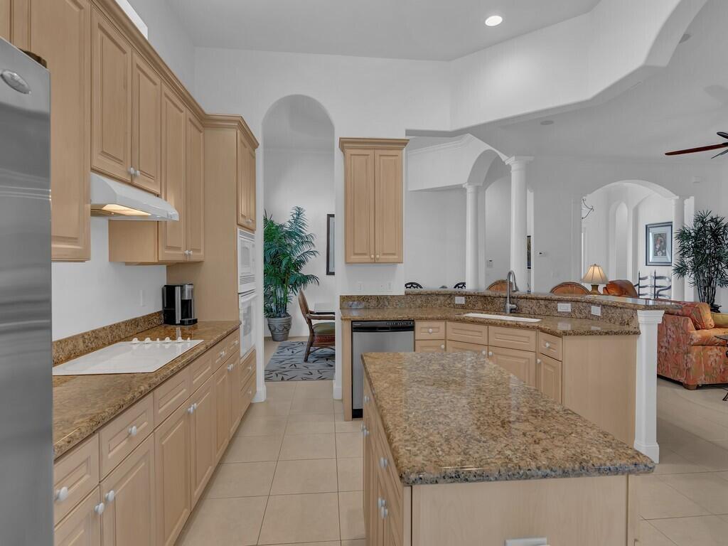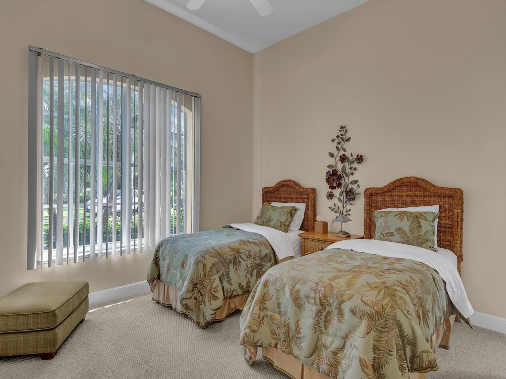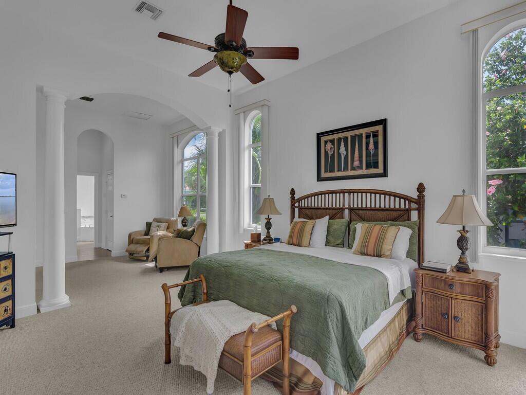 Lakefront 3BR/ 3BA in gated community with beach access. Open floor plan, high ceilings, updated primary bath and turnkey condition. Enjoy screened pool, spa and beautifully landscaped yard. Florida living at its finest. Don't miss this move in-ready gem!