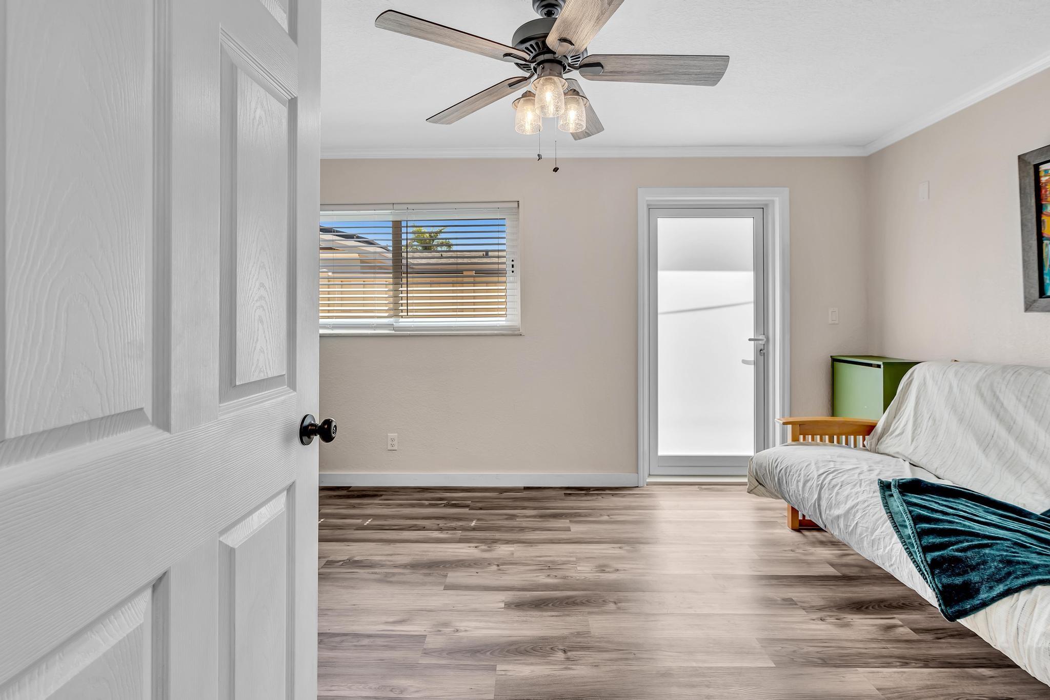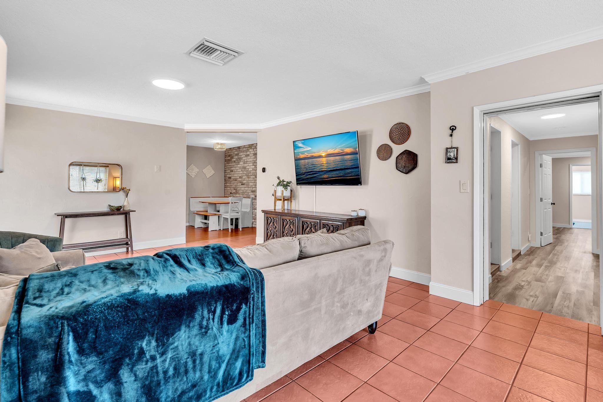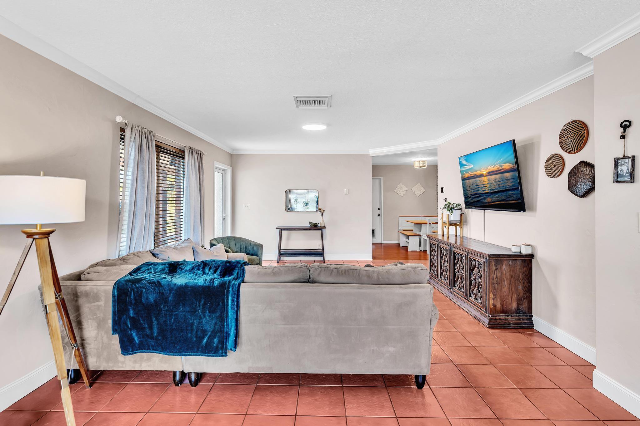 This unique 5/3 layout is a rare find in the neighborhood! Thoughtfully designed with a spacious split floor plan, one wing features 3 bedrooms and 2 full bathrooms—including two true ensuites. The highlight is the brand-new primary suite, boasting a large bedroom, oversized walk-in closet, and a beautifully designed en-suite bath. The opposite wing offers 2 more bedrooms and a full bath—perfect for guests, a home office, or multigenerational living. Enjoy a large backyard with room for a pool, plus a stamped concrete circular driveway, a 2-car carport, and spacious interior laundry/utility room. This home is packed with upgrades: impact windows and doors, tankless water heater, updated electrical panel, younger roof, no cast iron pipes, and more. Move-in ready with flexibility and space!