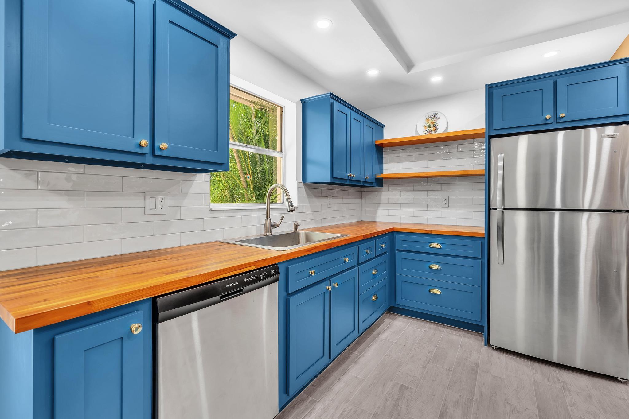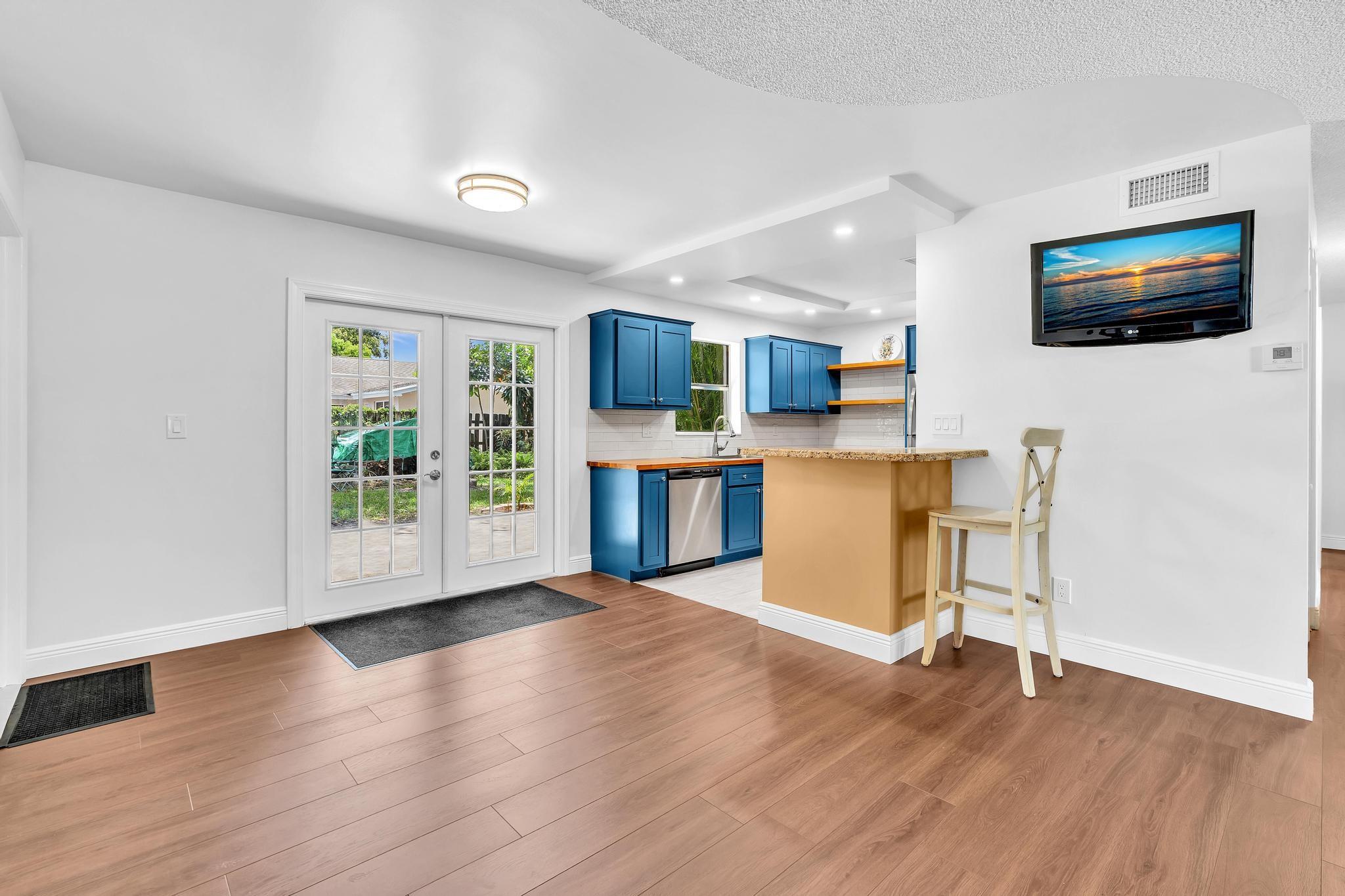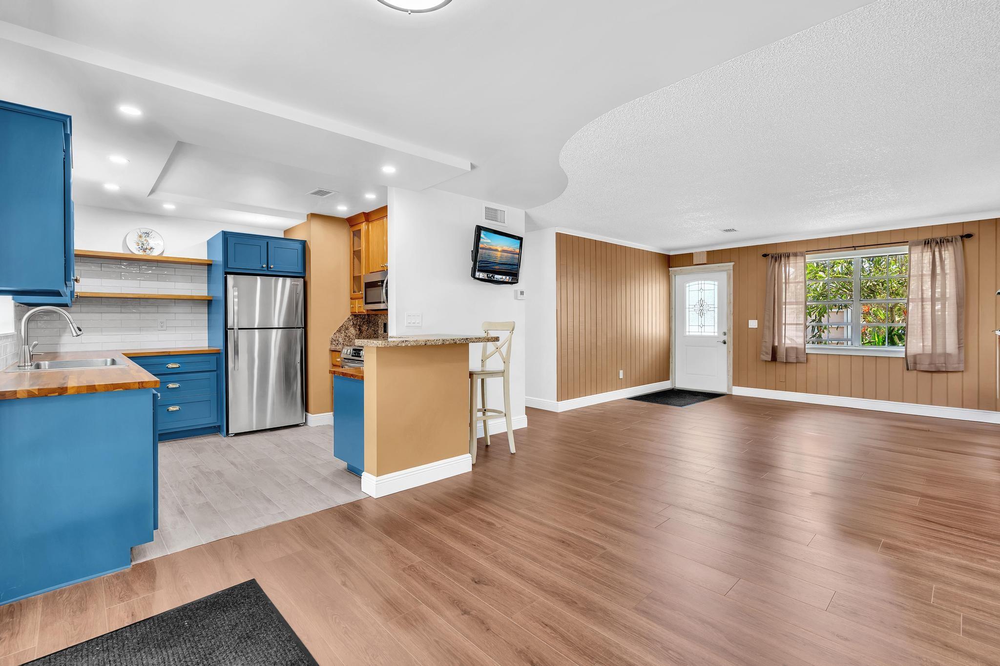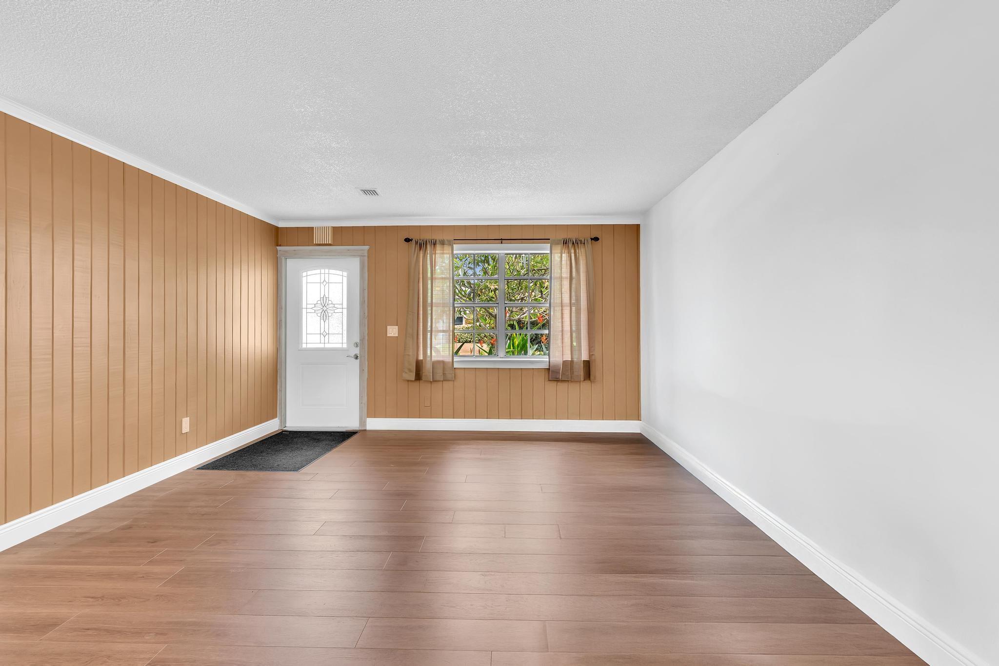 Experience comfort and charm in this inviting 3-bedroom, 2-bath single-family home in a quiet, family-friendly neighborhood in Lauderhill. This lovely and cozy home features a fully updated. Updated kitchen cabinets with wood cabinets and a new look. Unique Teak countertop with shellac finish. Teak is very water-resistant. New top-of-the-line stainless steel appliances. Stunning porcelain tile, waterproof wood flooring, and new bedroom carpet. Both bathrooms are updated beautifully. Spacious master suite with a large walk-in closet, one-car garage, Hugh's private backyard, Room for a pool, excellent for entertainment. Close to everything: Walking distance to school. Airport, highways, restaurants, and a mall. NO HOA. Move-in condition. Walking distance to school.