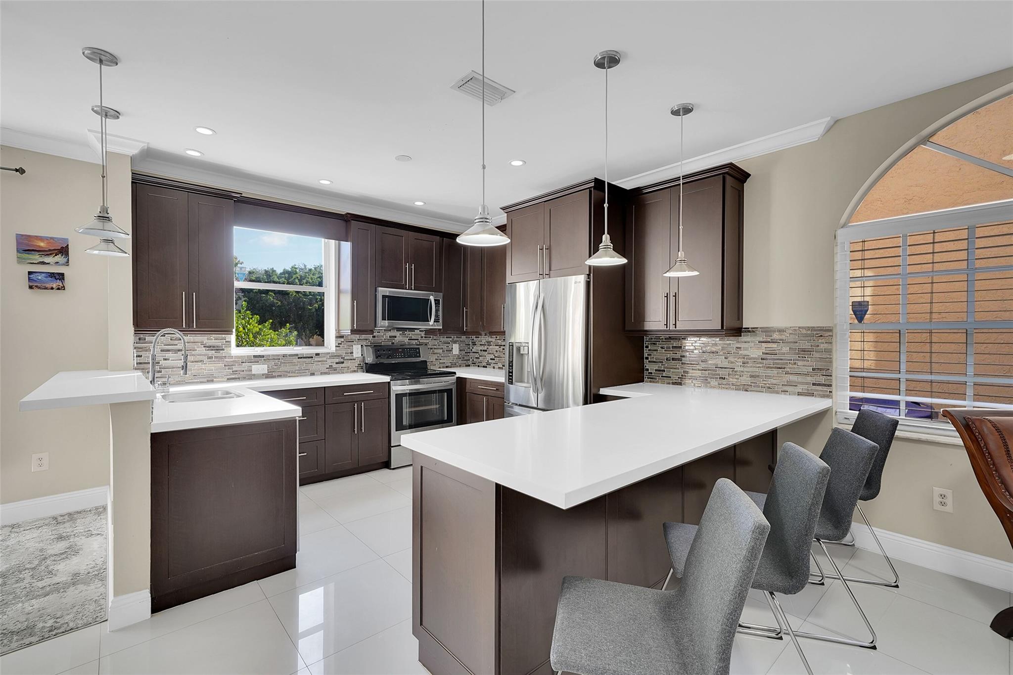 2019 Roof! Exquisite Waterfront Home in Coral Springs- Fully Renovated! Step into luxury with this beautifully renovated 2-Story 3 Bed/2.5 Bath Home. Modern upgrades & a custom chefs kitchen enhance its allure, newer roof, new A/C system & electric water heater provide comfort and efficiency. The arched windows, SS appliances & elegant porcelain tile flooring create a stylish ambiance throughout. The home also features high-hat lighting & a luxurious primary bedroom with a walk-in closet, dual sinks, and a separate shower and standalone tub for ultimate relaxation. NEW washer/dryer. Epoxy flooring in garage. Residents can enjoy the community pool, and the home's prime location offers easy access to transportation, shopping, dining, and more. Don't miss out- schedule a private tour today!