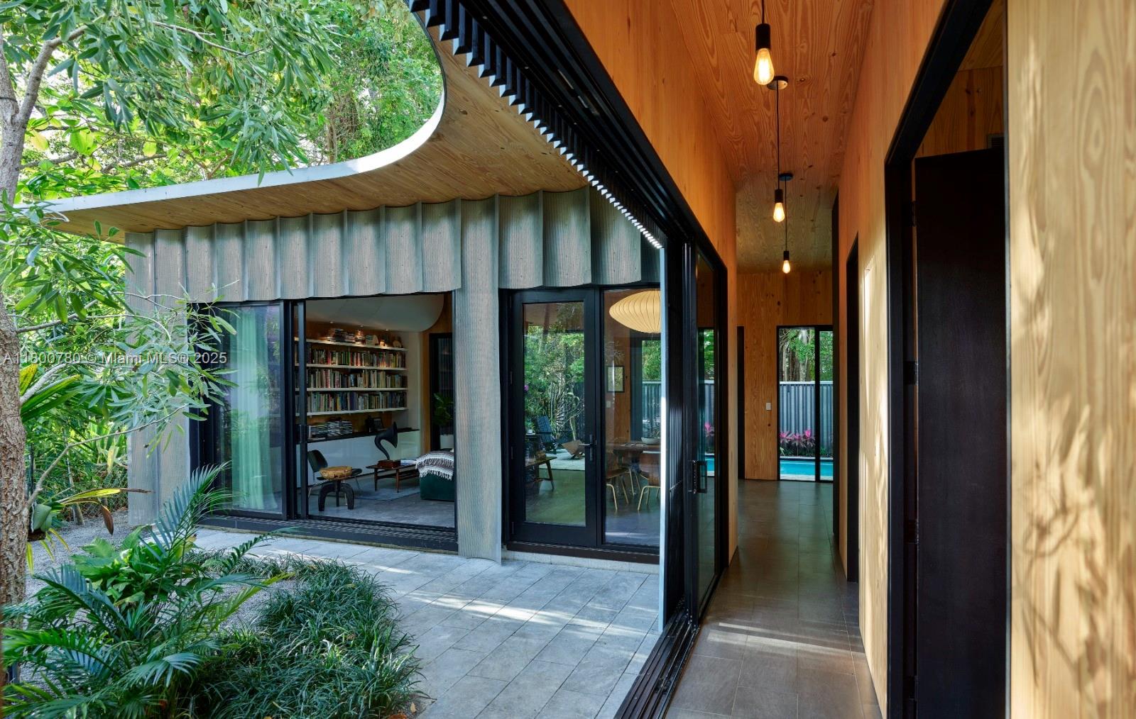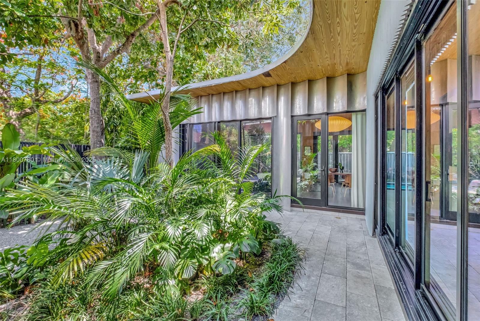 House In A Garden is a distinctive 4-bedroom, 3-bath pool home in Coconut Grove, designed by renowned local architecture firm Atelier Mey and crafted from sustainable mass timber with soaring 11'+ ceilings throughout. This thoughtfully designed single-story home pays homage to the Grove’s Bahamian roots with a full-width front porch that fosters a connection to the community. At its heart, an open-air courtyard brings natural light and lush garden views into every room. The layout wraps around the courtyard, promoting passive cross-ventilation from the south pavilion through the living spaces. Blending indoor comfort with outdoor tranquility, the home offers timeless architectural appeal. Near top schools, parks, dining, and all the charm of Coconut Grove’s ongoing renaissance.