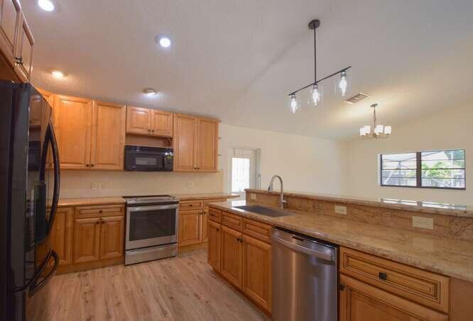 Located on quiet cul-de-sac in low HOA neighborhood within the sought after Loggers' Run development, this freshly painted 4 bedroom home offers bright, open living & excellent outdoor features. Enjoy Florida living at its best with a covered porch, screened in private heated pool, & fully fenced yard that ensures privacy & comfort.Interior is filled with natural light & features updated hardware & fixtures. This home is also fully handicap accessible, ensuring comfort & accessibility for all.Loggers Run offers fantastic amenities for the whole family including playgrounds, tennis courts, & ball fields. Conveniently located near top rated schools, fine dining & premier shopping.