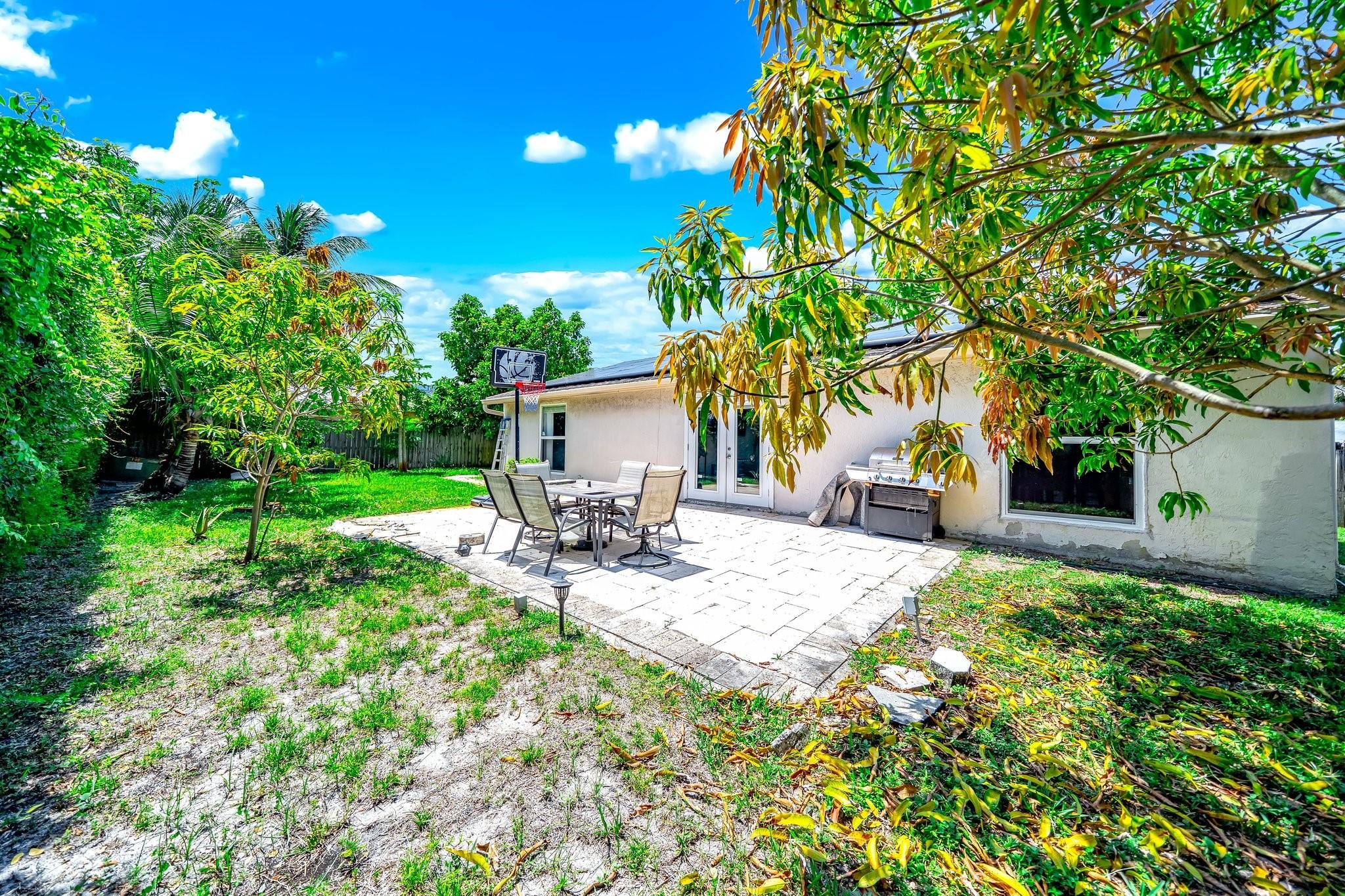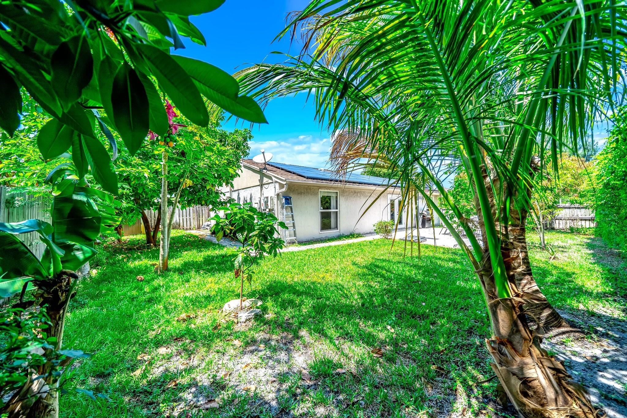 WELCOME TO YOUR DREAM HOME in the highly sought-after Lone Pine Estates! This stunning nearly 1500 Sq ft home features new wood flooring throughout all bedrooms, adding warmth & charm. Embrace energy efficiency with fully installed solar panels (paid by sellers at closing) that reduce your utility costs. Hurricane proof windows & doors provide peace of mind and protection. The spacious, sunlit floor plan showcases beautiful granite countertops and stainless steel appliances in the kitchen, perfect for any home chef. Unwind on the patio overlooking a lush backyard oasis filled with mature mango, soursop, & other fruit trees. Located near Rapids Water Park, perfect for kids, family fun, shopping, dining, & easy I-95 access. This home effortlessly combines comfort, style, & smart living!