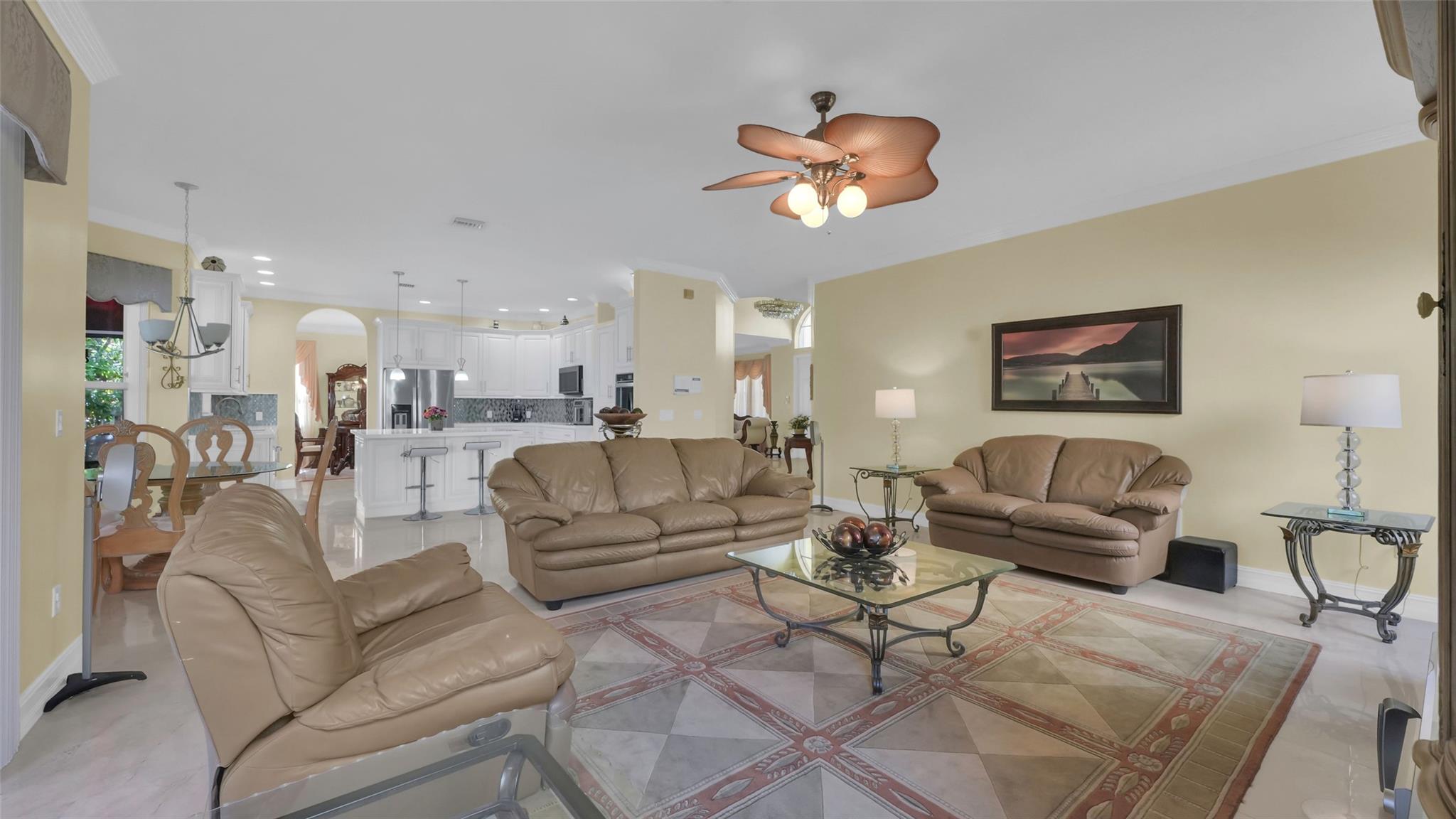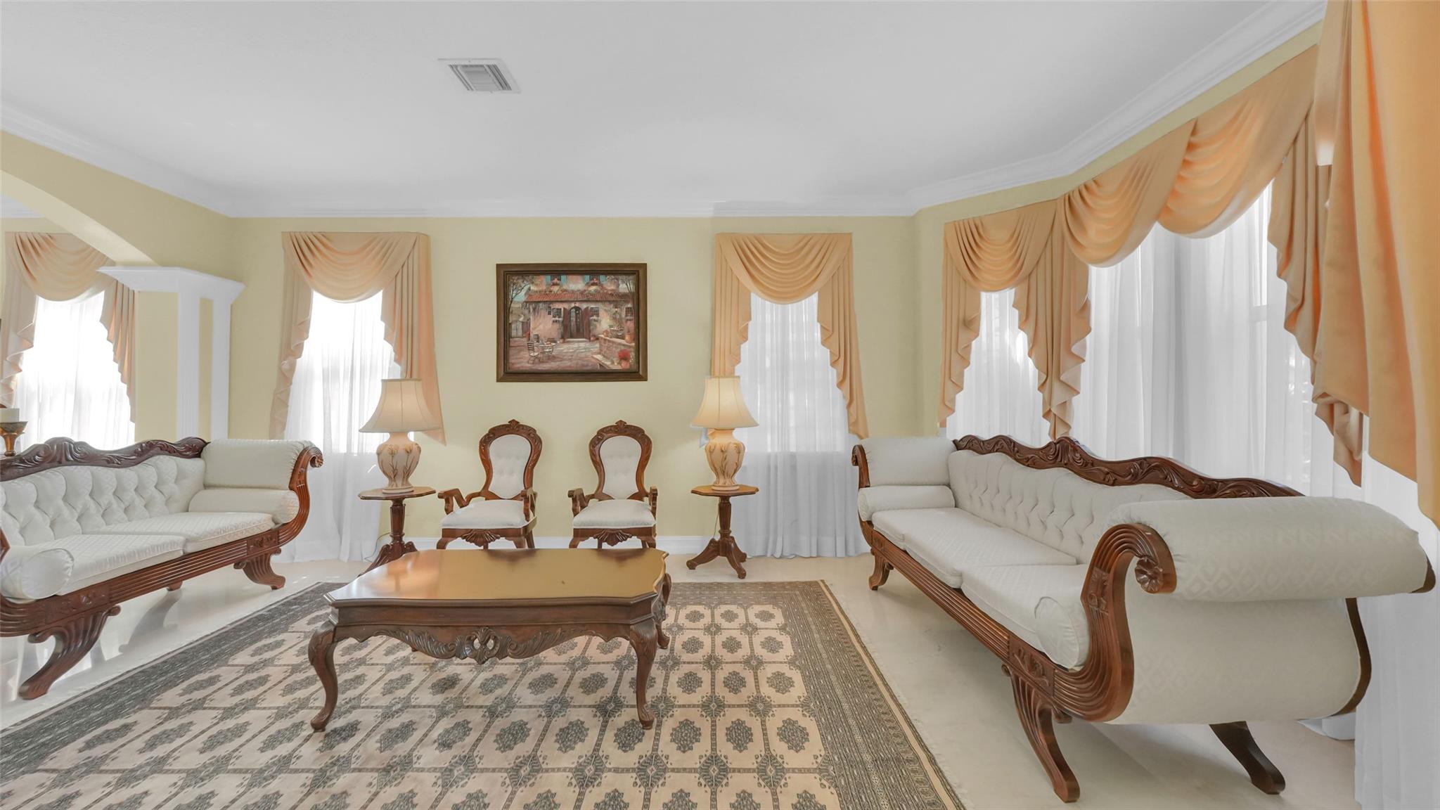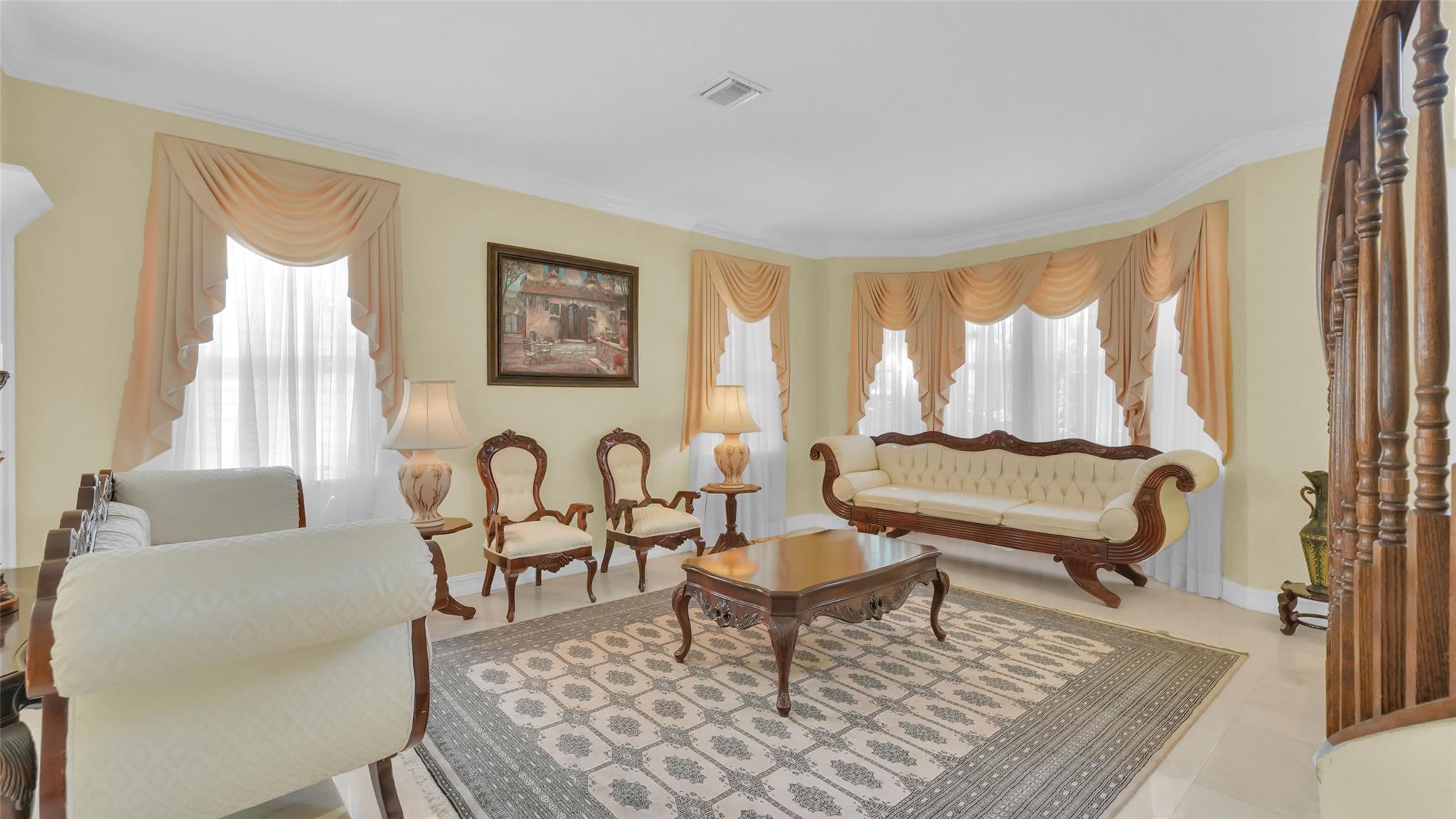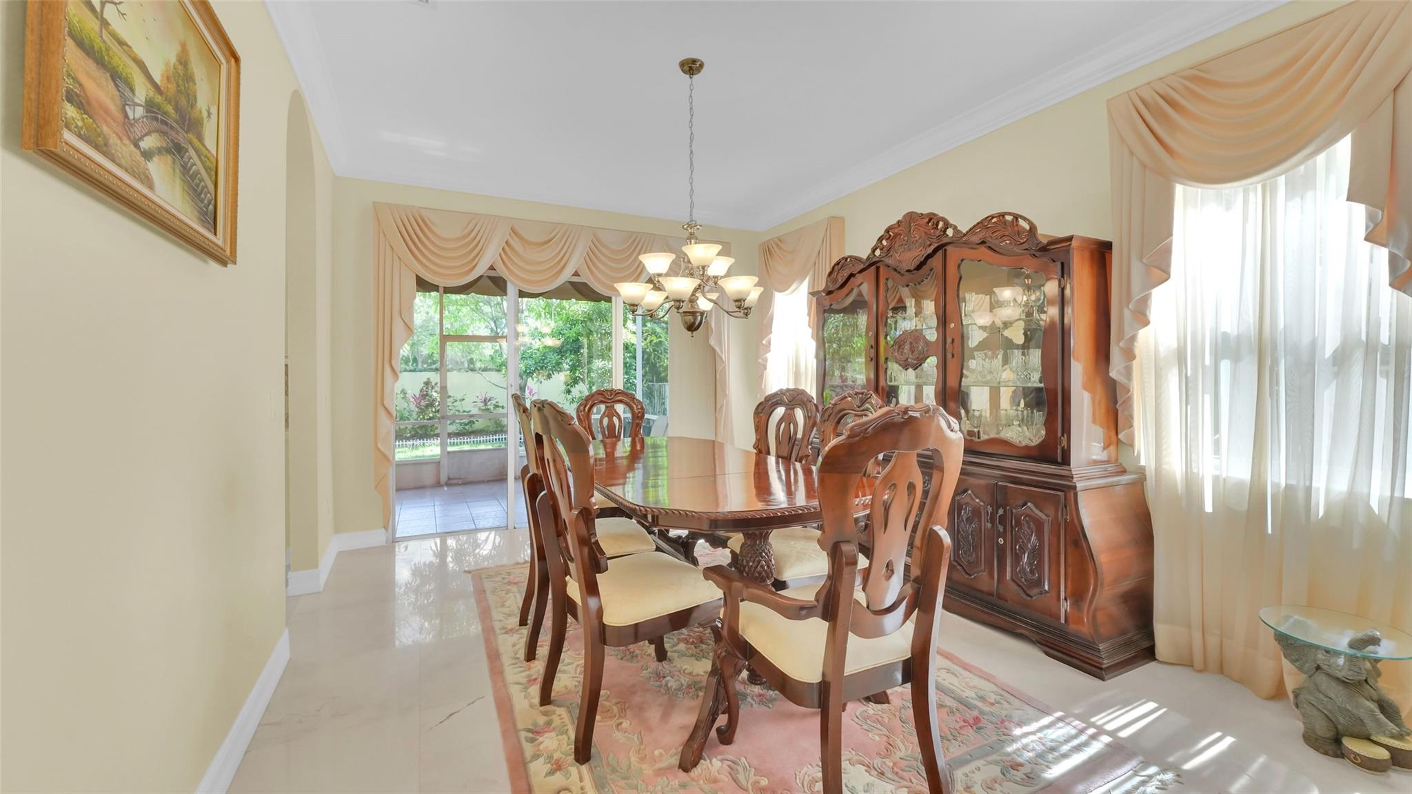 This beautifully renovated home features stunning quartz countertops and rich wooden cabinetry . The entire first floor is adorned with marble flooring, adding sophistication to every room . Tastefully updated bathrooms provide a timeless look that complements any décor style . Enjoy the spacious master bedroom, with a cozy sitting area perfect as a reading nook, home office, or nursery . An ensuite bedroom on the main floor offers comfort and flexibility for guests or multigenerational living. Upgrades include newer stainless-steel appliances, and double ovens, for the home chef. Outside is a well-manicured lawn surrounded by lush greenery and exotic fruit trees! Don’t miss the opportunity to own this move-in-ready gem that blends style, comfort, and functionality in one perfect package!